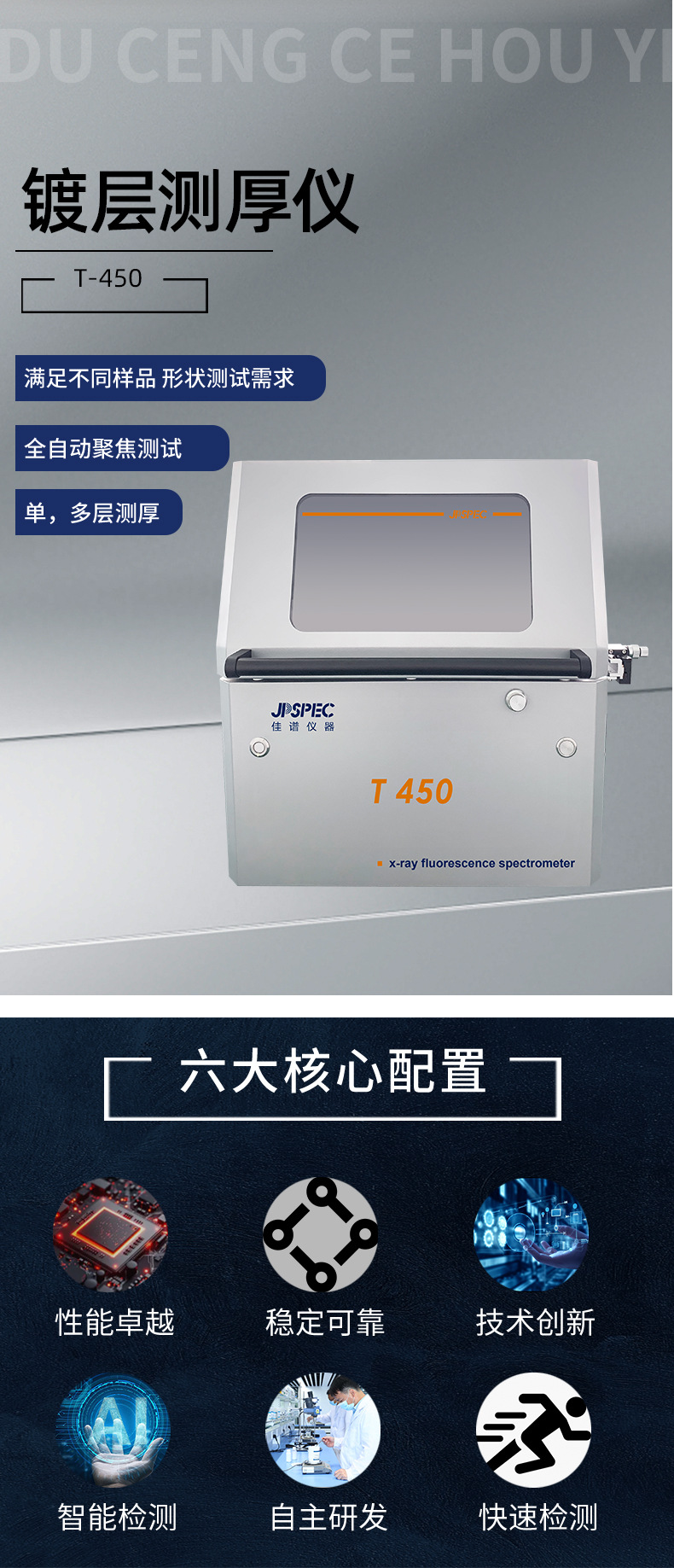 Измеритель толщины покрытия JiaPu Instruments T450S для сплавов, фурнитуры, сантехники, электронных компонентов, драгоценных металлов