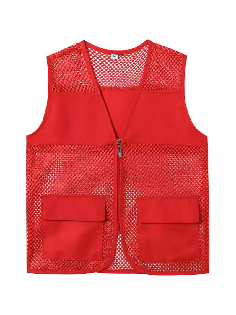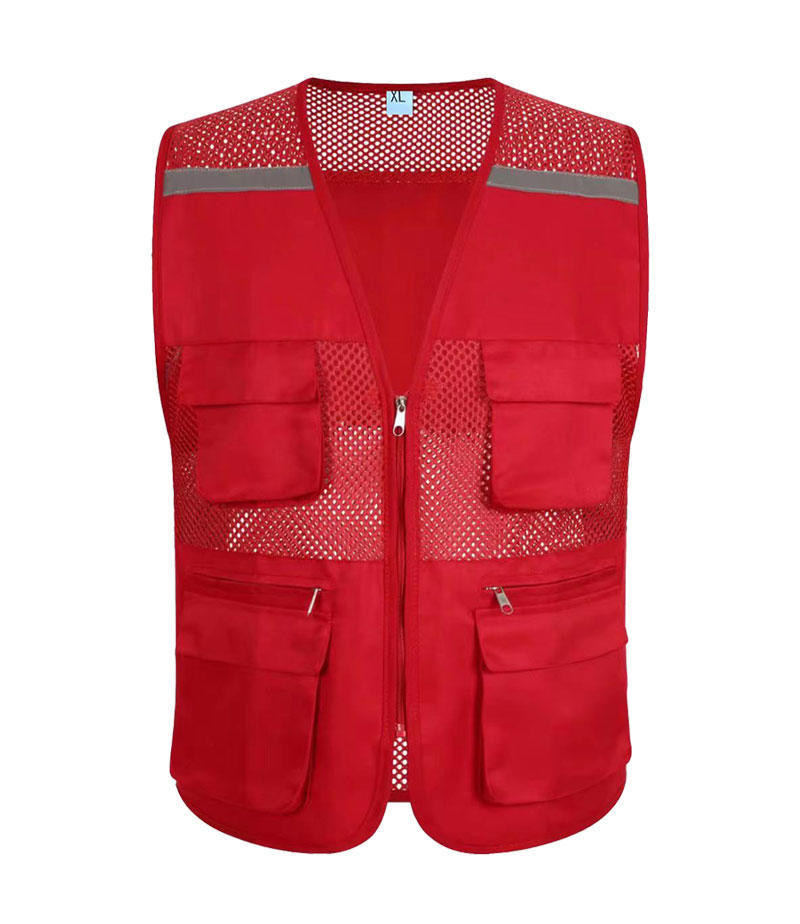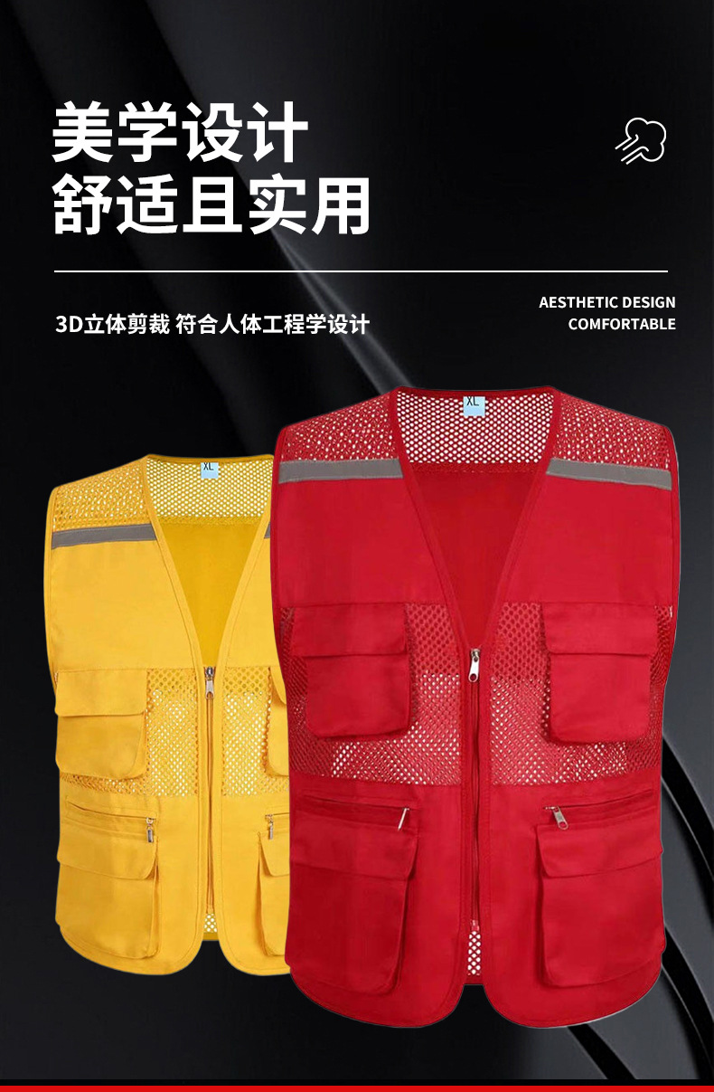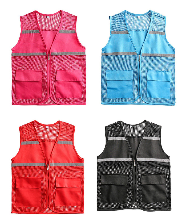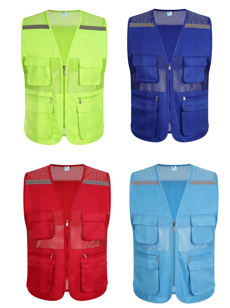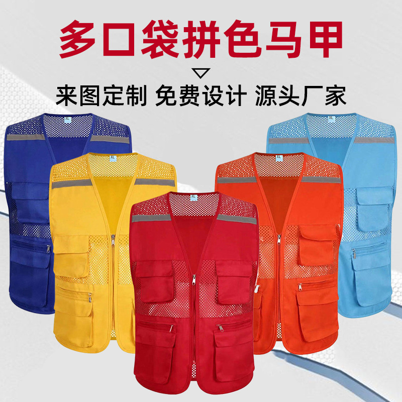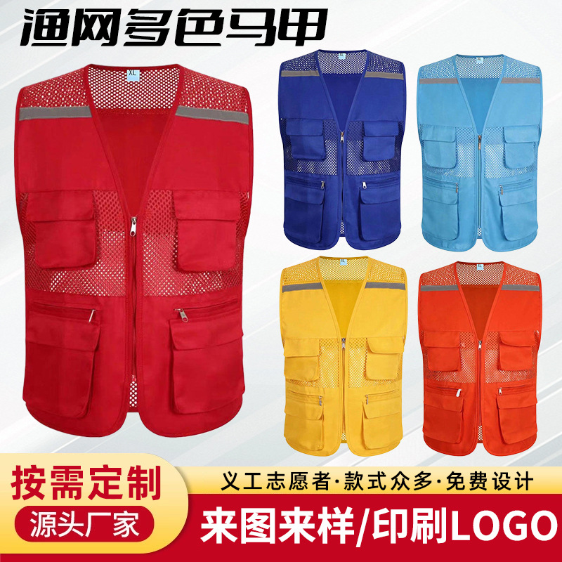 Сетчатый жилет с логотипом, множеством карманов, светоотражающими полосами, униформа для групповых работников супермаркетов, рекламный сетчатый жилет для общественных работников