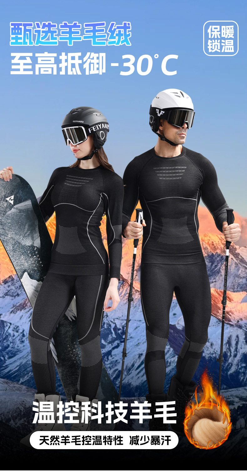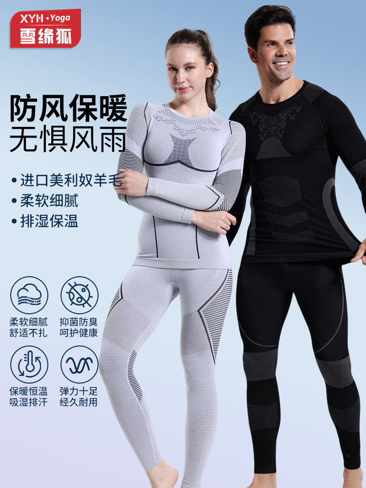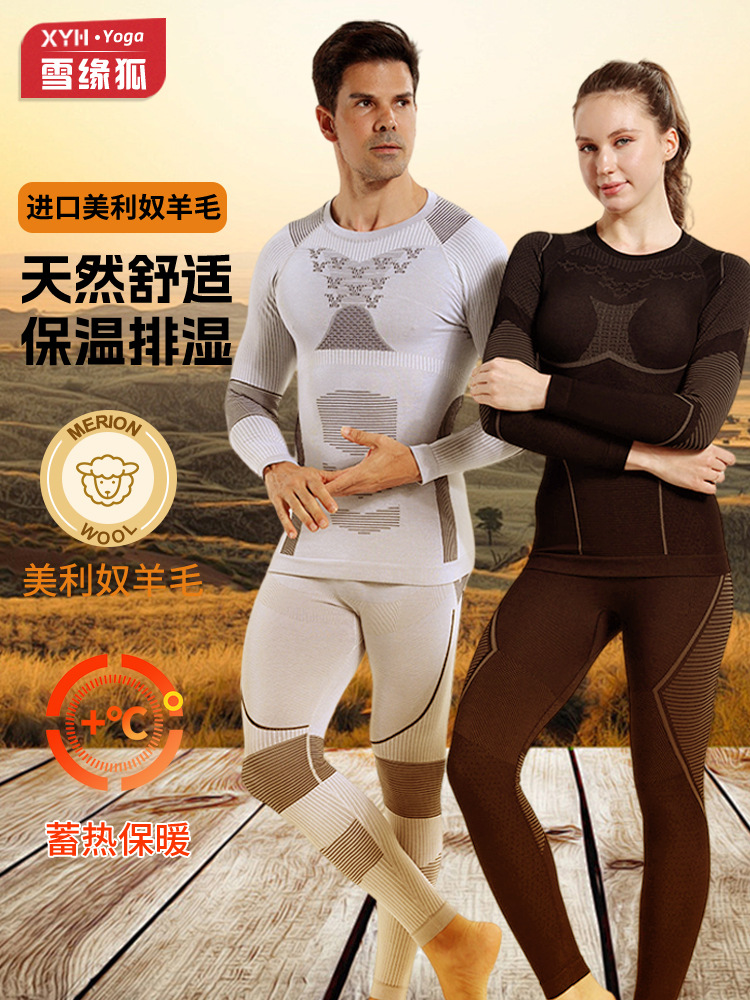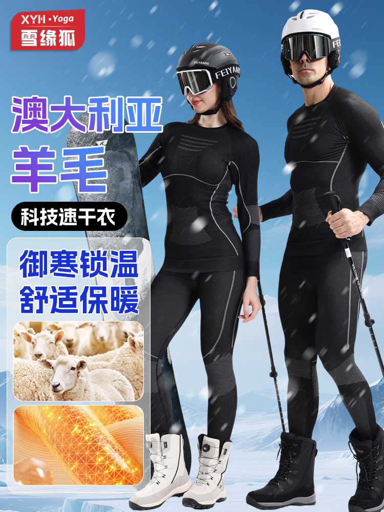 Термобелье для катания на лыжах из мериносовой шерсти для осени и зимы, быстросохнущий костюм для пар, дышащий, отводящий влагу