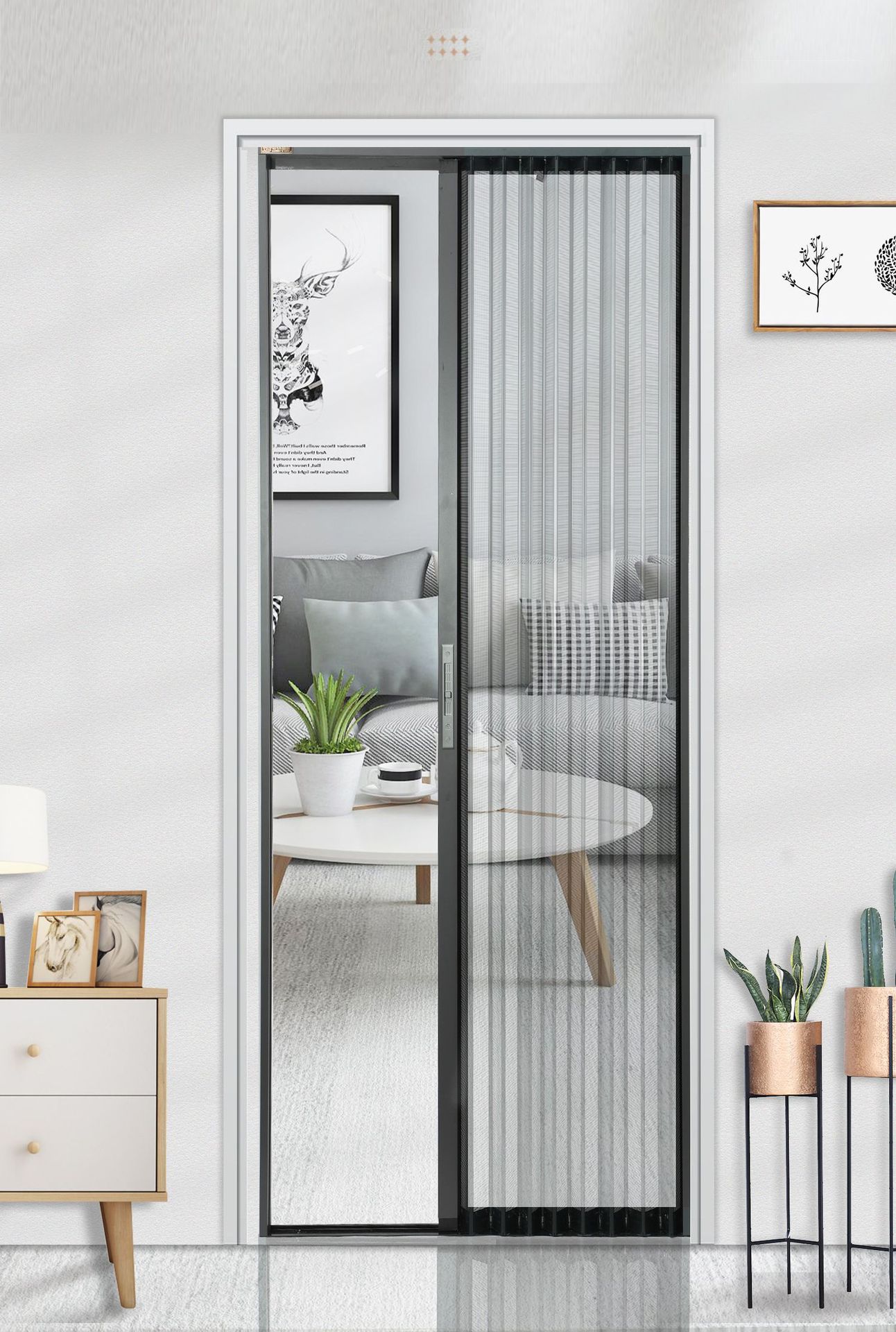 Раздвижная дверь-ширмы с ромбовидной сеткой, противоугонная, запираемая, защита от кошек, собак, грызунов, алюминиевый сплав, безрельсовая, невидимая раздвижная дверь.