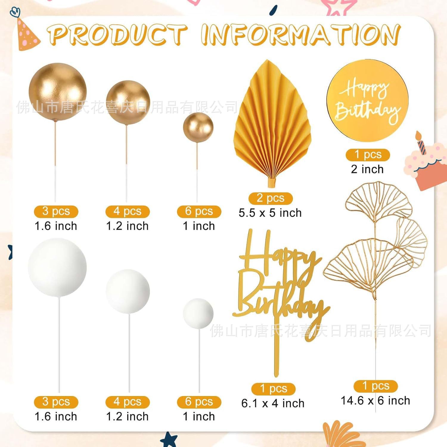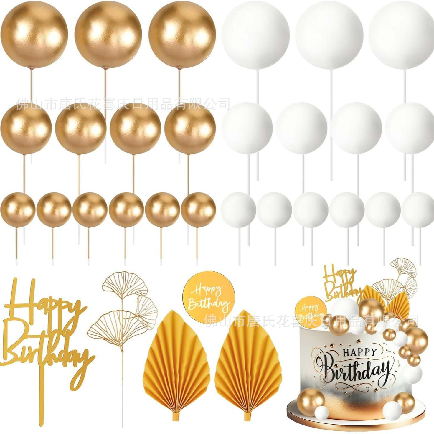 Кросс-бордерные золотисто-белые шары для украшения торта на день рождения, пальмовые листья, 31 шт., украшение для торта в стиле бохо