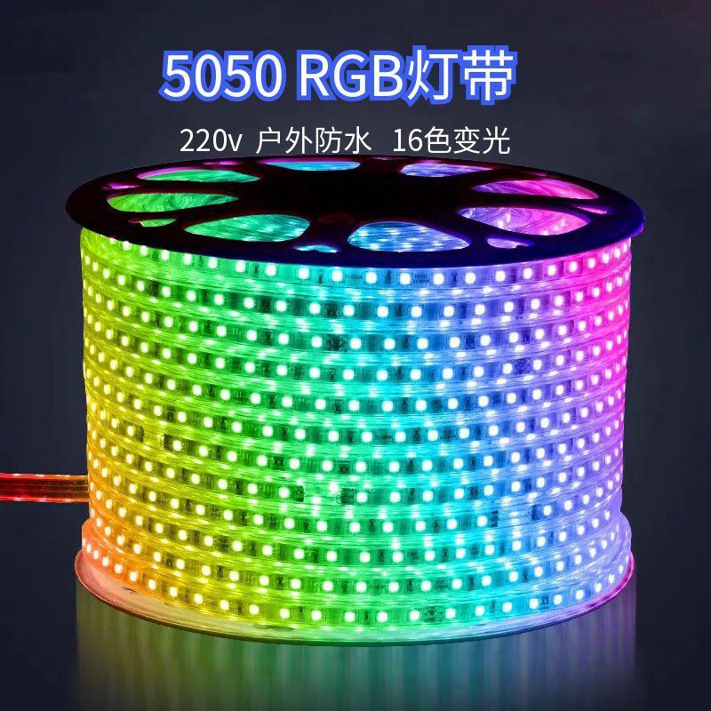 220В цветная светодиодная лента с изменением цвета 5050 для улицы, водонепроницаемая, RGB, для гостиной, отеля, KTV, дверей