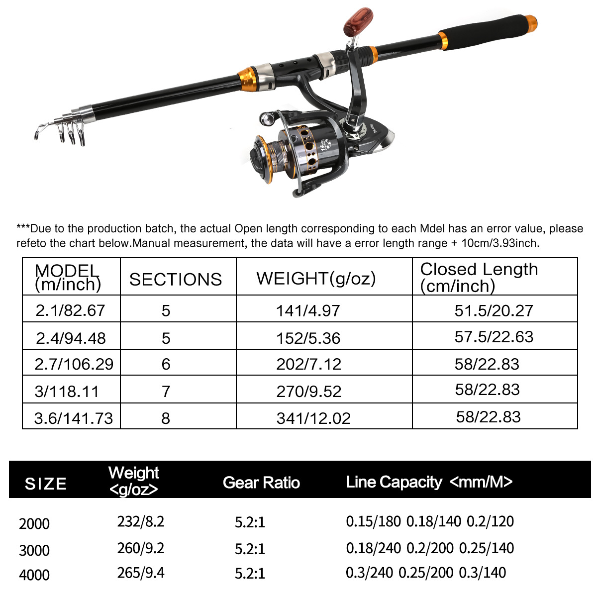 —2.4m/2.7m/3m/3.6m 竿 伸缩长度58CM左右