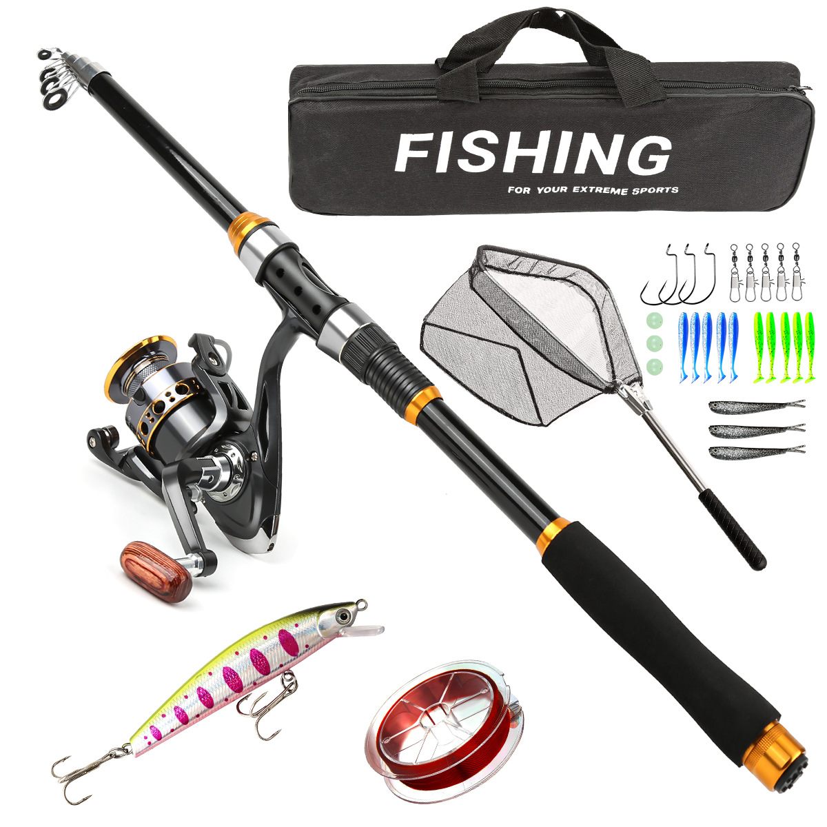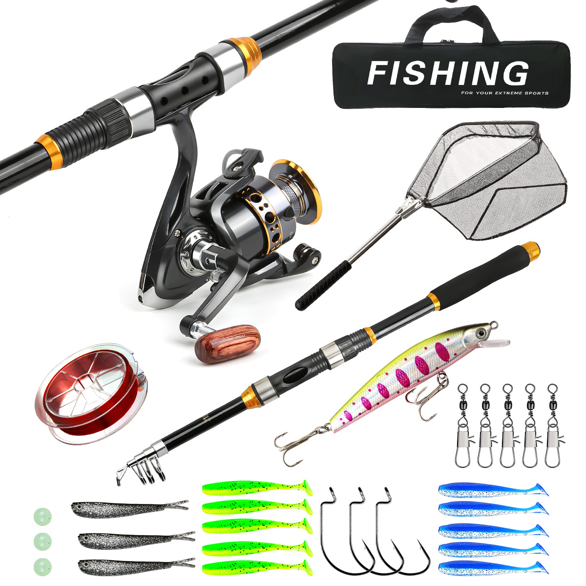 Четырехцветное удилище для рыбалки на открытом воздухе, оптовая продажа через границу, сверхлегкое оборудование из стекловолокна, популярный набор удилищ Amazon