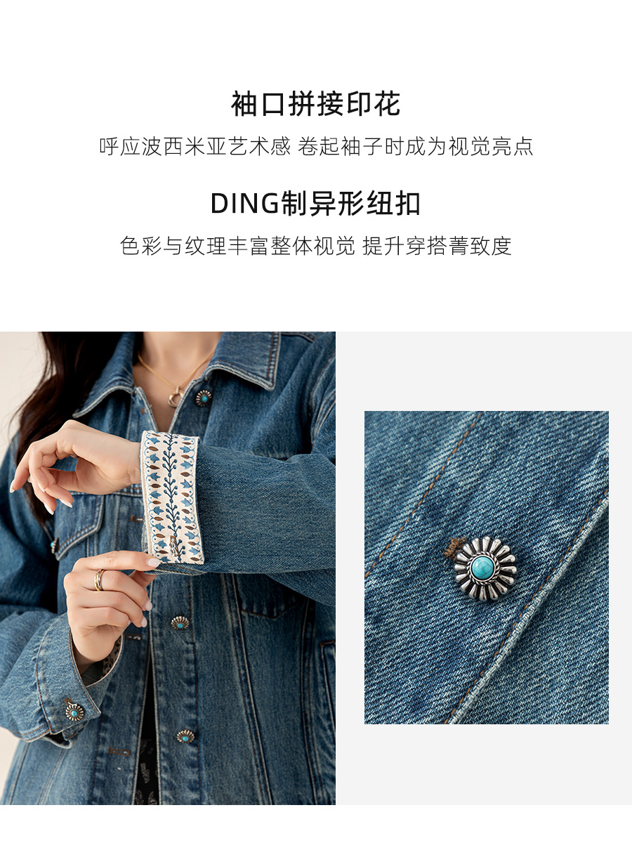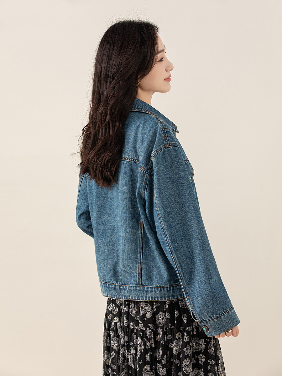 Джинсовая куртка Xingge в винтажном стиле для женщин, с эффектом потертости, с дизайнерскими элементами, синим принтом в стиле пэчворк, с отворотами на рукавах, новый стиль.