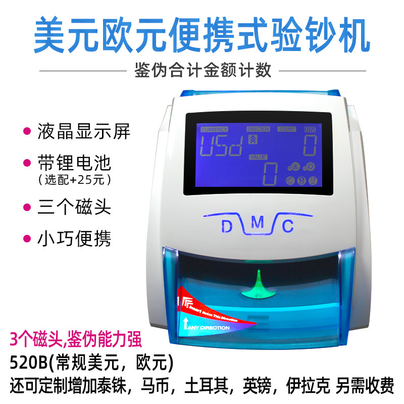 HL-520B компактный портативный детектор банкнот для долларов США и евро, может определять поддельные и настоящие деньги с аккумулятором, общая сумма.