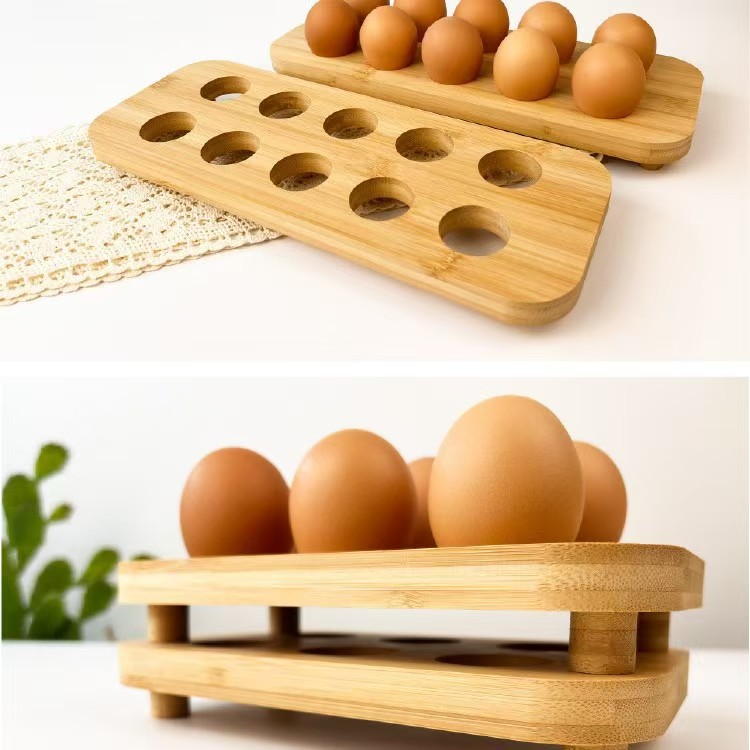 Деревянная полка для яиц с отделениями, бытовая штабелируемая полка для хранения утиных яиц, лоток для хранения яиц в холодильнике, кухонная полка для хранения