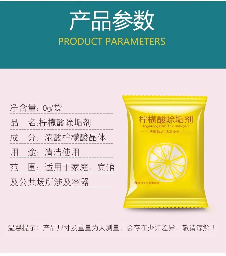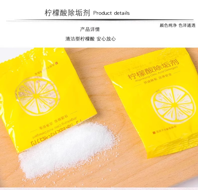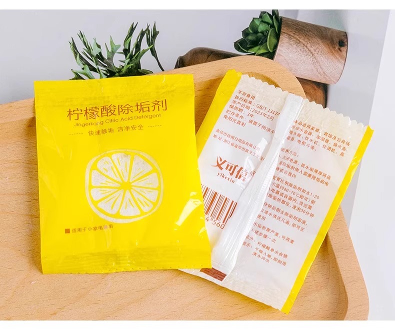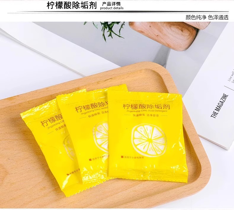 Средство для удаления накипи из лимонной кислоты в пакетиках для удаления известковой пыли, чайных пятен и ржавчины с электрических чайников для домашнего использования.
