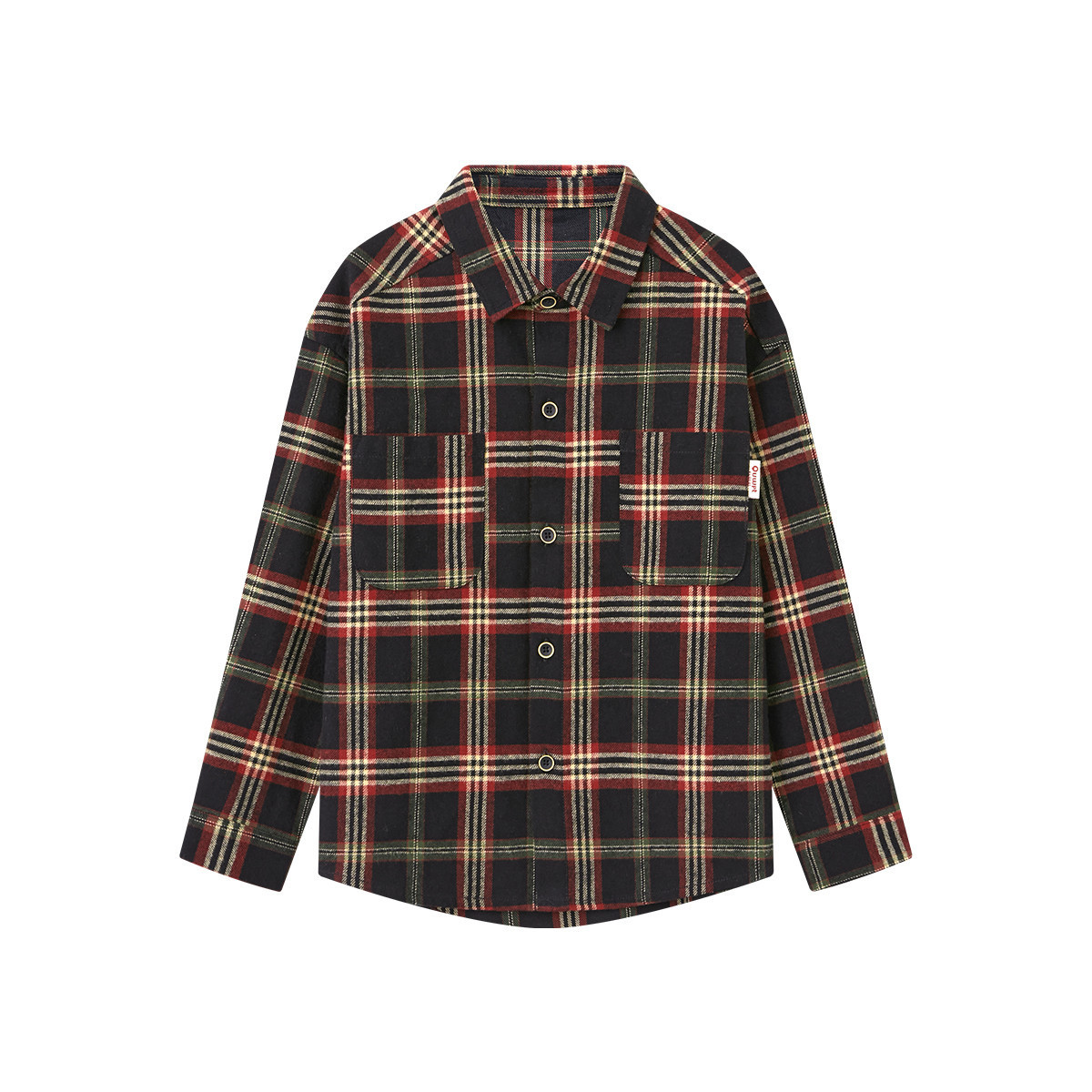 Рубашка для мальчиков Duoduo, стильный весенне-осенний топ из чистого хлопка, детская клетчатая тонкая куртка с накладным карманом и отложным воротником с длинными рукавами