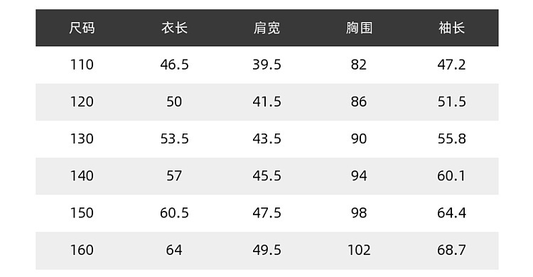 110 см; 120 см; 130 см; 140 см; 150 см; 160cm; 170cm