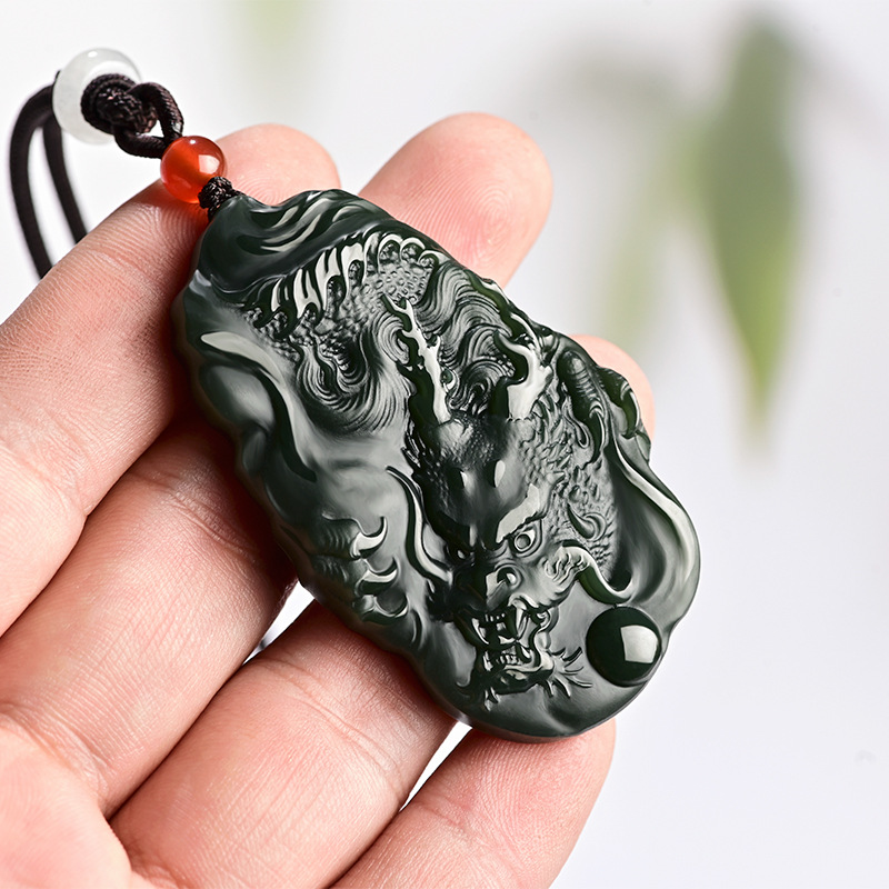 Синьцзянская нефритовая башня Хэтянь, зеленый нефрит, зодиакальный дракон, нефритовый кулон, мужской нефритовый кулон с драконом, ожерелье, властный нефритовый кулон