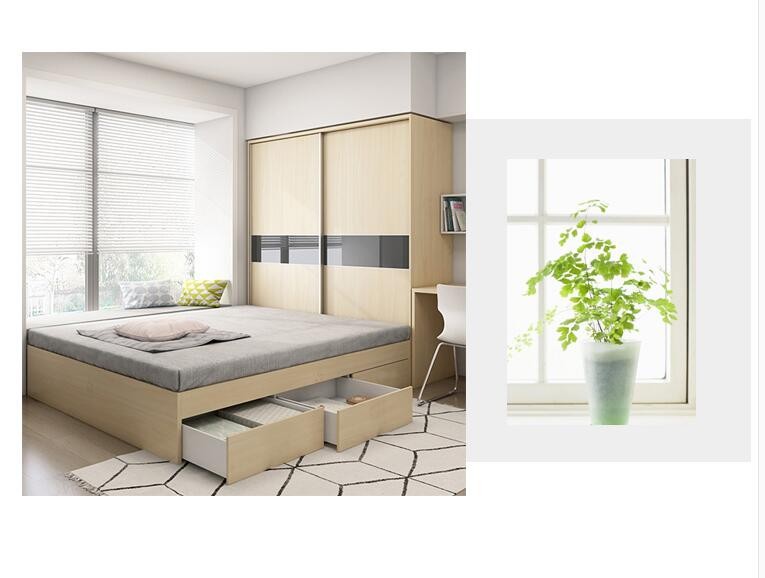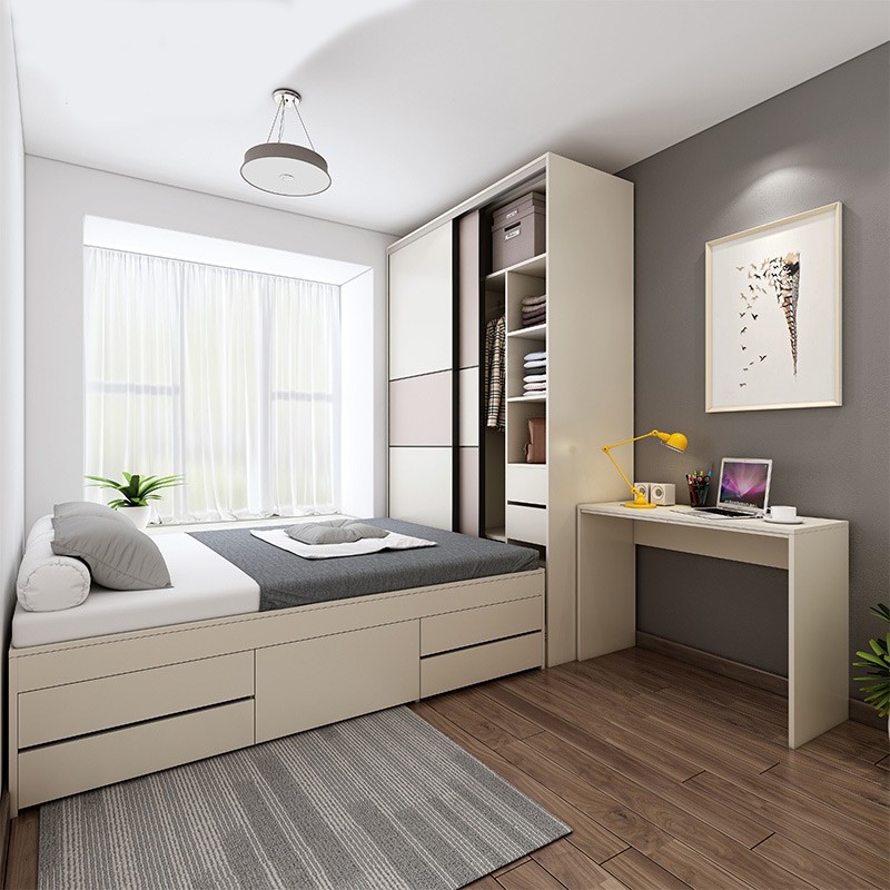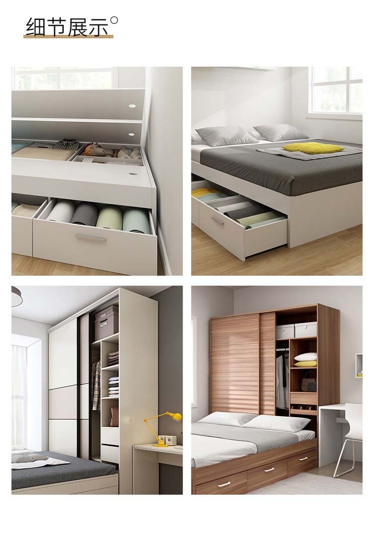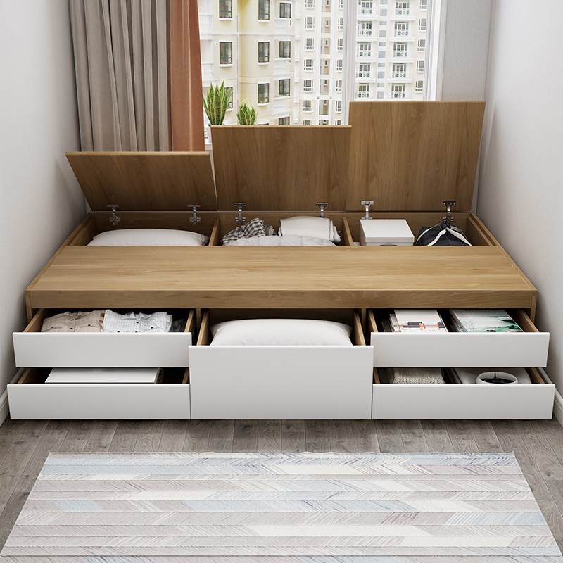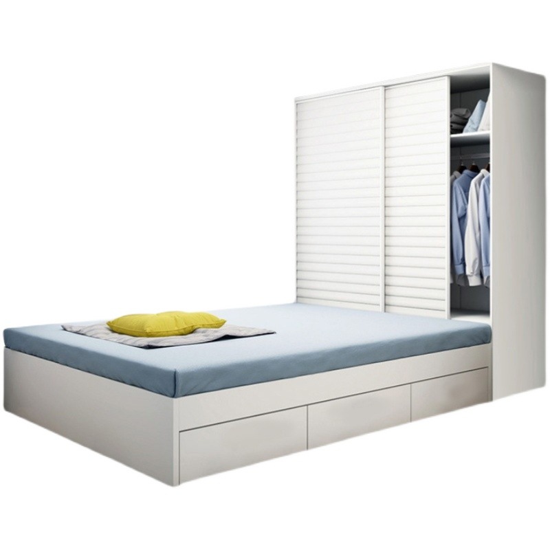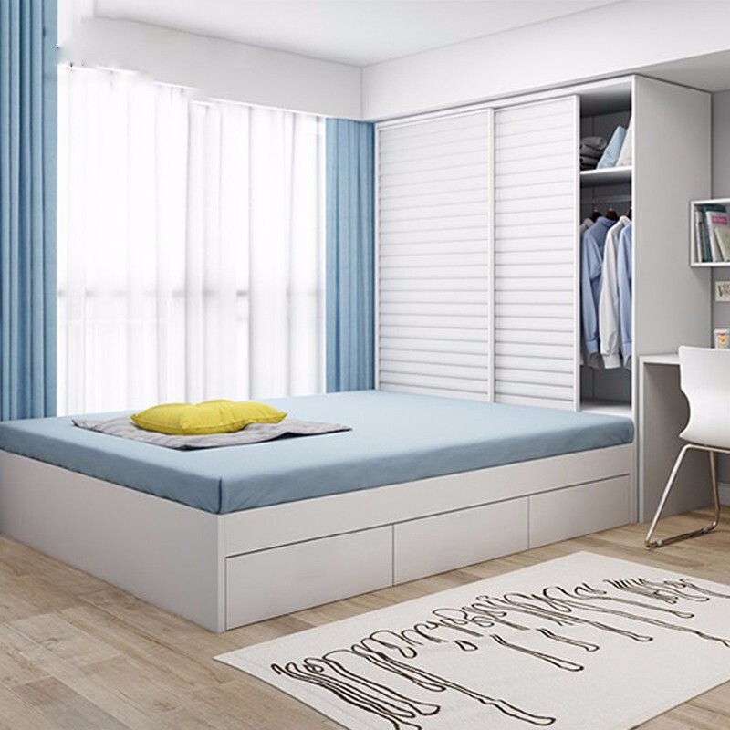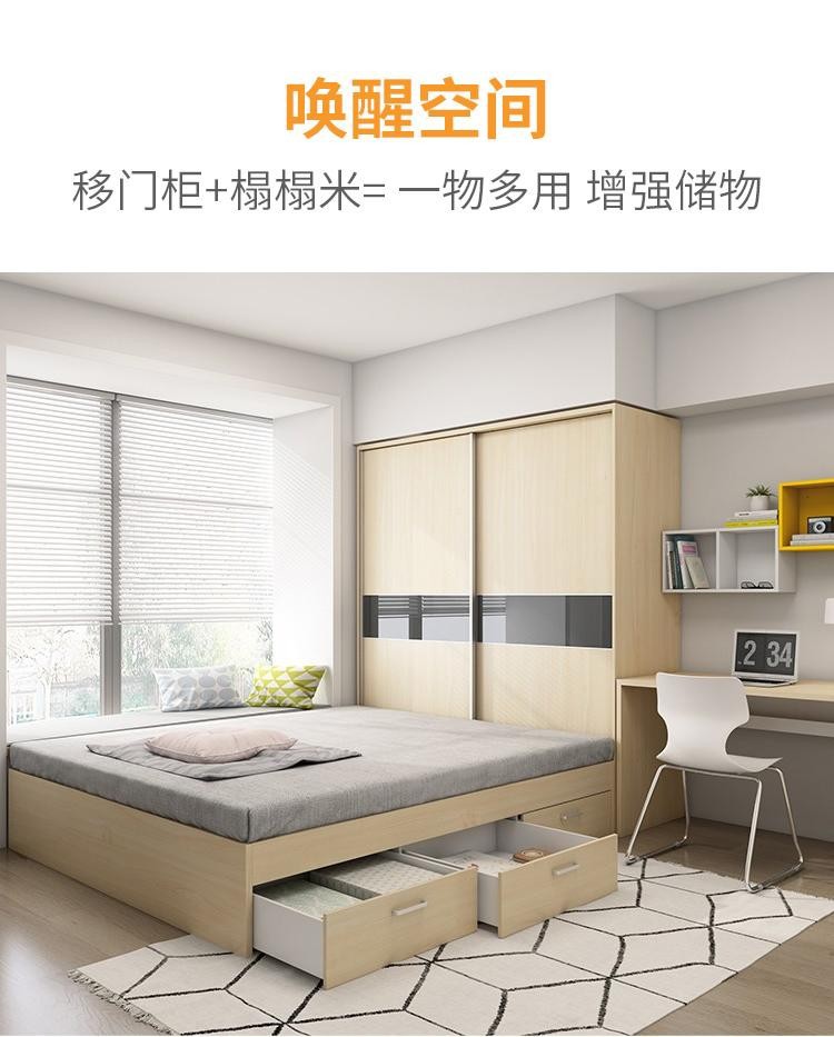 Современная минималистичная кровать-татами с интегрированным шкафом, раздвижными дверями, для малогабаритной квартиры, детской комнаты, из массива дерева.