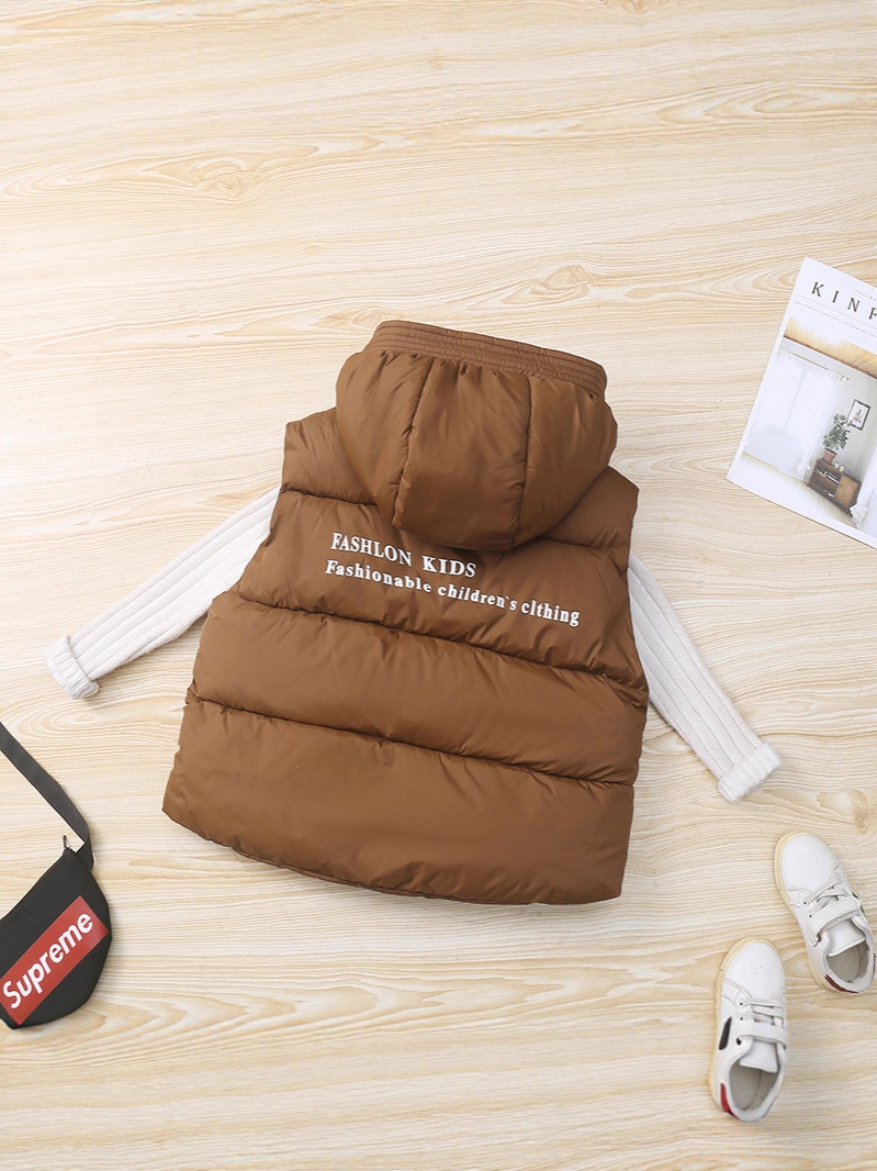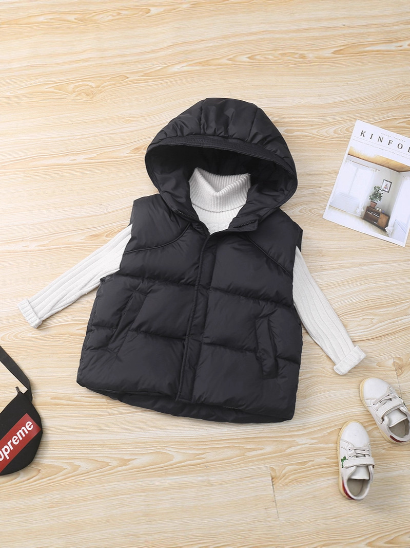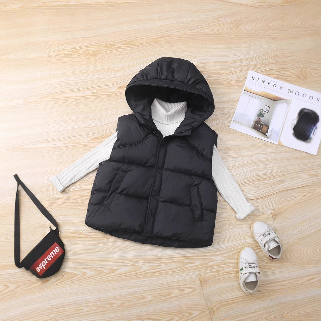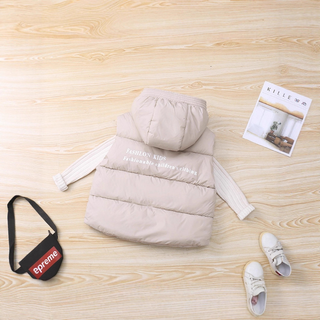 Детская одежда, новый хлопковый жилет с капюшоном, зимняя верхняя одежда для мальчиков и девочек среднего и большого размера, 25 корейский стиль, плотная верхняя одежда с талией, свободная куртка