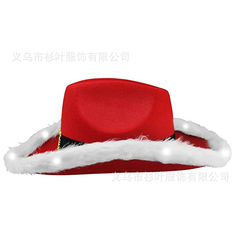 Рождественская красная ковбойская шляпа с перьями, черный пояс, ковбойская шляпа, ковбойская шляпа в стиле вестерн, ковбойская шляпа с поясом Санта-Клауса