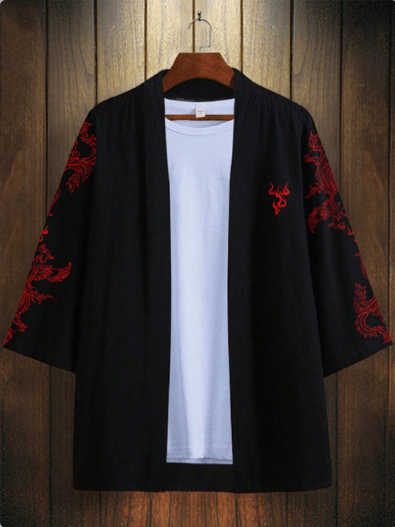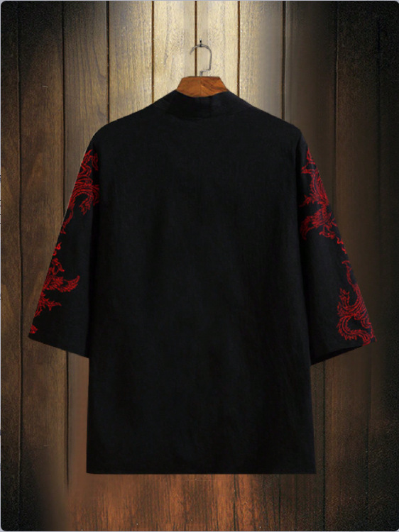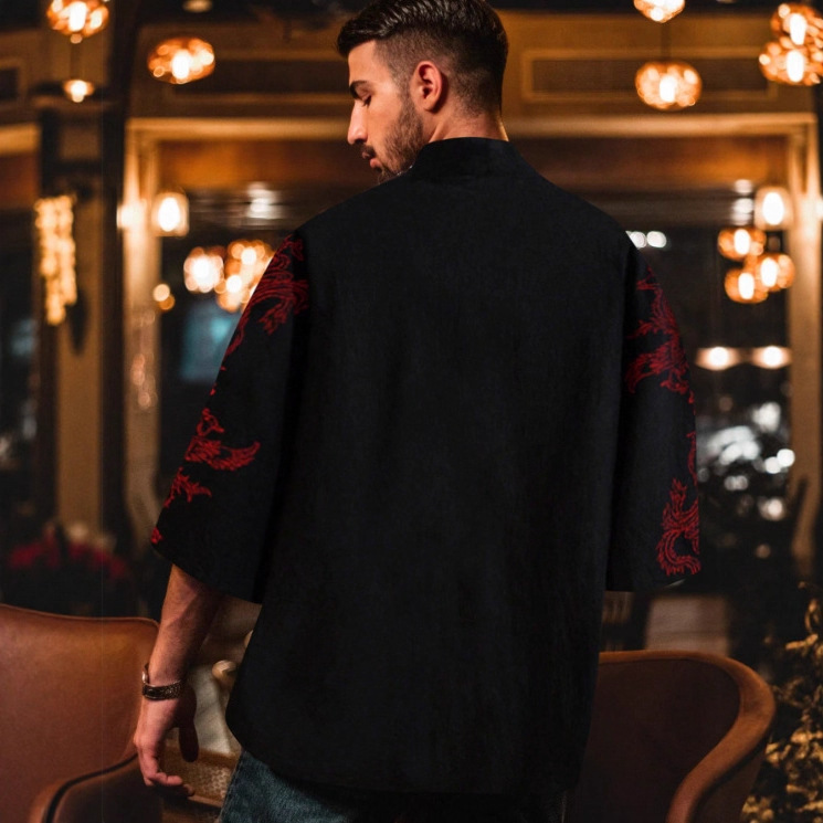 Простой кардиган в этническом стиле, ретро, кимоно, мужская куртка с перьями, плащ Феникса в китайском стиле, кимоно, тонкая рубашка