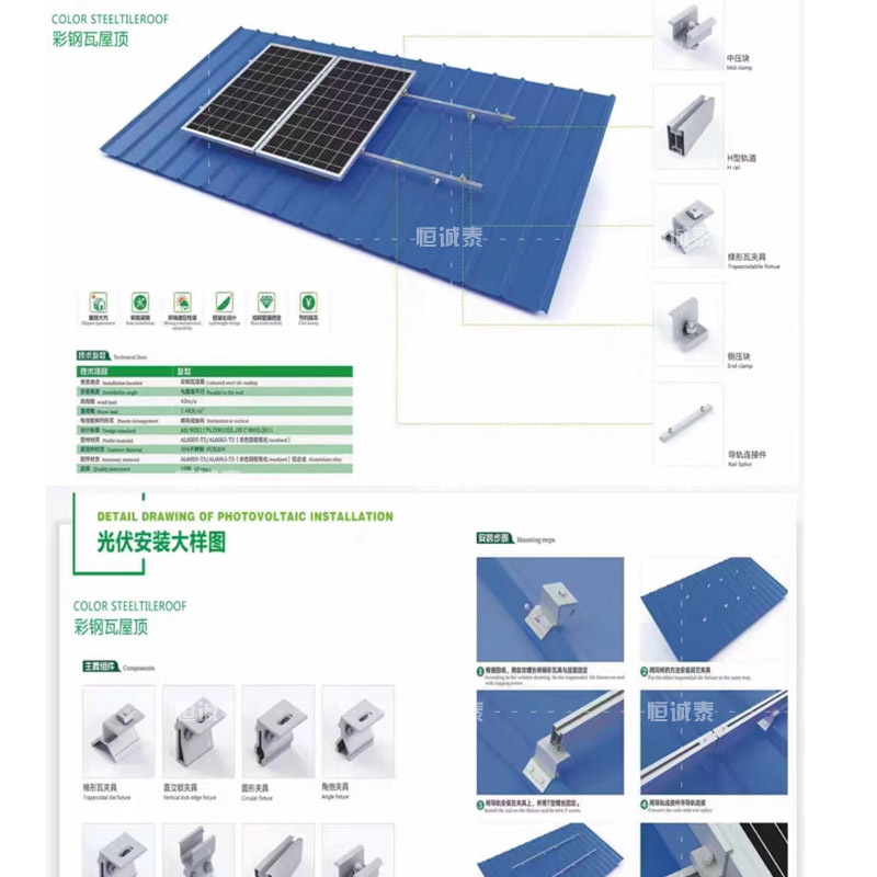 Зажим для фотоэлектрической панели из цветной стальной черепицы, Т-образный зажим, заводской кронштейн из алюминиевого сплава для установки на крыше, фиксированный зажим, включая винты