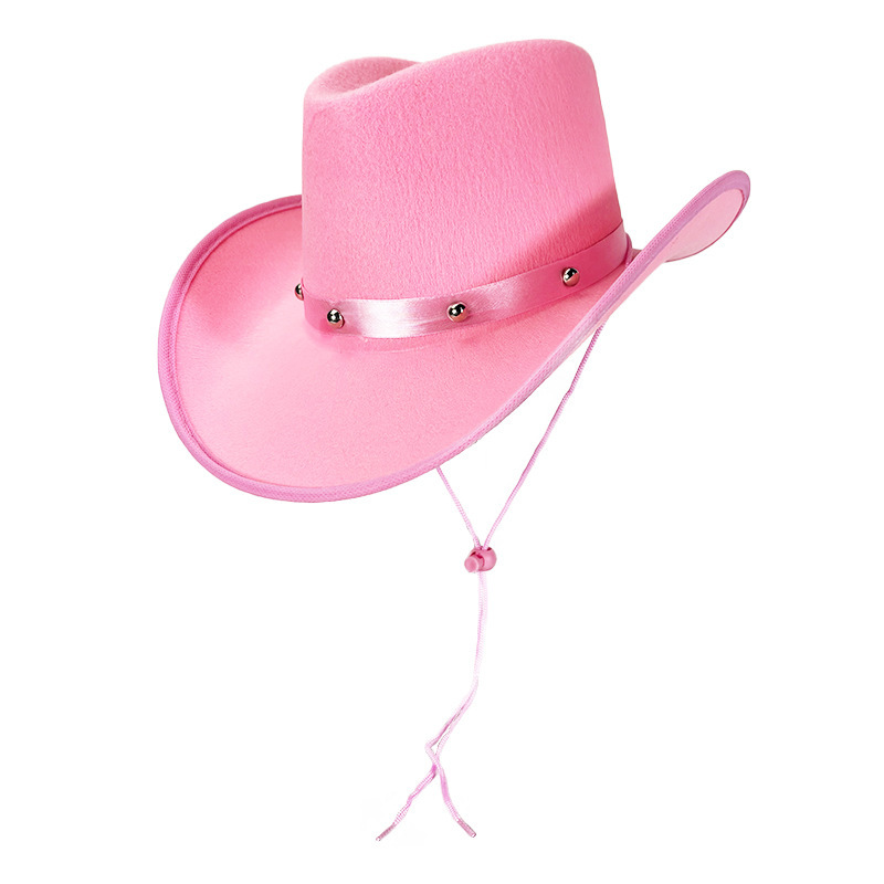 Розовая ковбойская шляпа с изогнутыми краями и заклепками, нарядная ковбойская шляпа с круглыми заклепками, розовая ковбойская шляпа с изогнутыми краями и заклепками