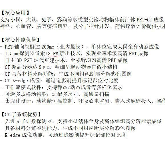 - 先进光子计数探测器,支持小型活体全身及离体组织高分辨能谱成像