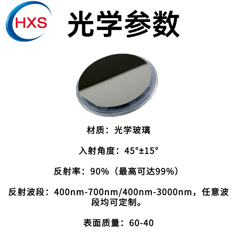 深圳华旭盛专业生产的反射镜,采用溅射镀膜的工艺,膜层牢固度非常好,使用时间久。可见光反射率达99%以上,装配的角度一般为45°,适用于舞台激光灯,条码扫描,激光测距,激光雷达,光学仪器,激光马达振镜,投影仪,证件识别等。欢迎广大客户前来咨询。