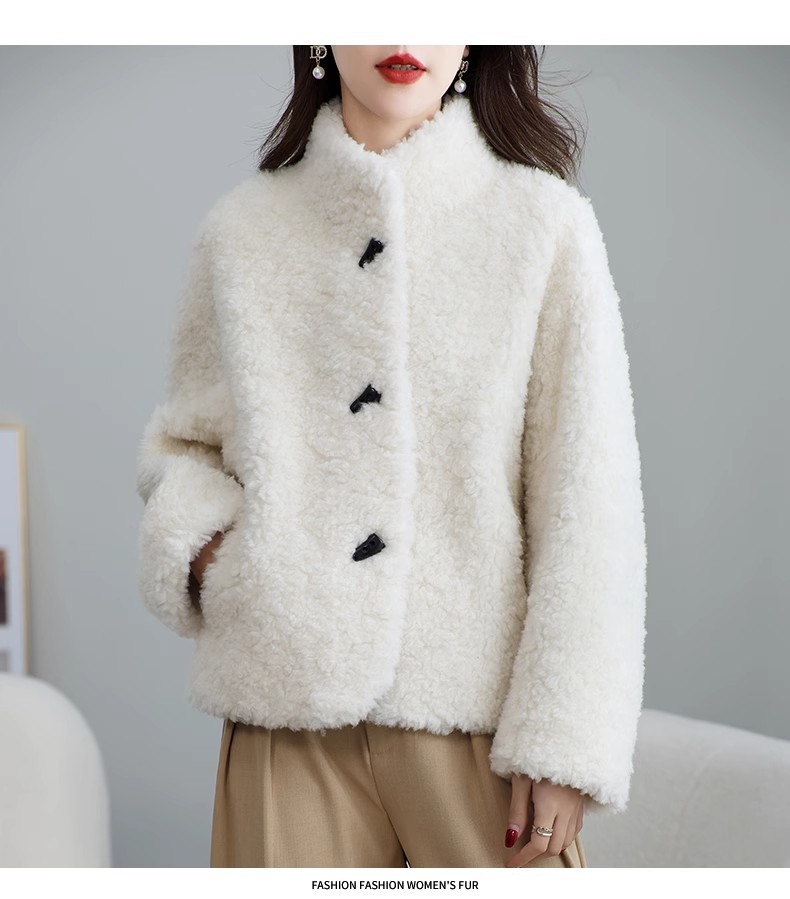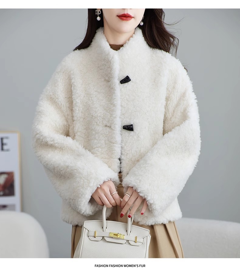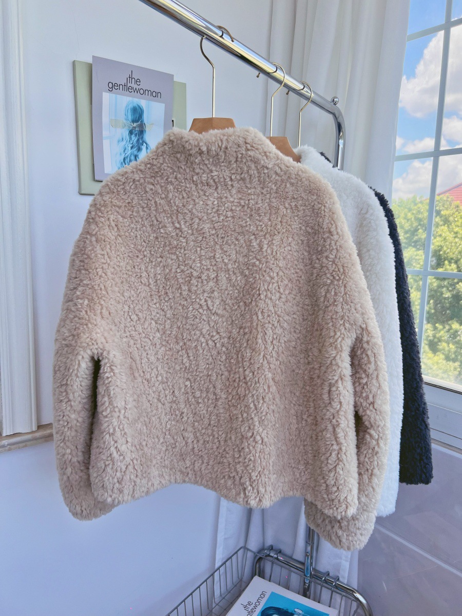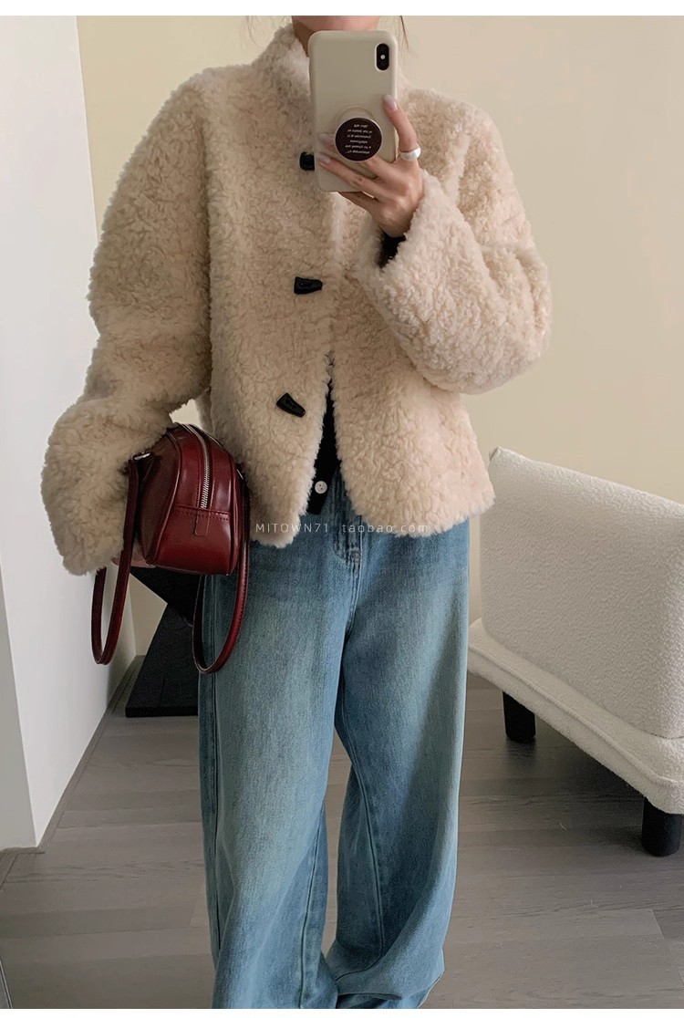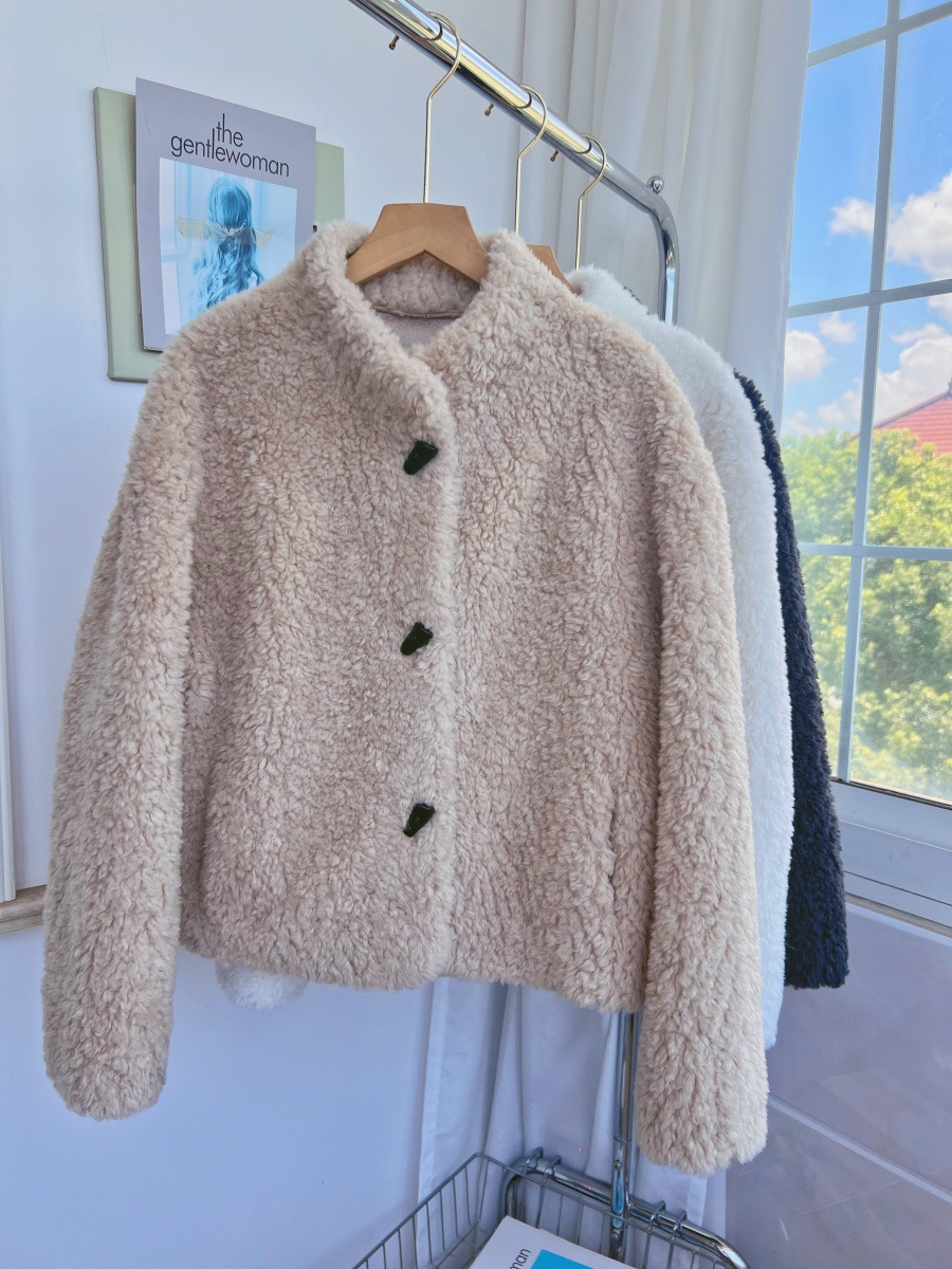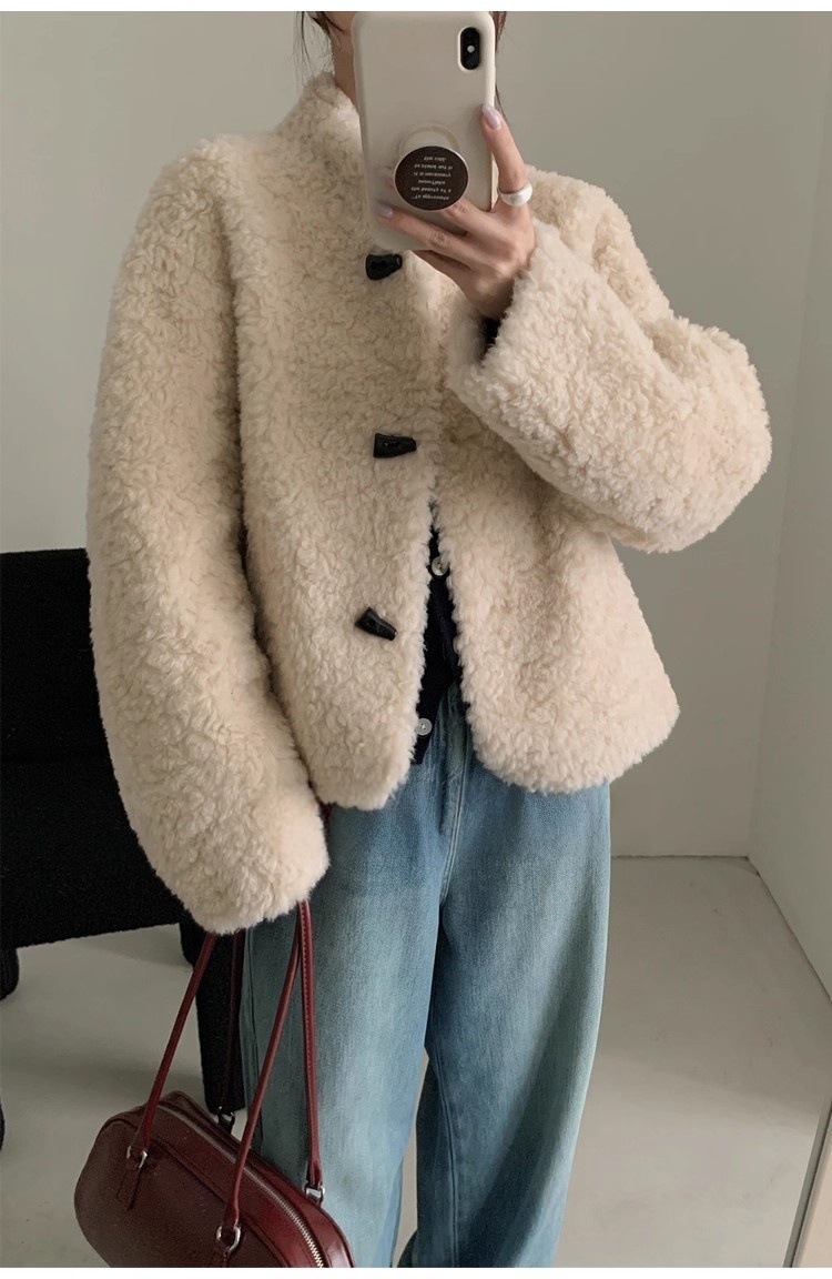 Женская короткая куртка из корейской овчины, композитный мех, воротник-стойка, осень-зима 2025 года.