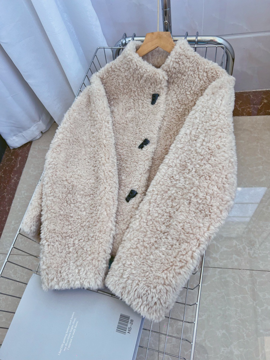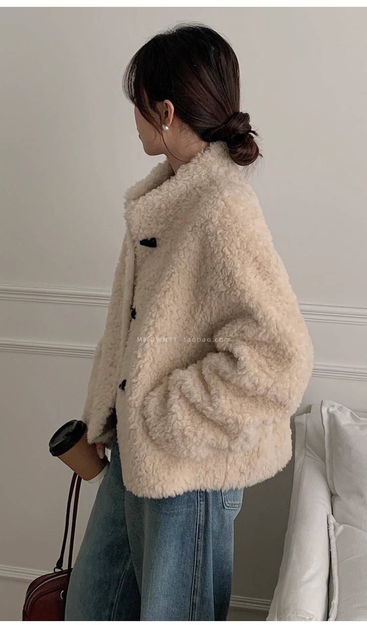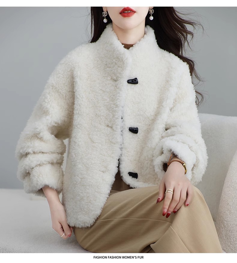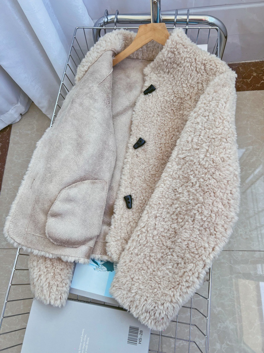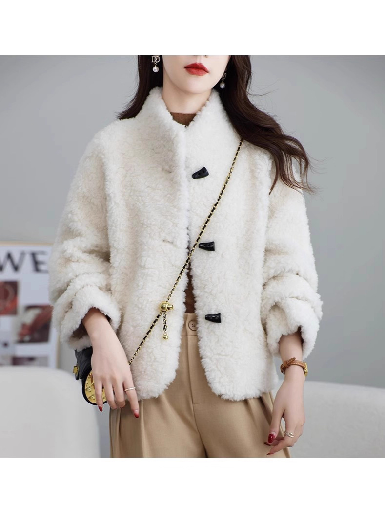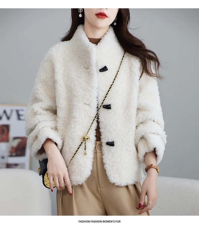 Женская короткая куртка из корейской овчины, композитный мех, воротник-стойка, осень-зима 2025 года.