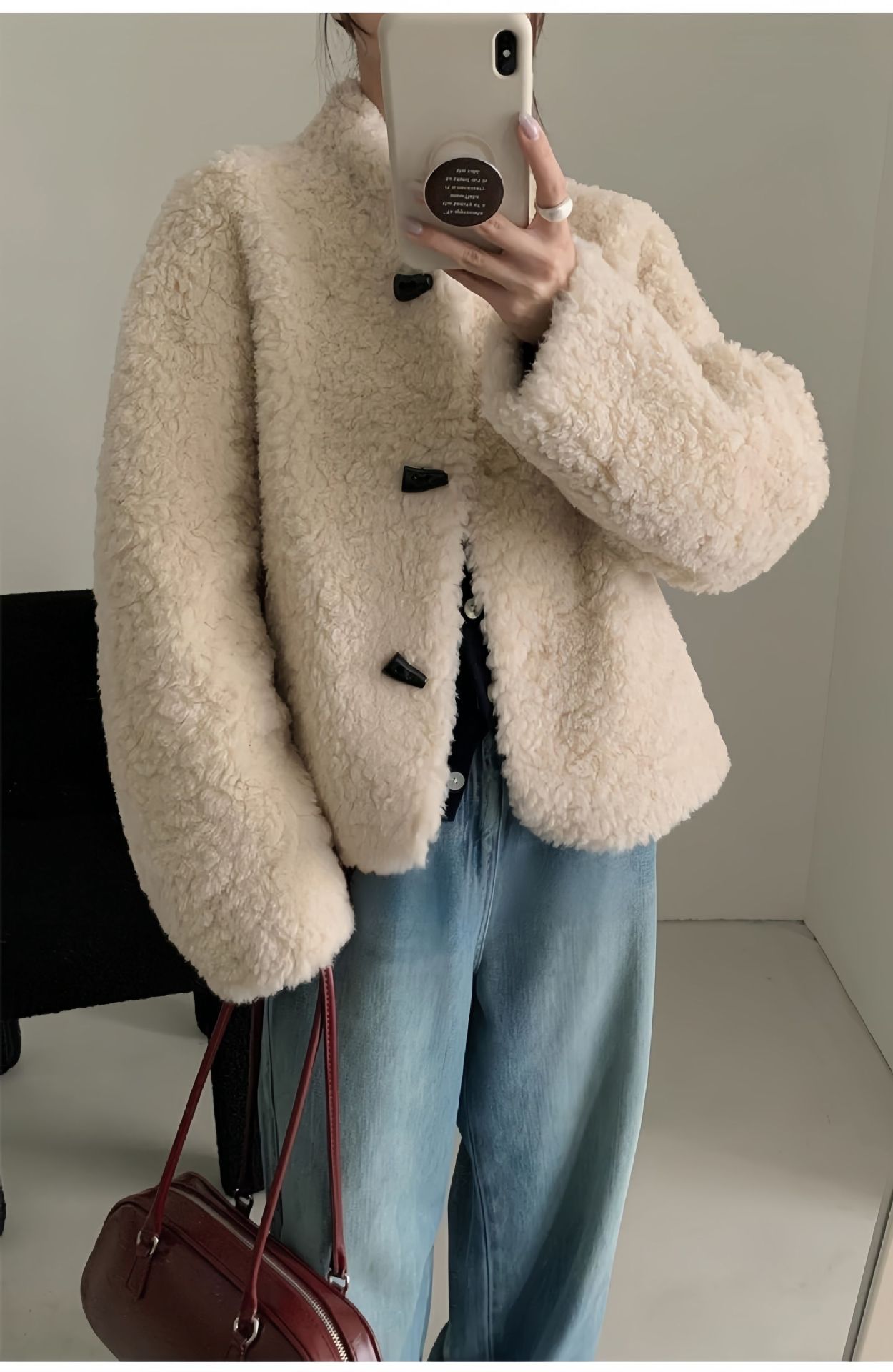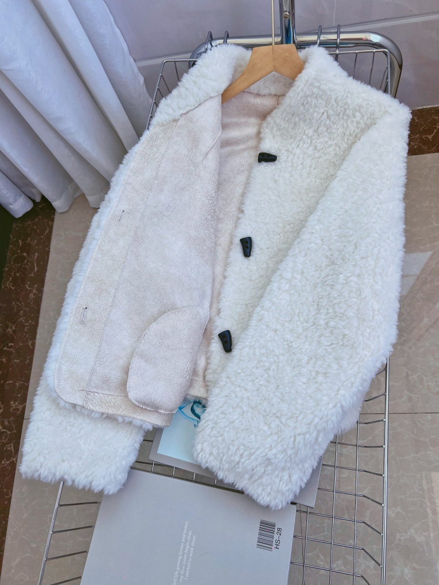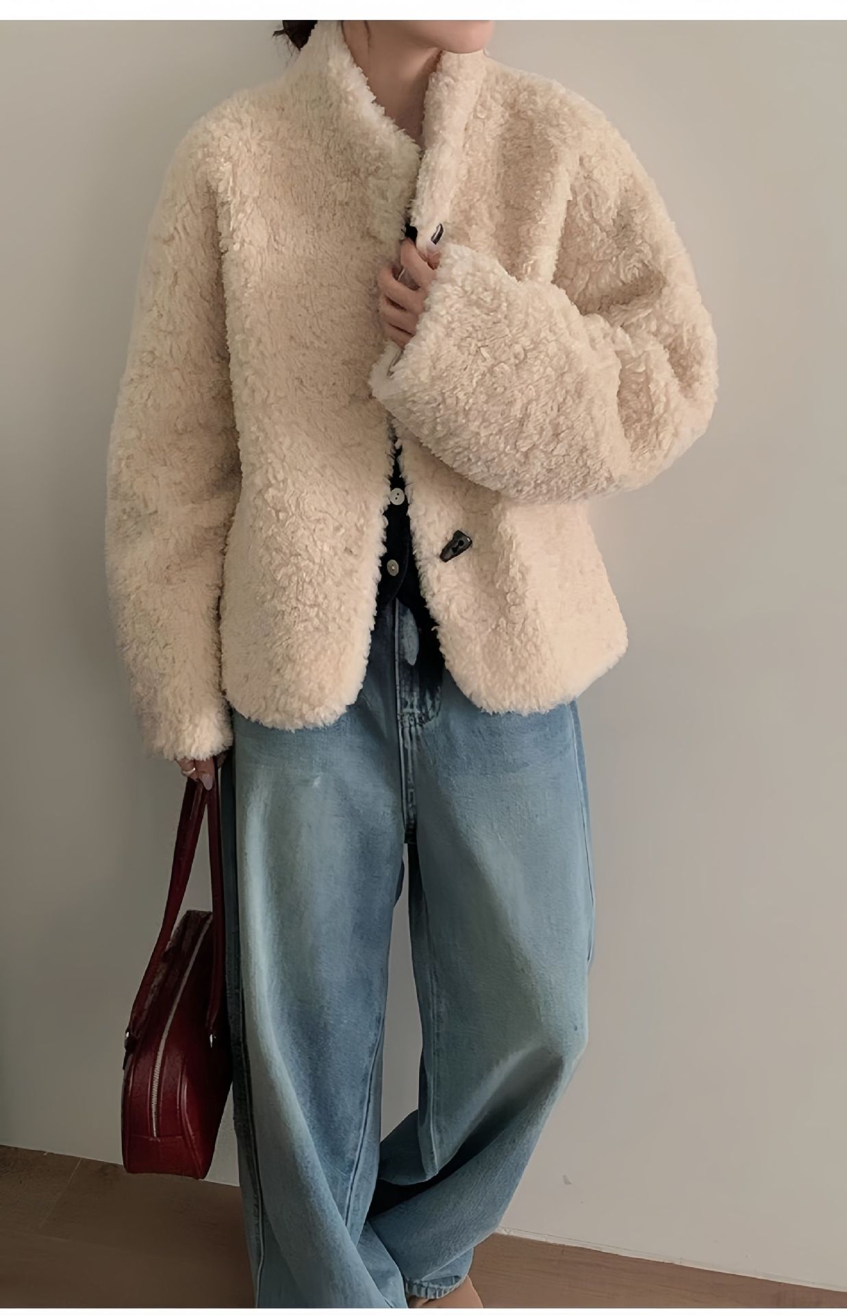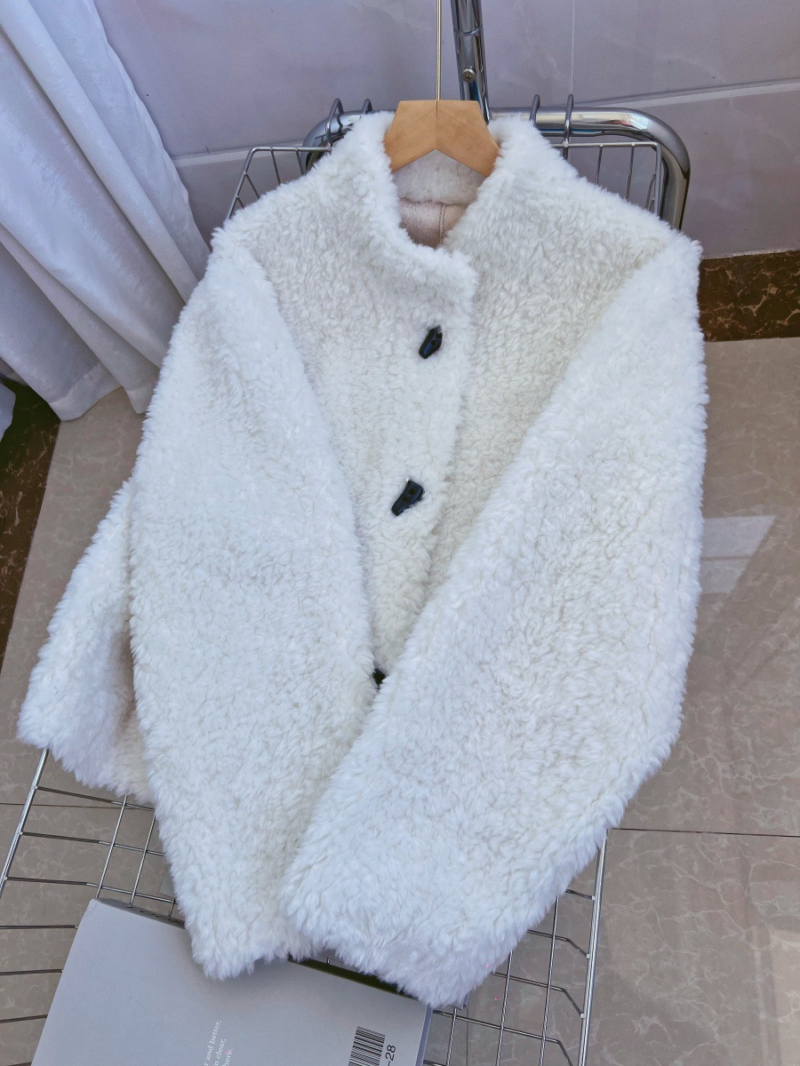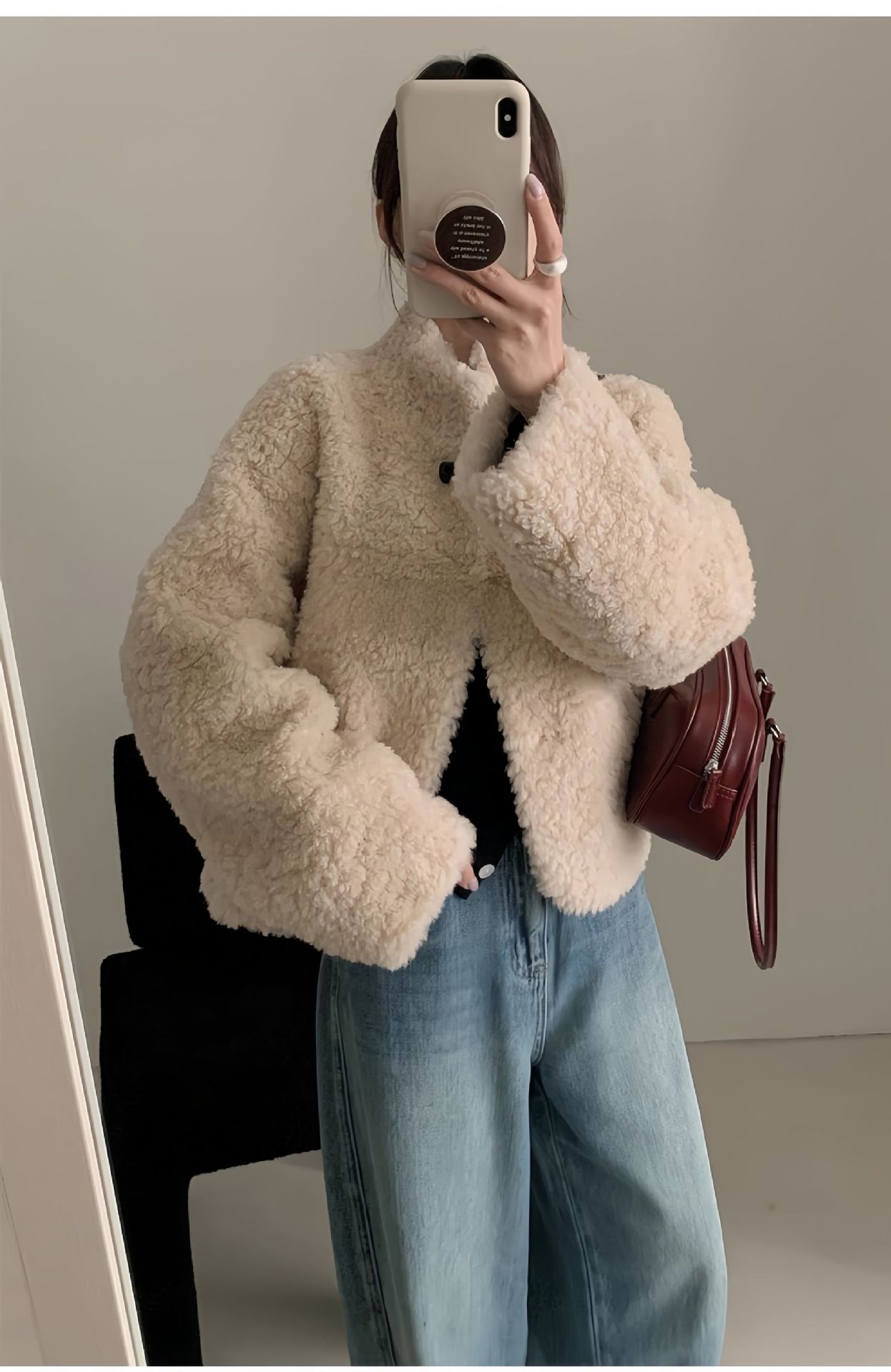 Женская короткая куртка из корейской овчины, композитный мех, воротник-стойка, осень-зима 2025 года.