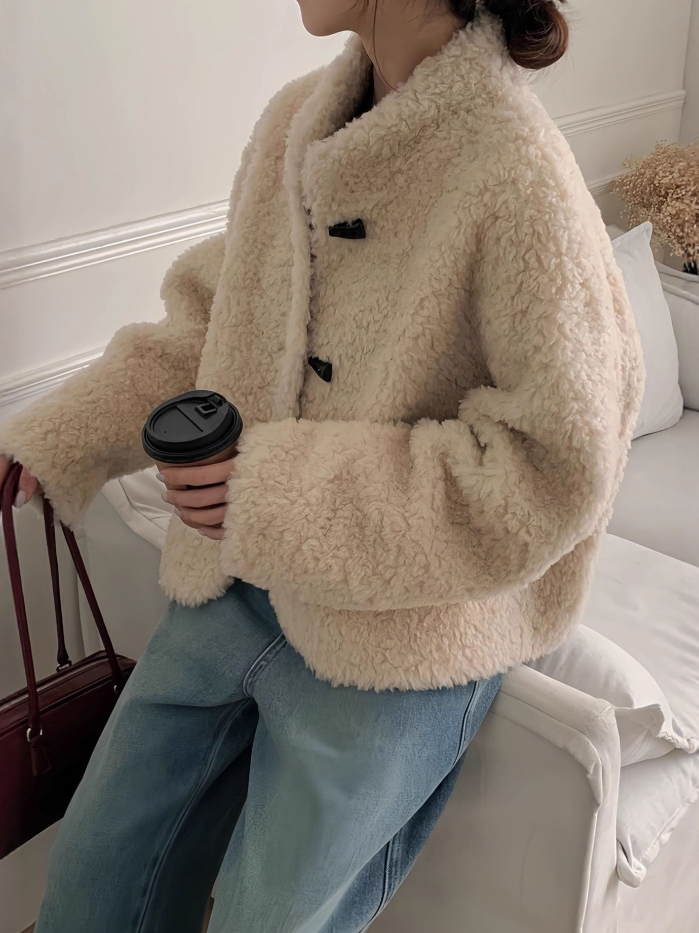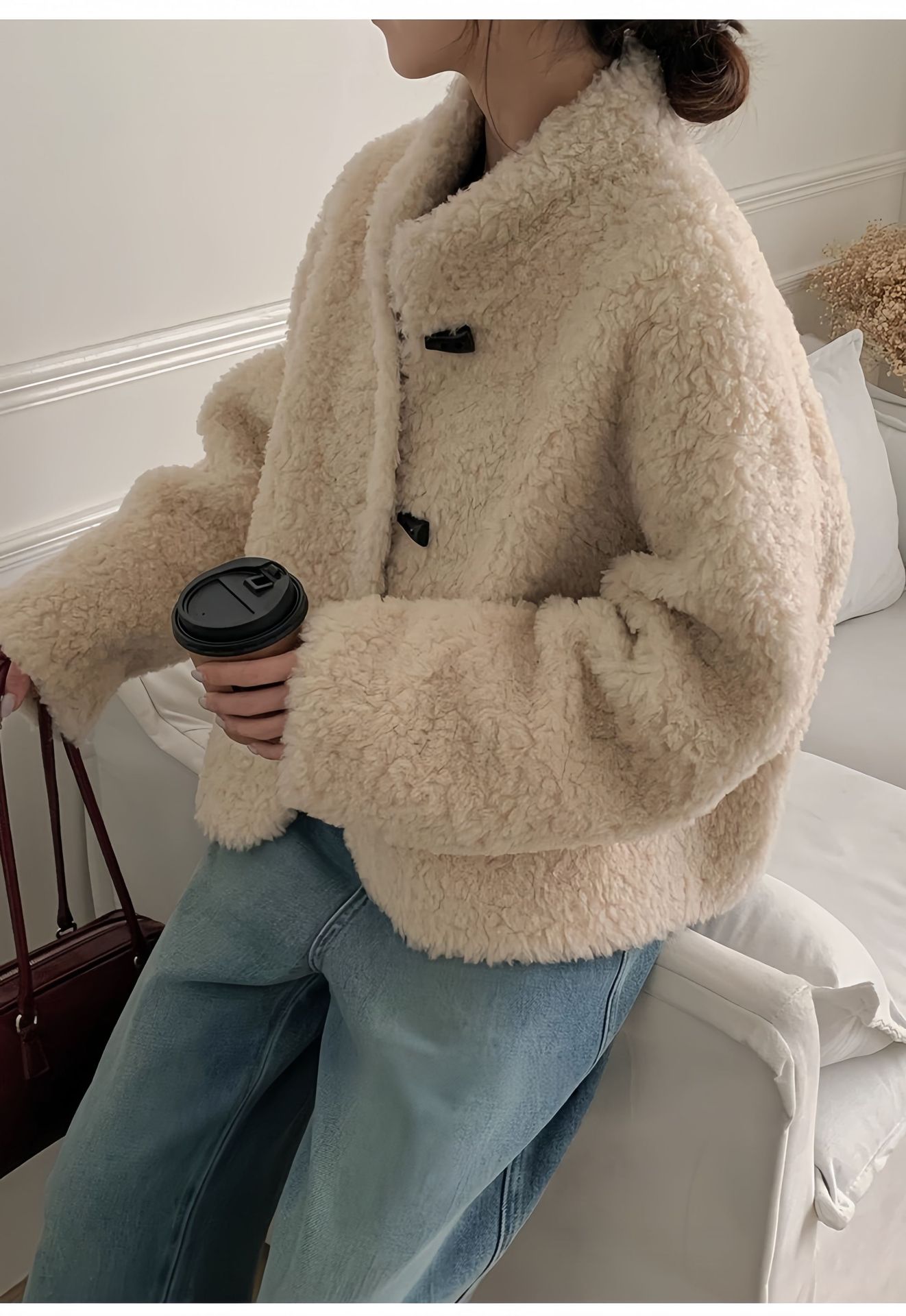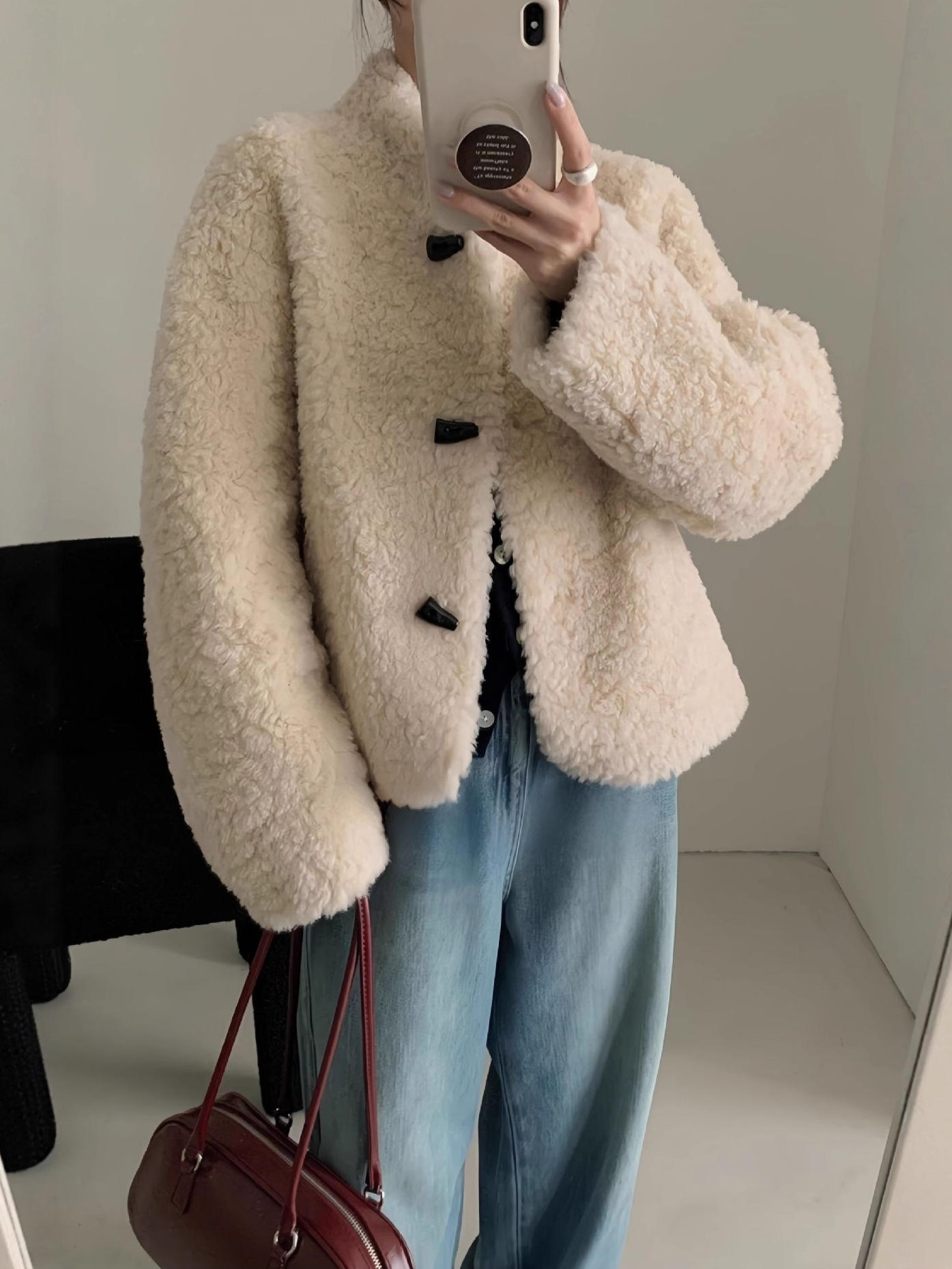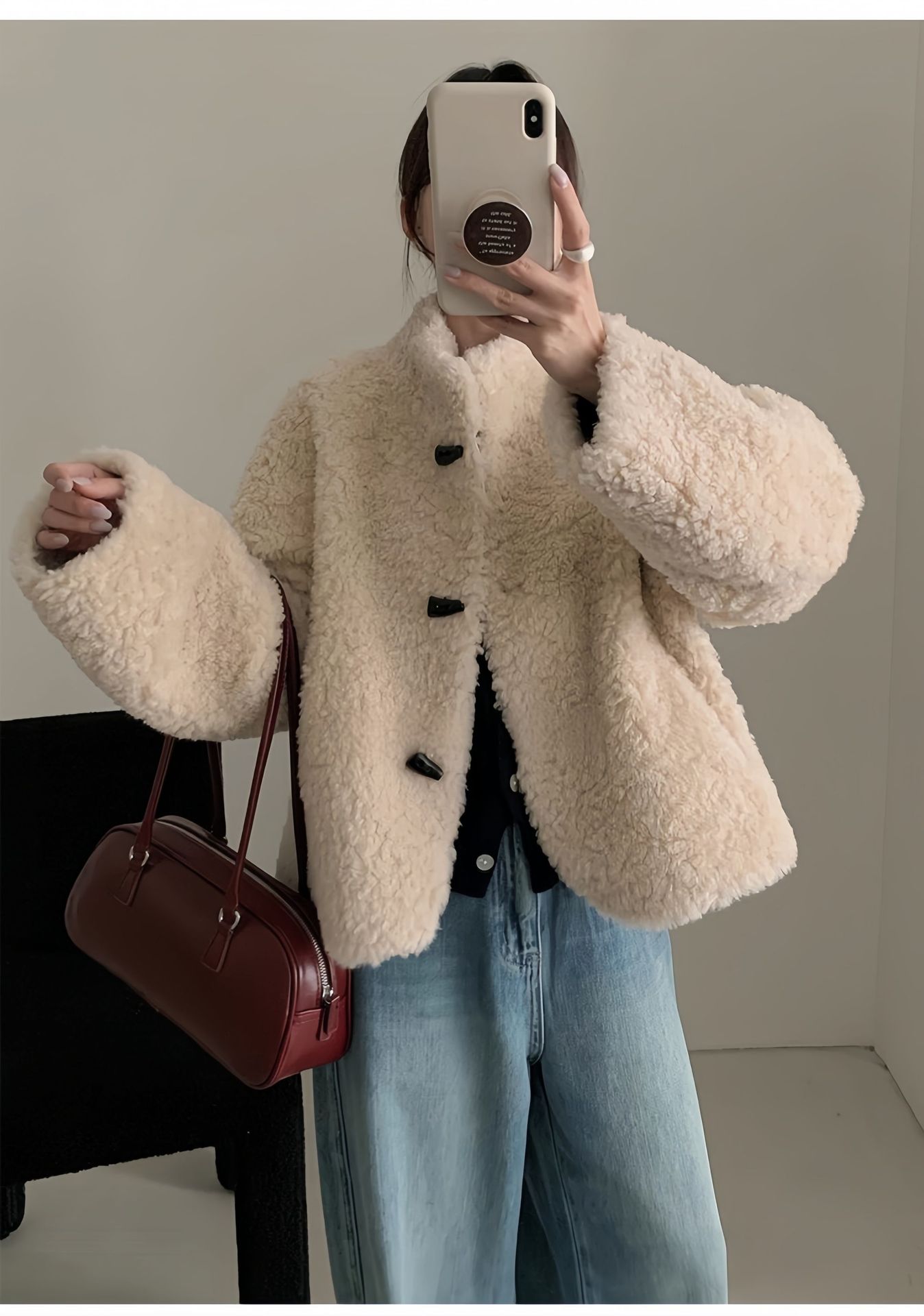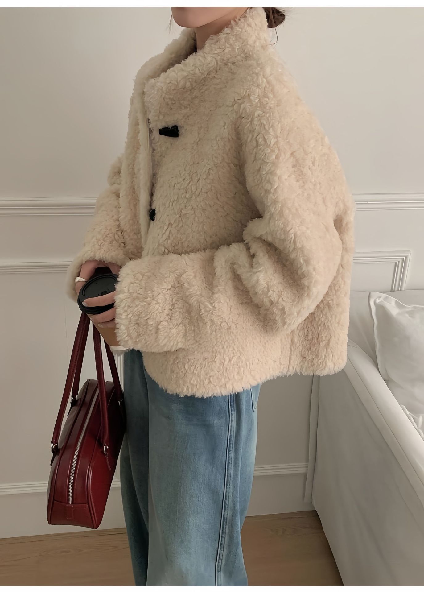 Женская короткая куртка из корейской овчины, композитный мех, воротник-стойка, осень-зима 2025 года.