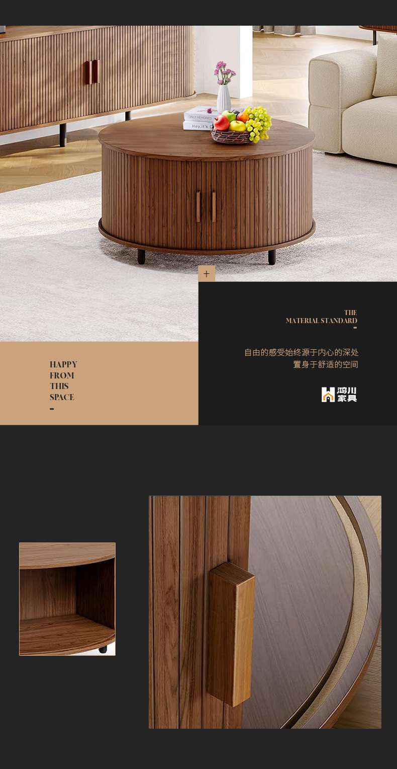 Круглый журнальный столик из черного ореха Северной Америки, современный, простой, с текстурой дерева, многофункциональный, для гостиной.