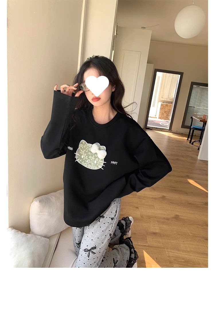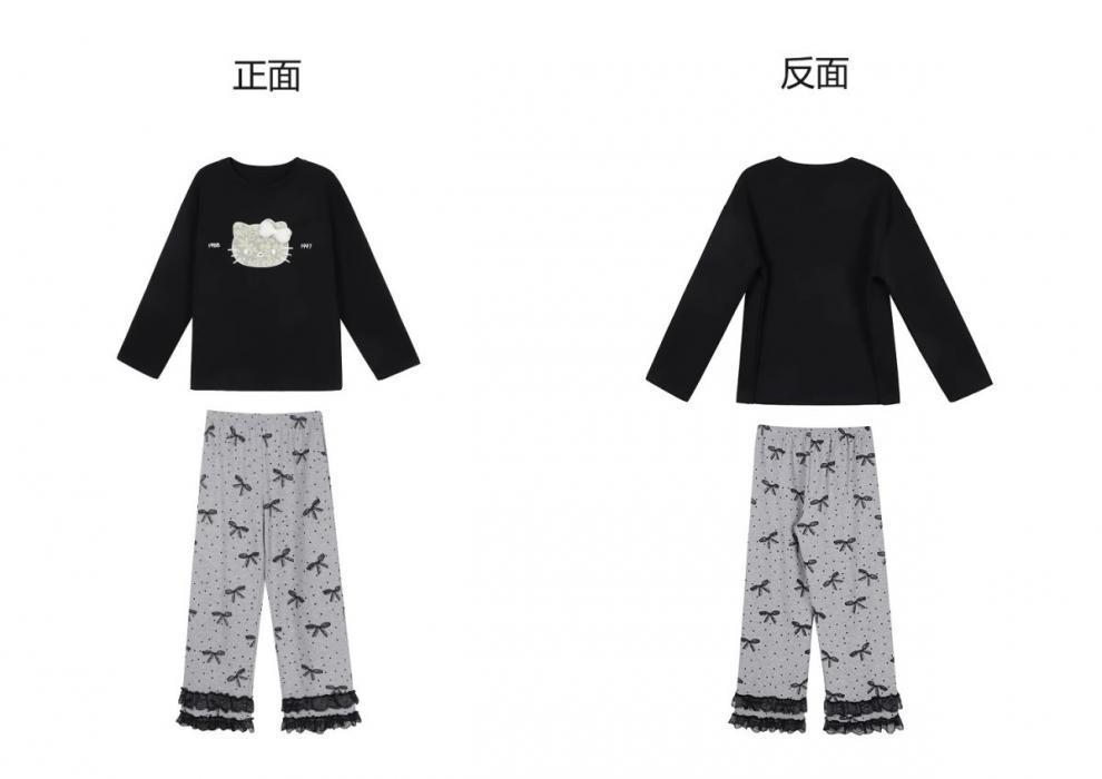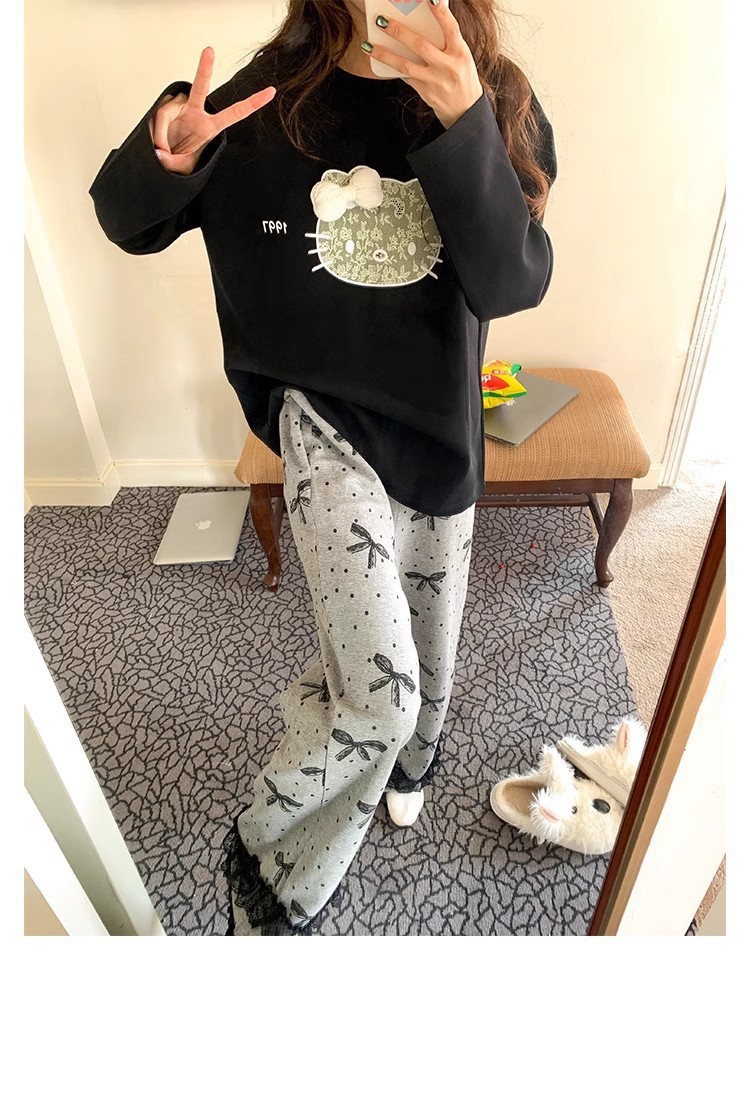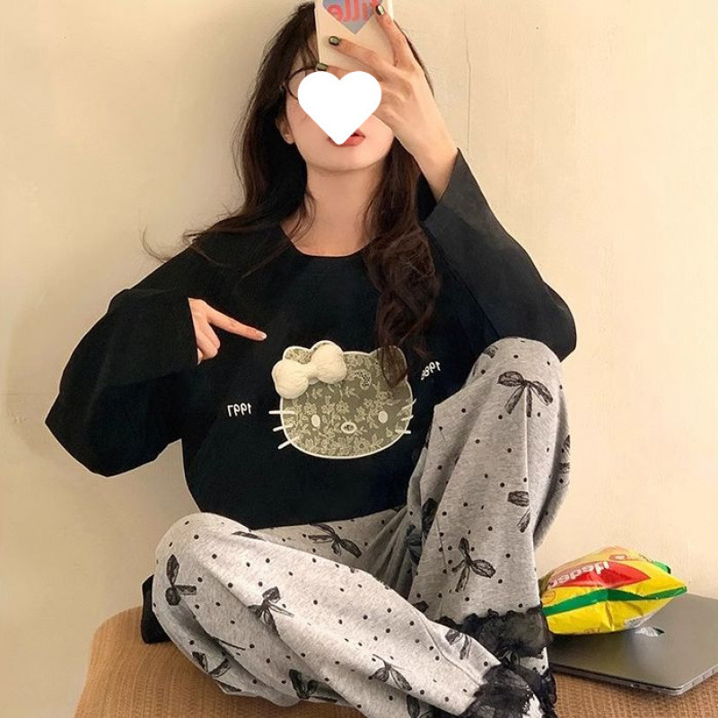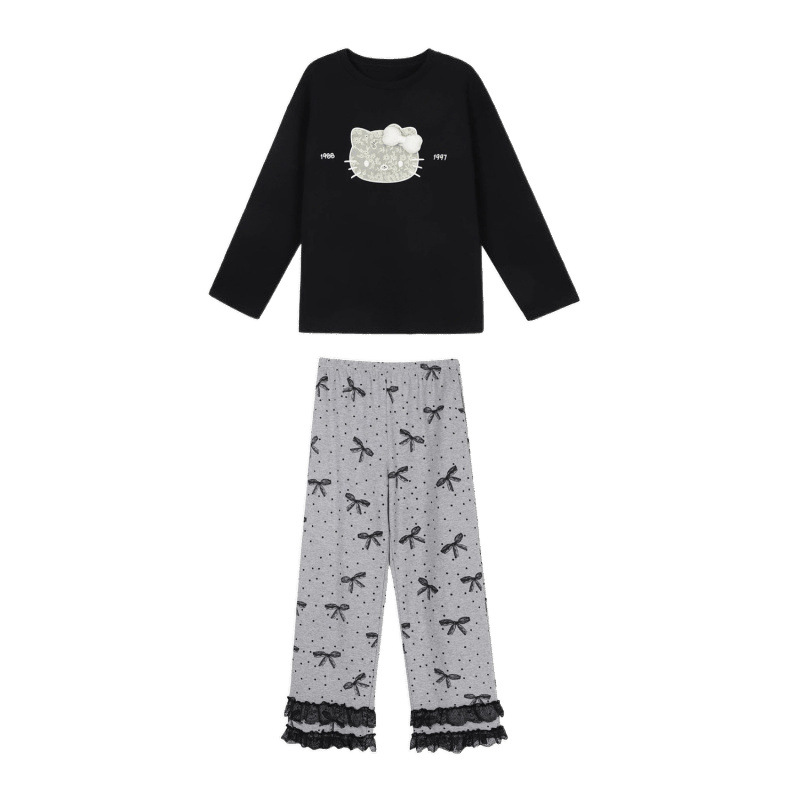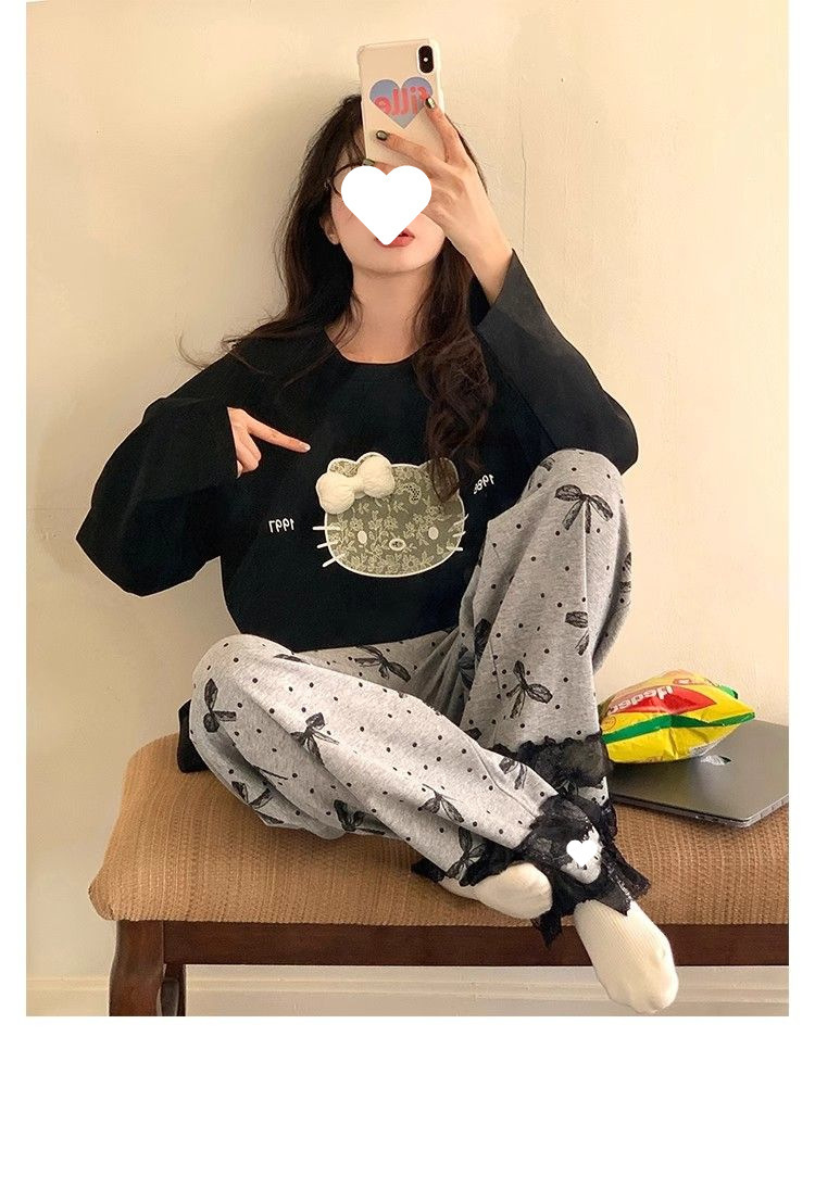 2025 новых милых пижам KT с длинными рукавами для женщин весной и осенью, повседневная домашняя одежда в горошек с милым бантом, которую можно носить на улице