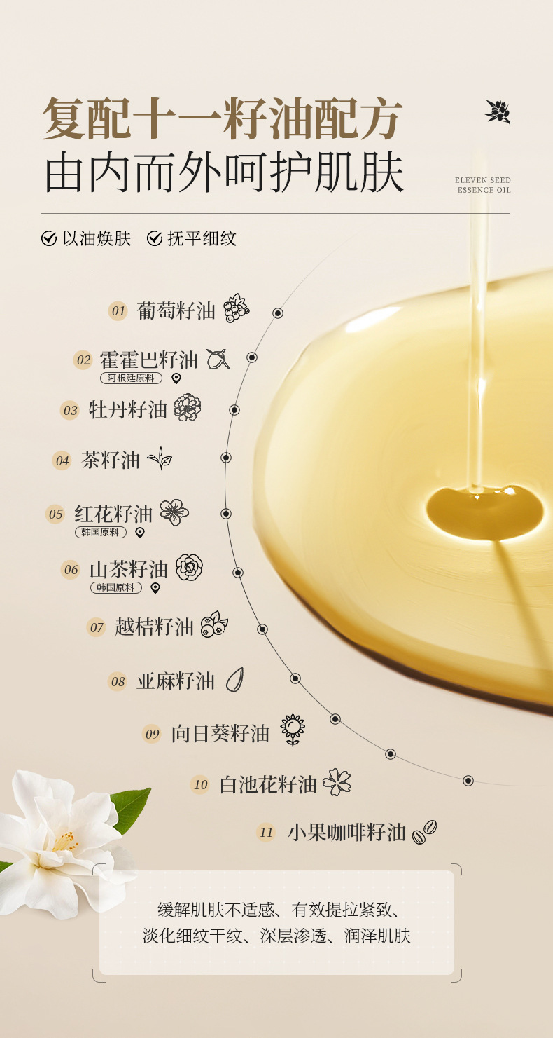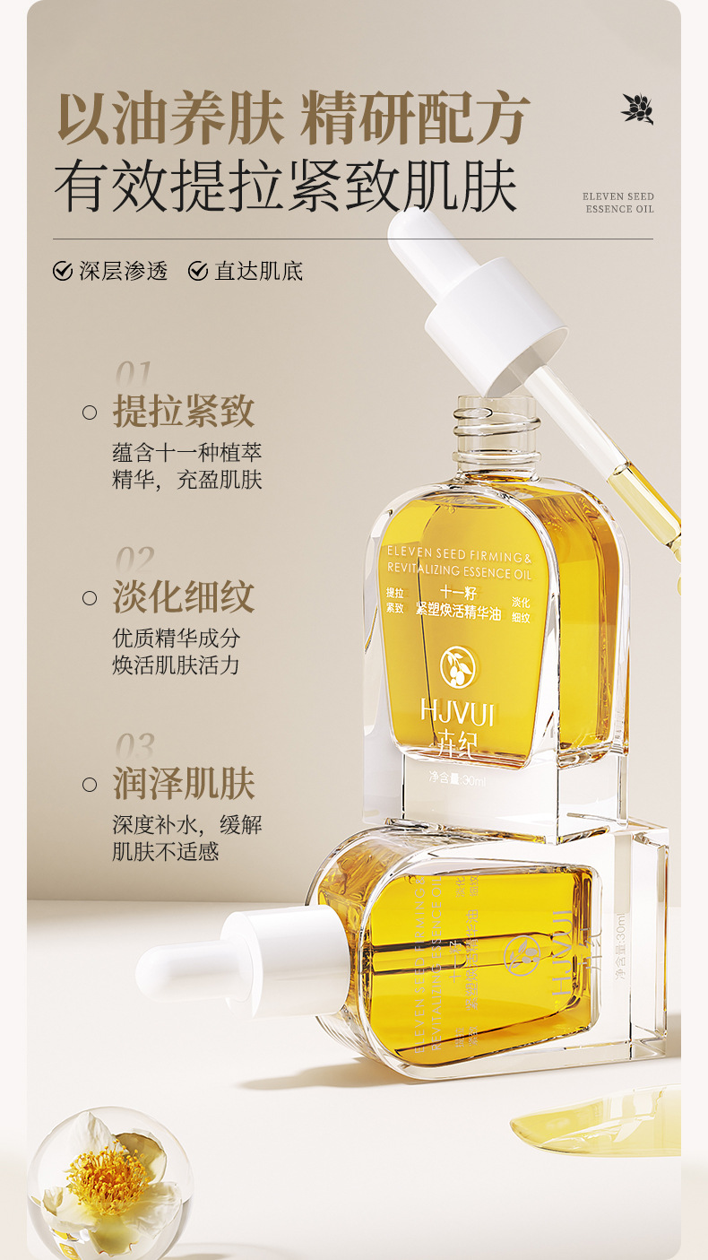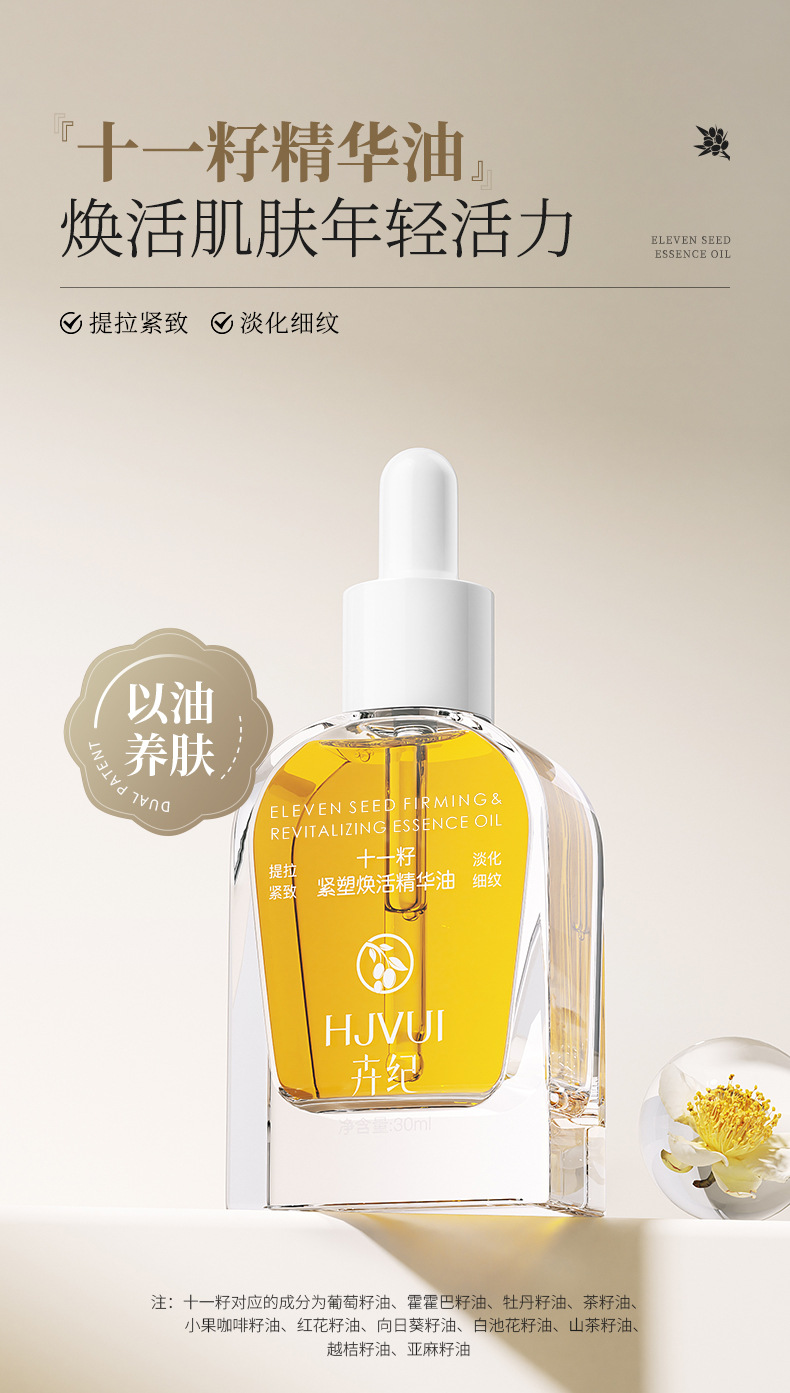 Huiji Eleven Seed Essence Oil использует масло для питания кожи, увлажнения, укрепления и эссенции против морщин, эссенции для легких линий лица.