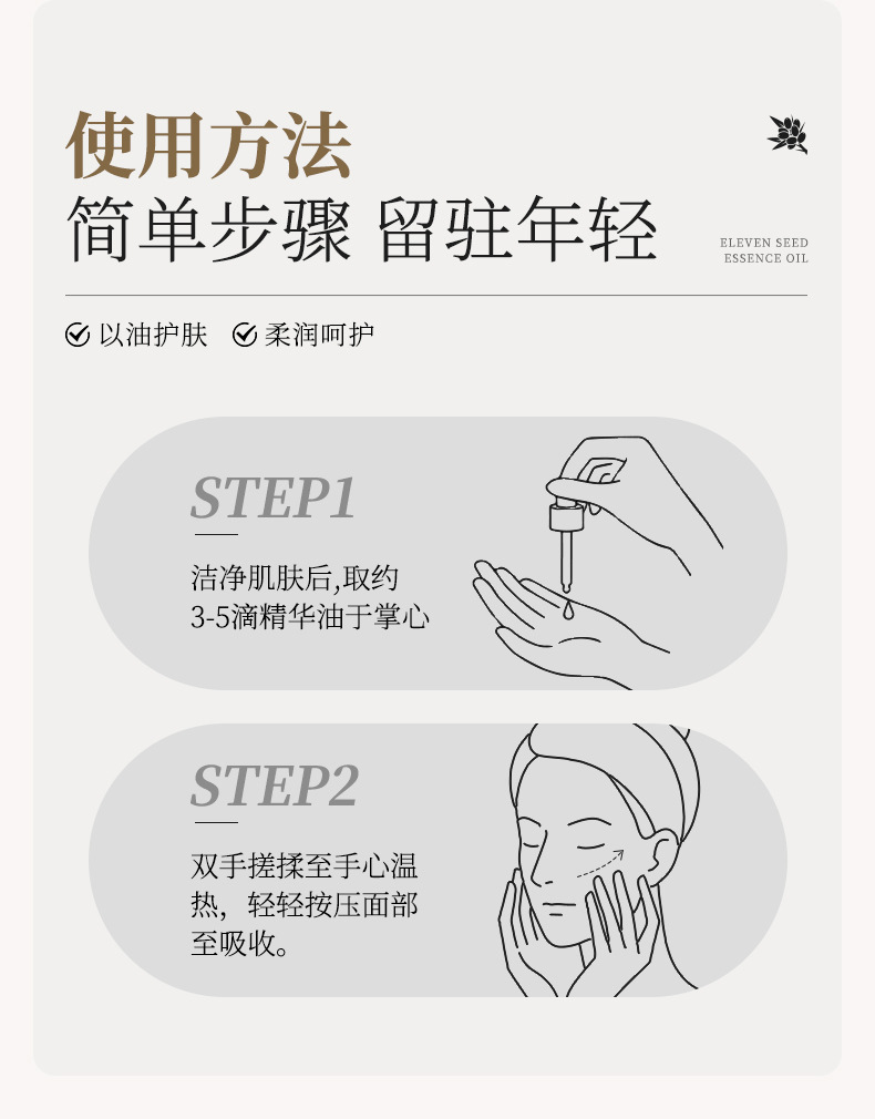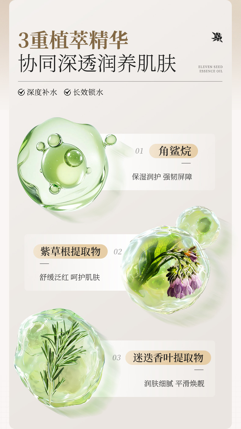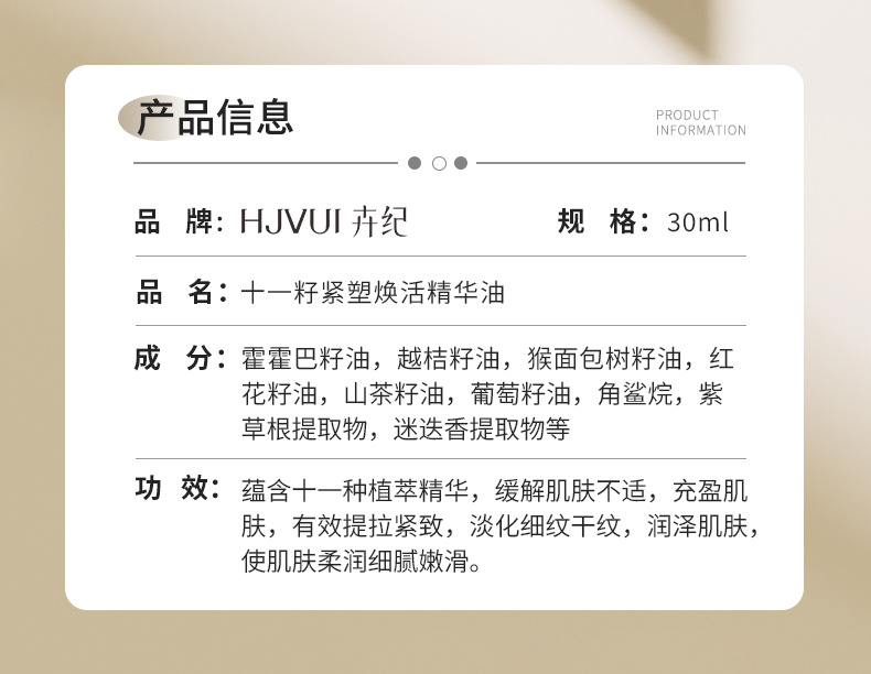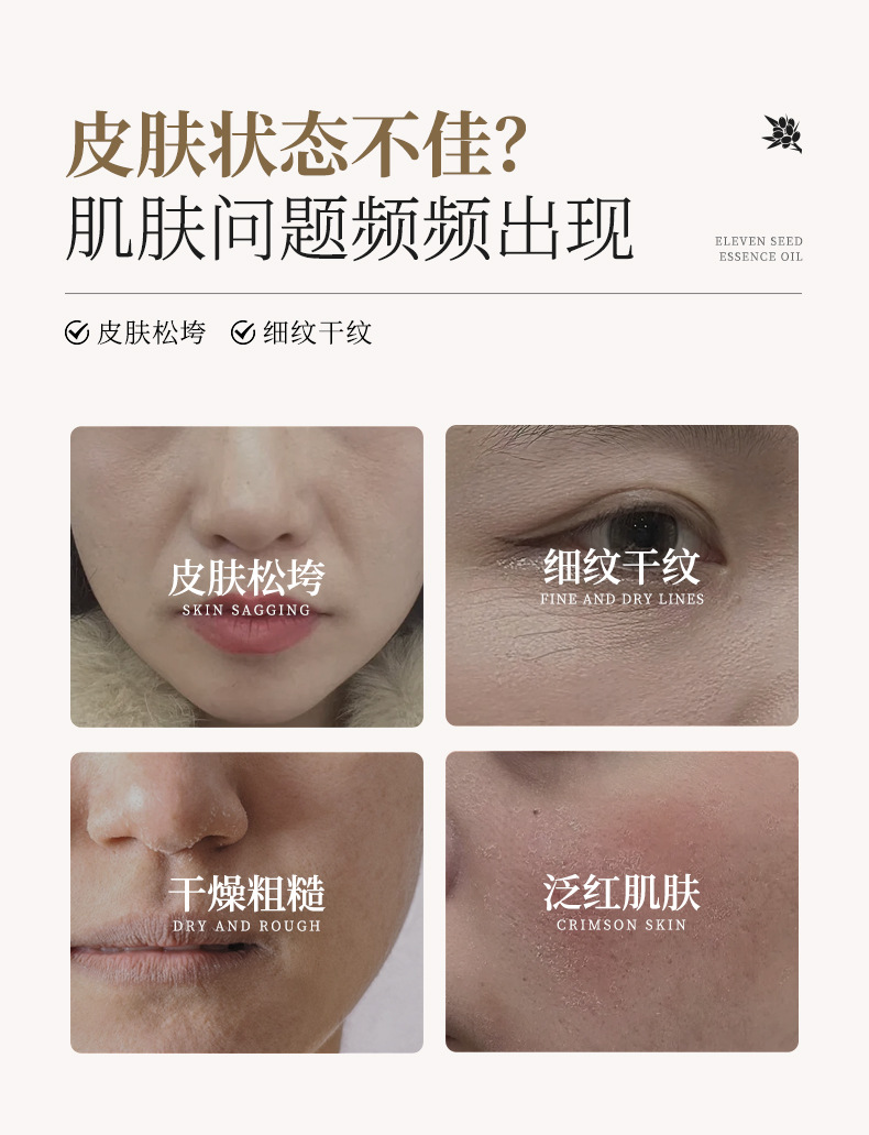 Huiji Eleven Seed Essence Oil использует масло для питания кожи, увлажнения, укрепления и эссенции против морщин, эссенции для легких линий лица.