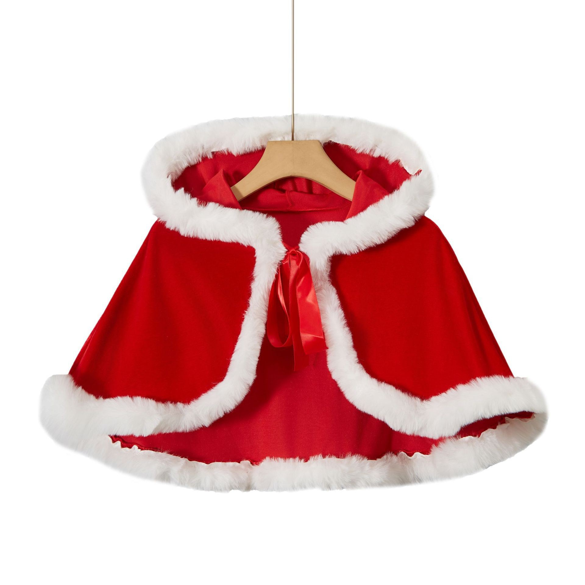 Рождественский плащ-накидка из вельвета с капюшоном, трехцветный, в стиле аниме COS, рождественские аксессуары, женская одежда
