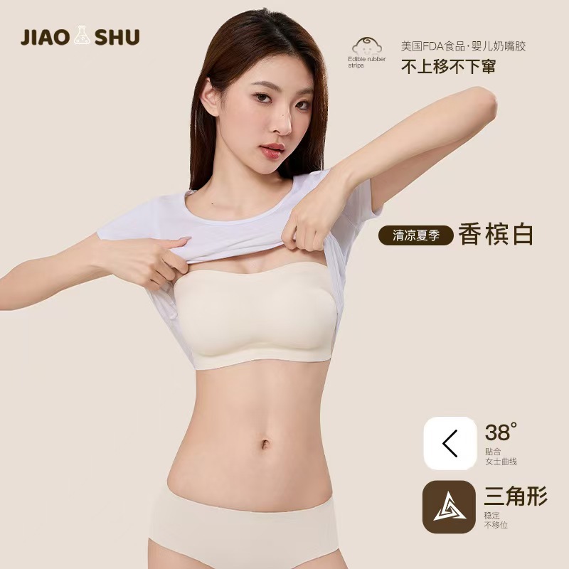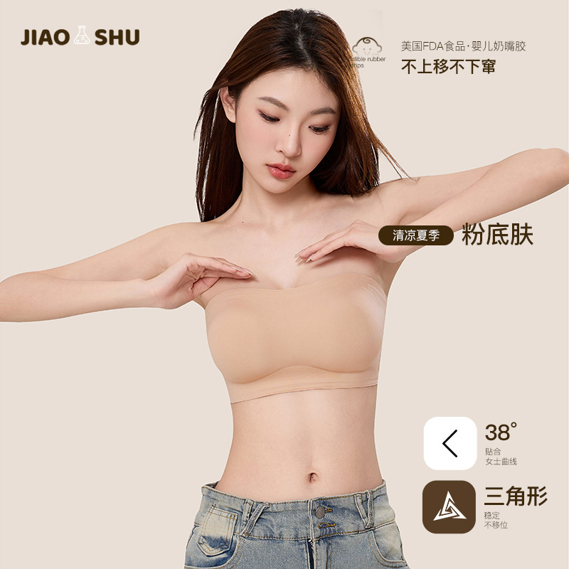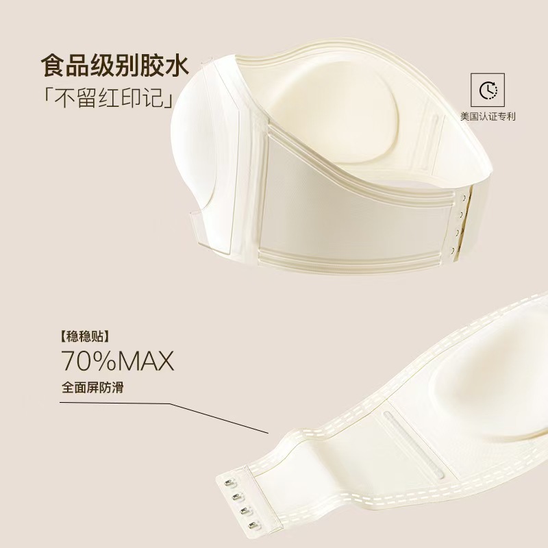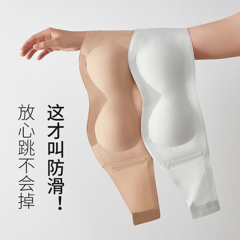 TikTok трендовый невидимый бюстгальтер без бретелек для женщин со специальной смесью, противоскользящими полосками, небольшой сборкой груди, бесшовной красивой спинкой, дышащим бюстгальтером.