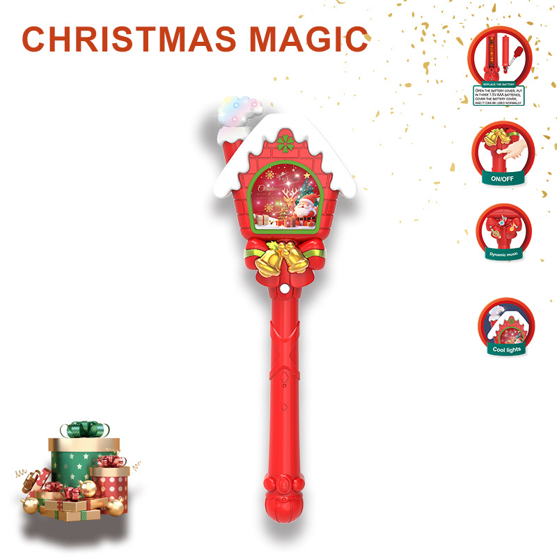 Самая продаваемая рождественская серия Amazon, светящаяся волшебная палочка, трансграничная звуковая и световая палочка принцессы для девочек, реквизит для украшения вечеринки