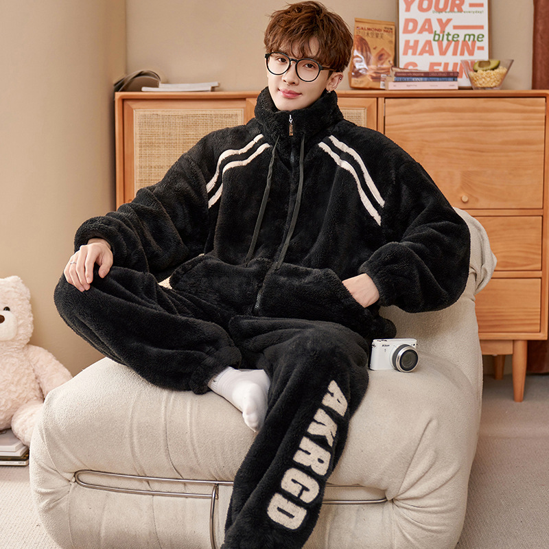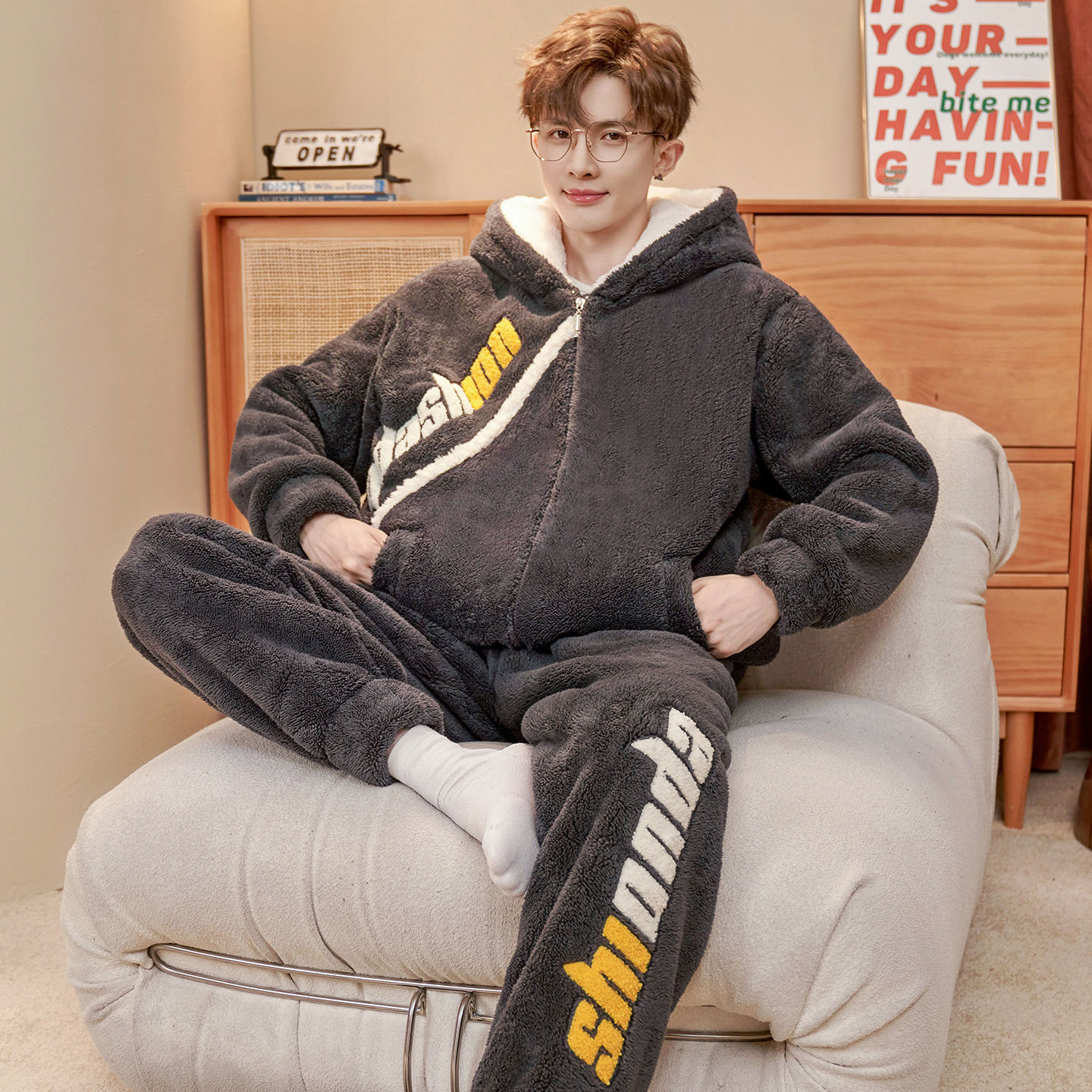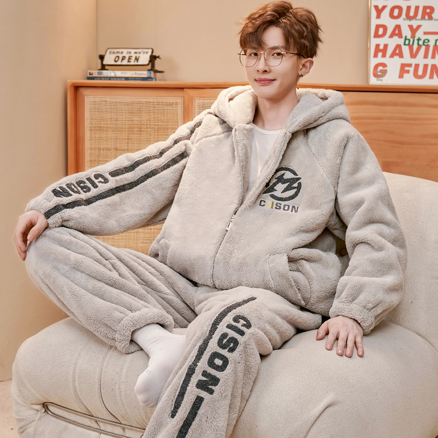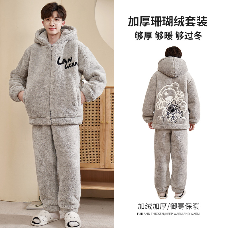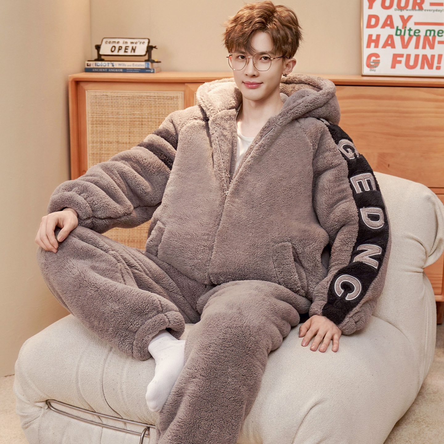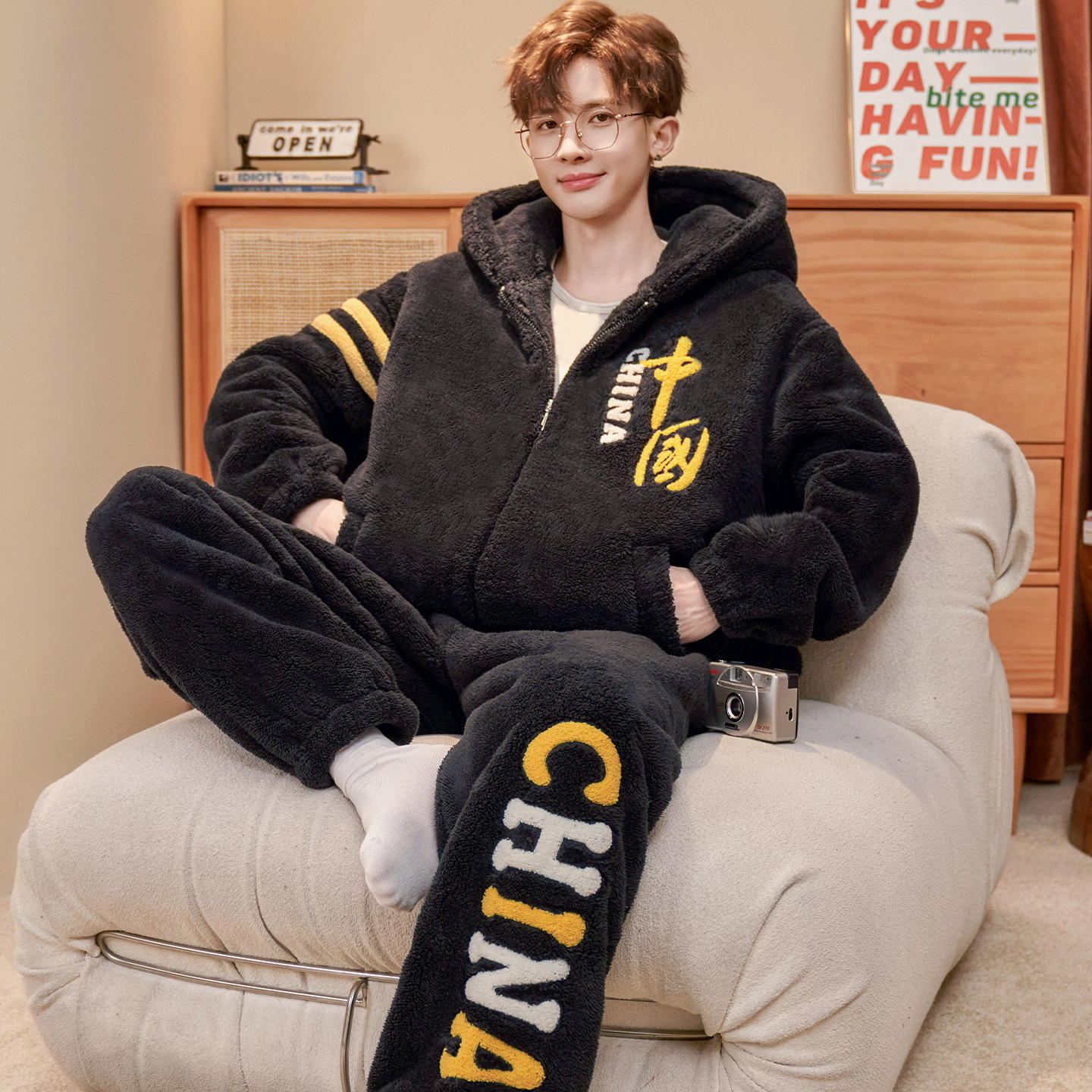 Пижамы мужские зимние коралловые бархатные утолщенные флисовые подкладки для подростков, школьников младших классов, большие размеры, осенне-зимний комплект домашней одежды