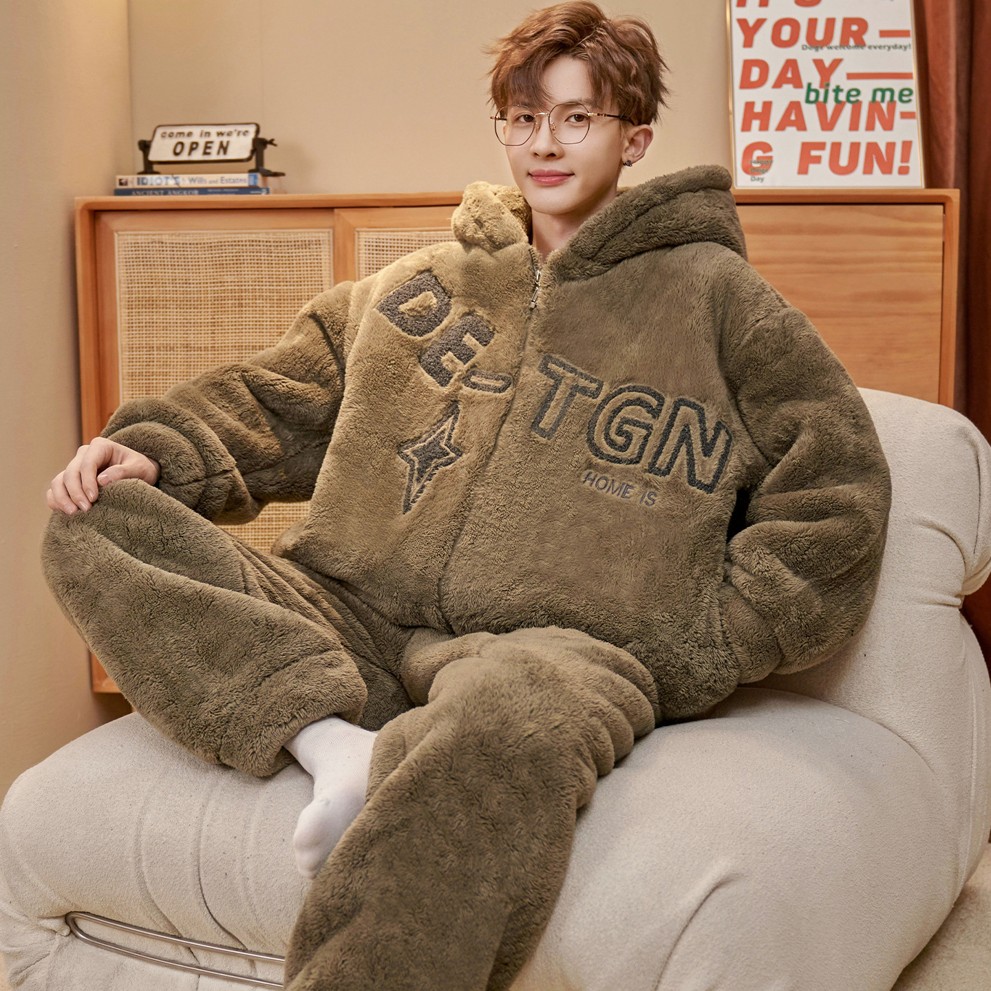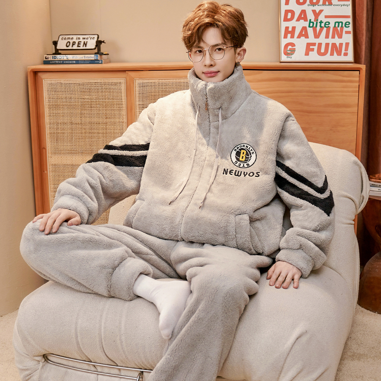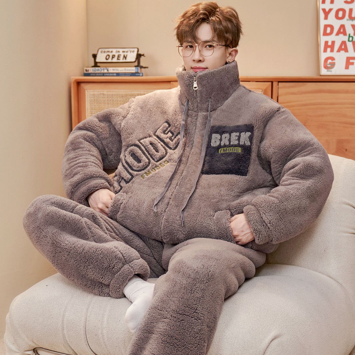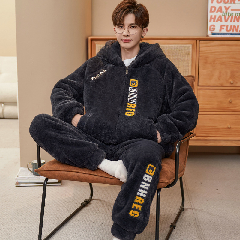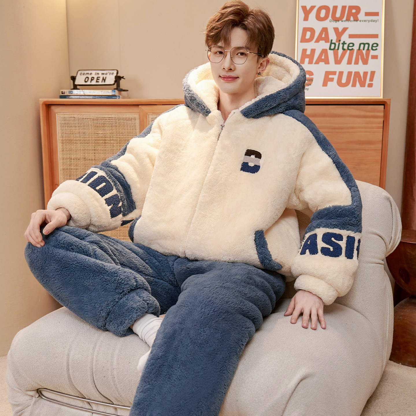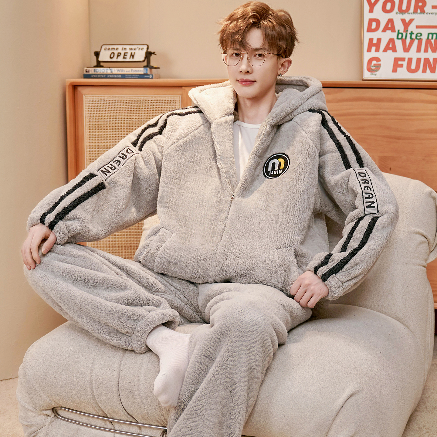 Пижамы мужские зимние коралловые бархатные утолщенные флисовые подкладки для подростков, школьников младших классов, большие размеры, осенне-зимний комплект домашней одежды
