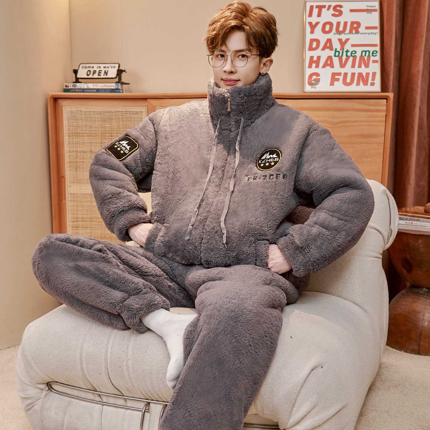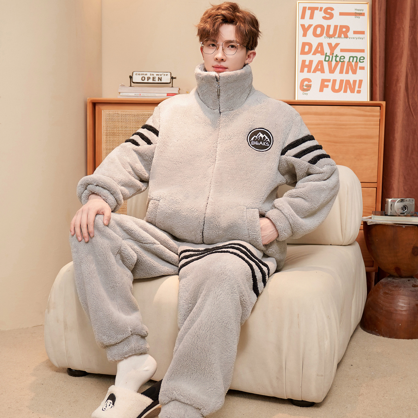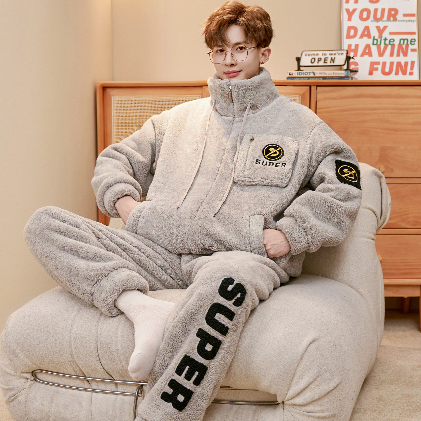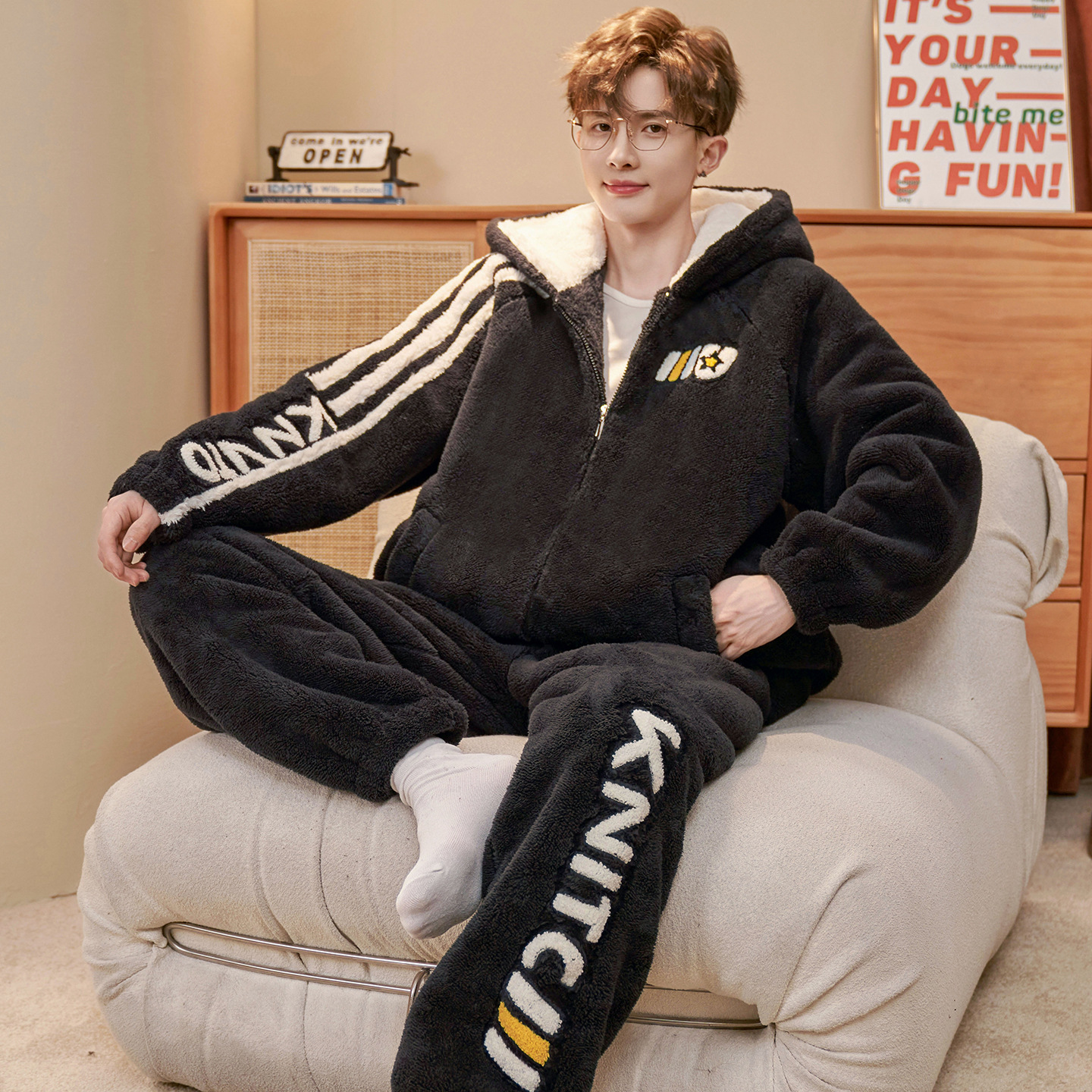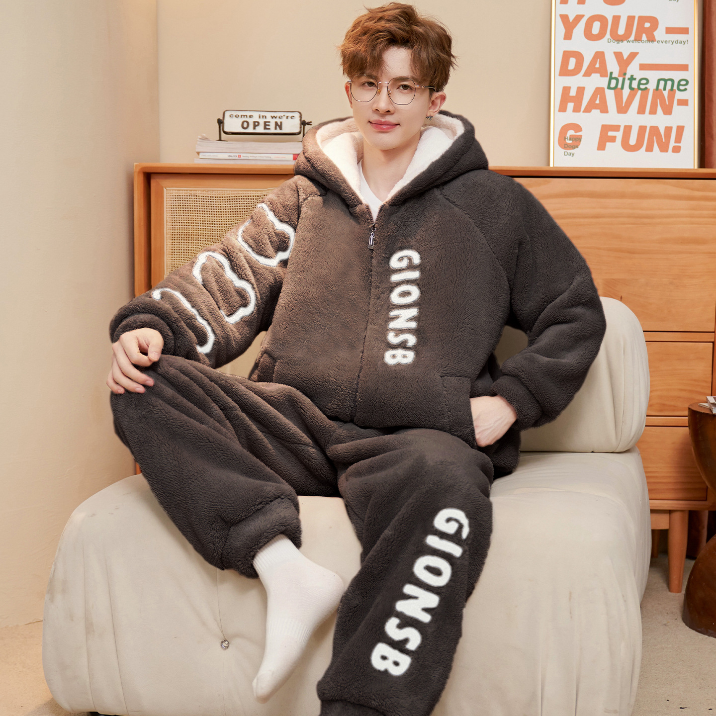Пижамы мужские зимние коралловые бархатные утолщенные флисовые подкладки для подростков, школьников младших классов, большие размеры, осенне-зимний комплект домашней одежды