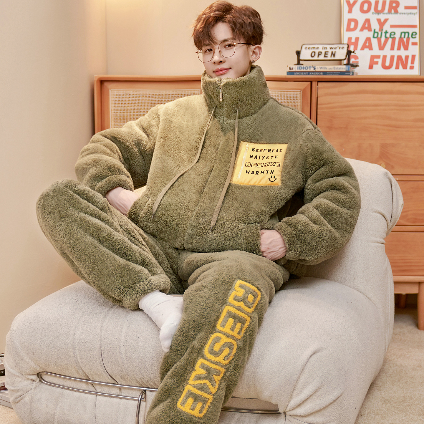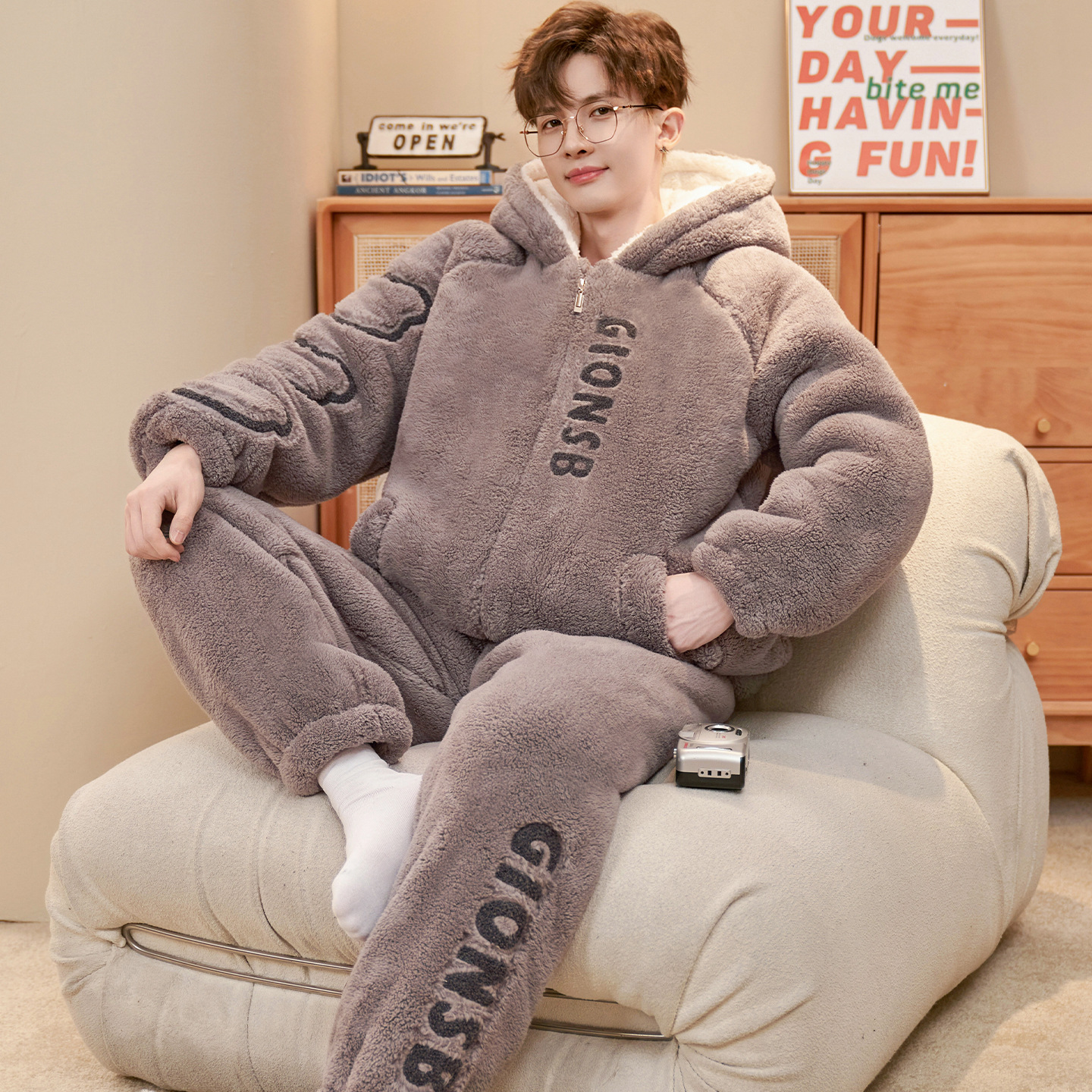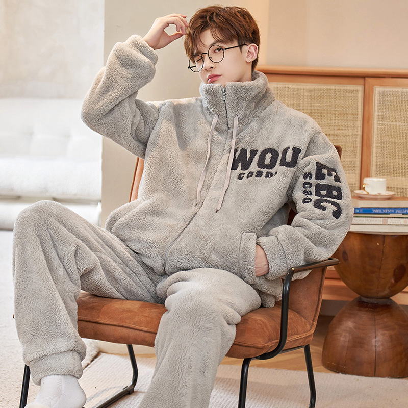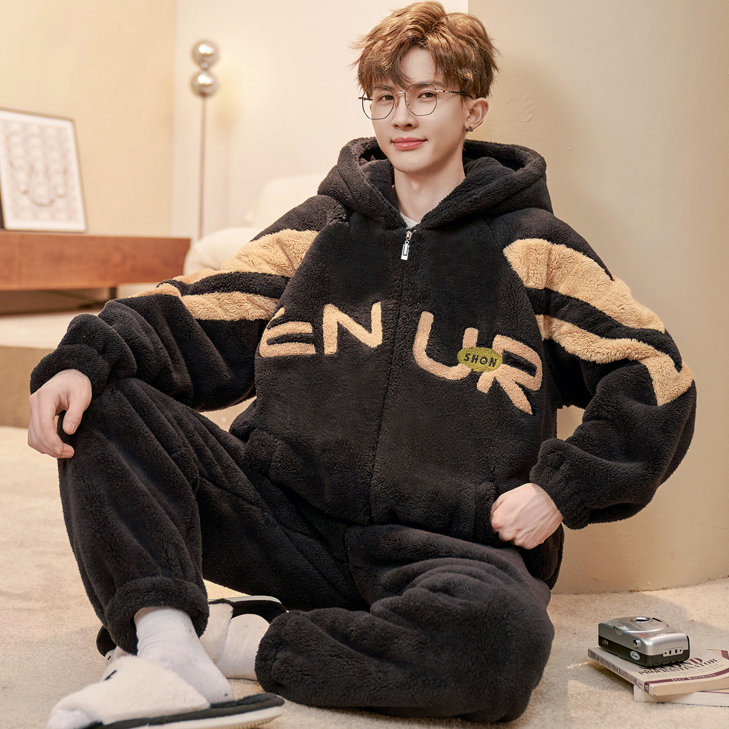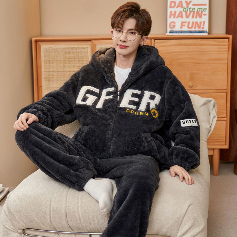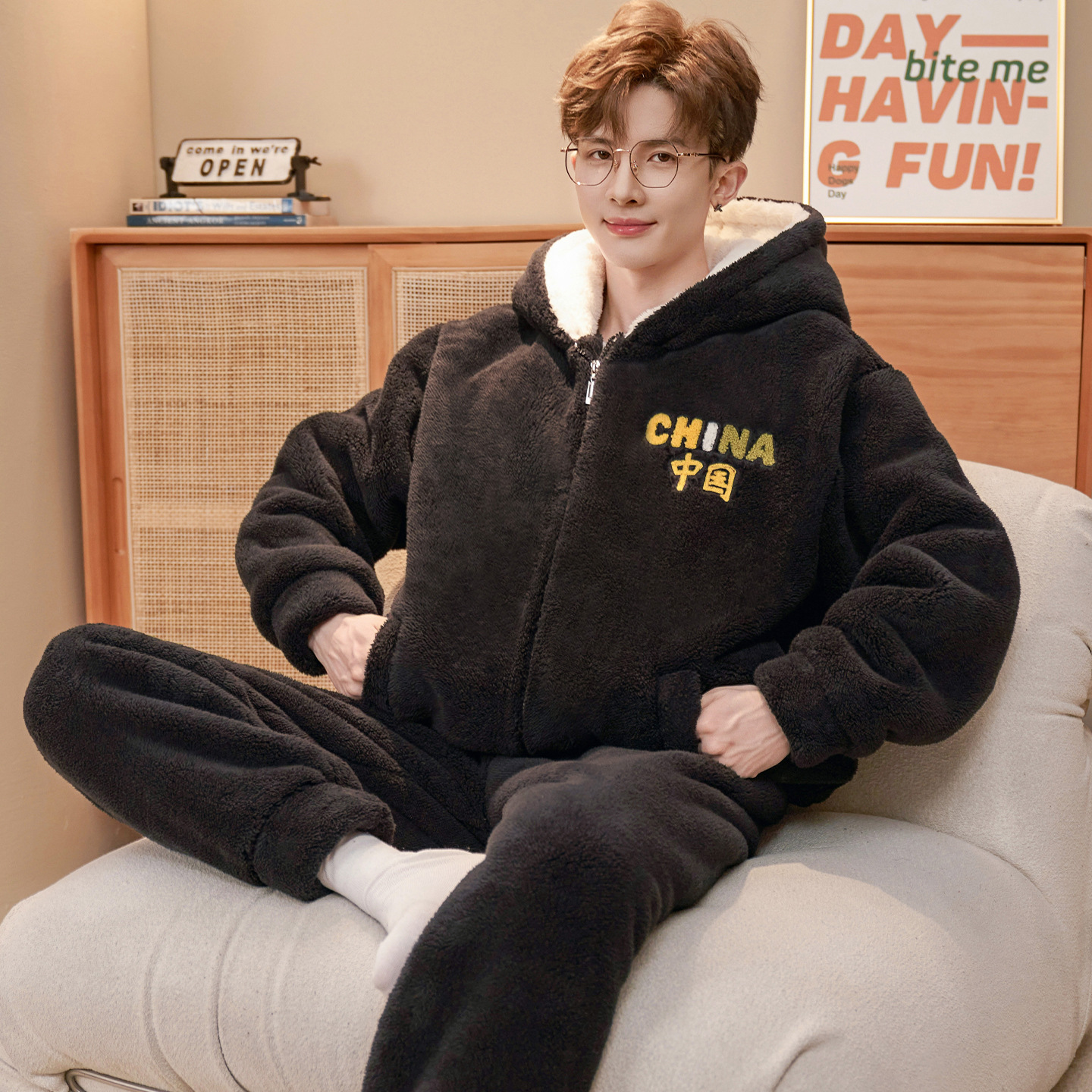 Пижамы мужские зимние коралловые бархатные утолщенные флисовые подкладки для подростков, школьников младших классов, большие размеры, осенне-зимний комплект домашней одежды