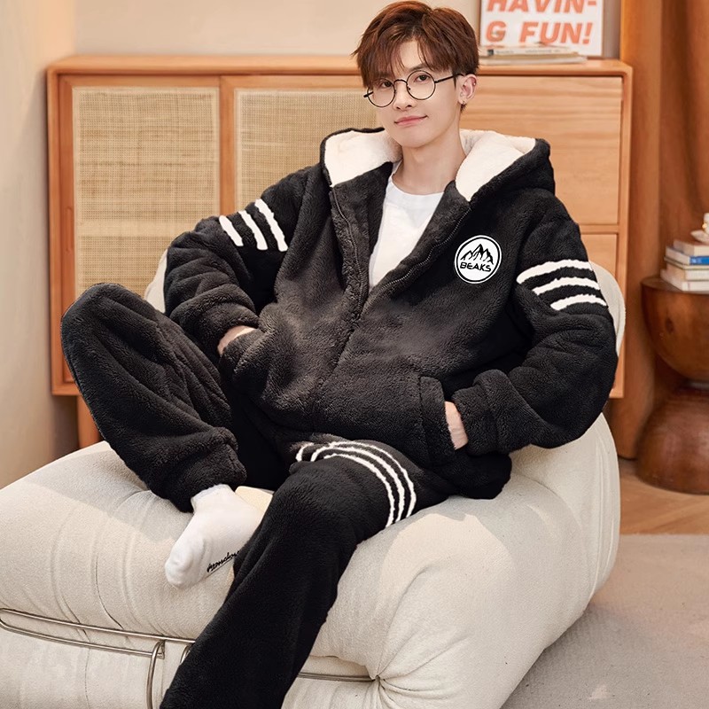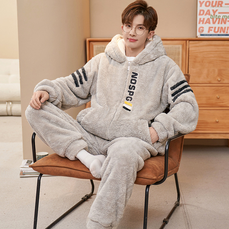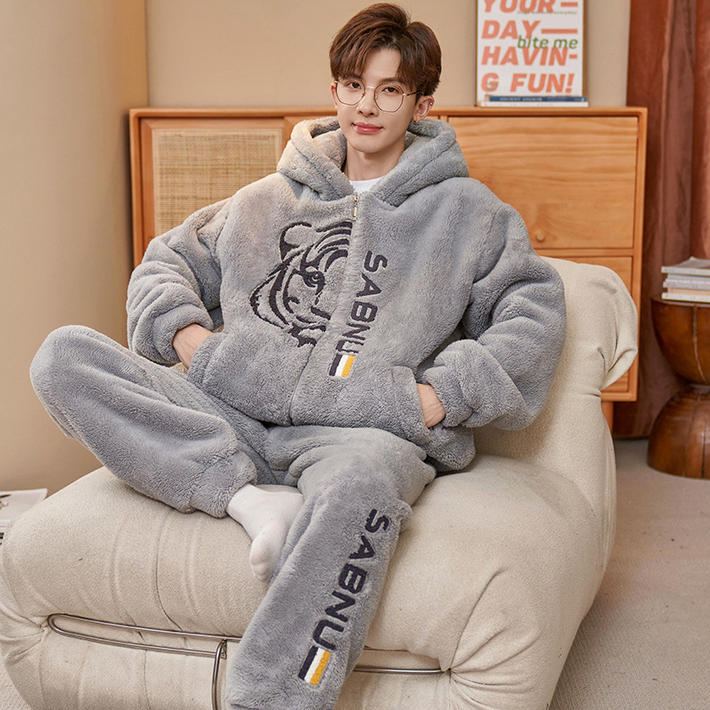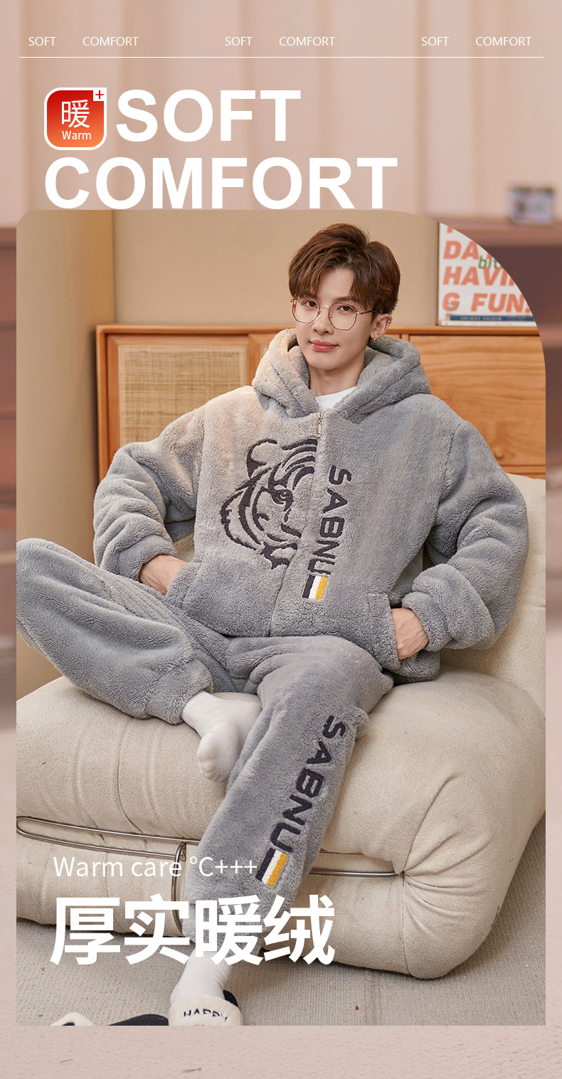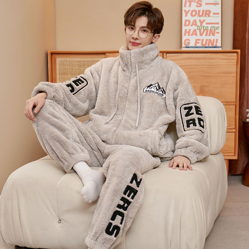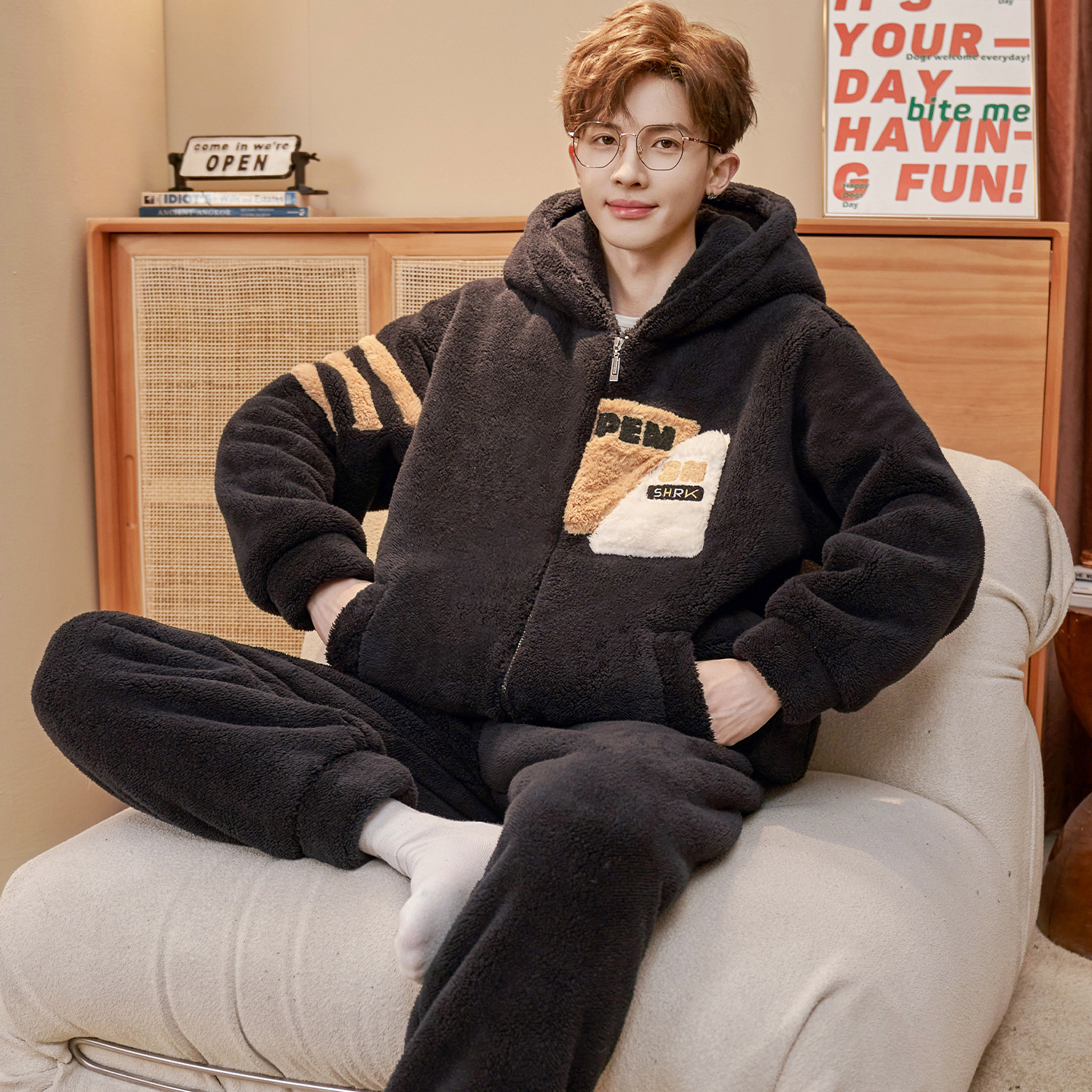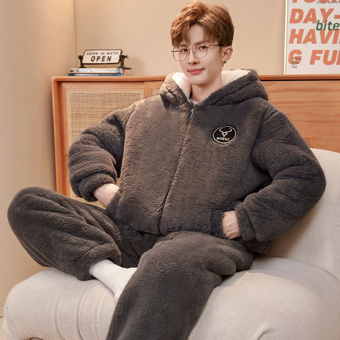 Пижамы мужские зимние коралловые бархатные утолщенные флисовые подкладки для подростков, школьников младших классов, большие размеры, осенне-зимний комплект домашней одежды