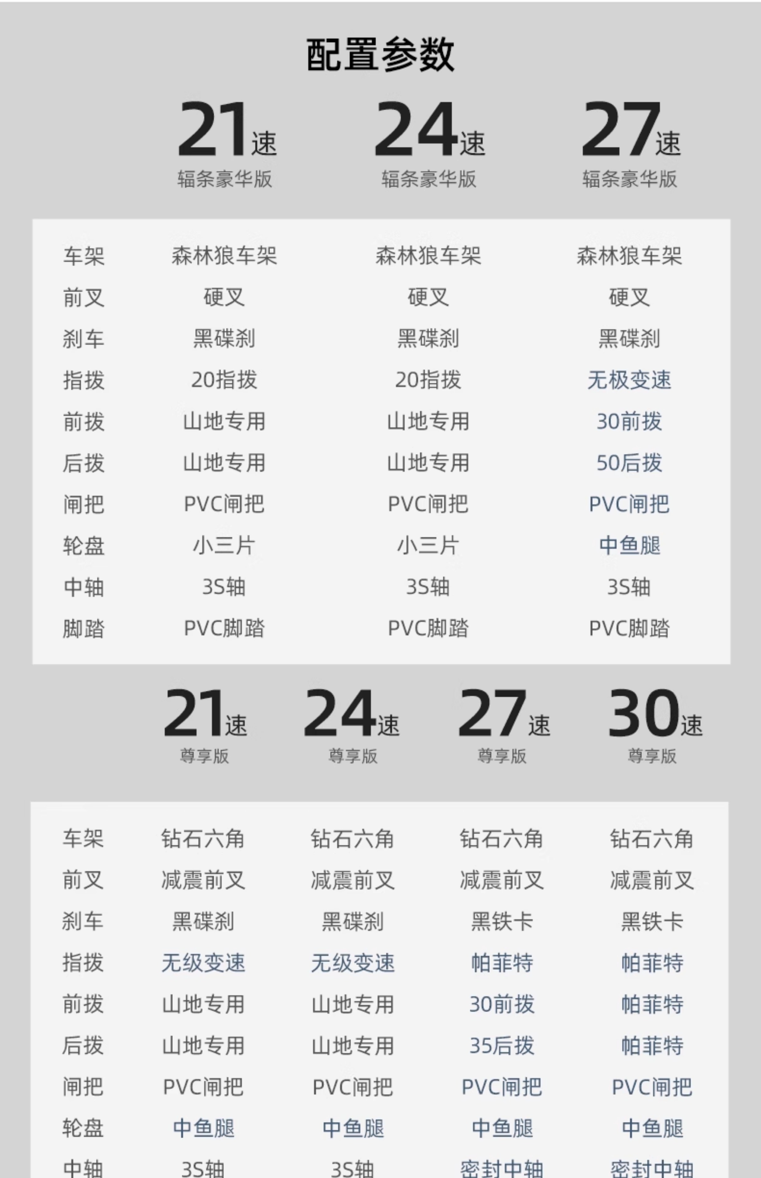 * 24inch -21 скорость; * 24inch -24 скорости; * 24inch -27 скоростей; * 24inch -30 скоростей; * 26inch -21 скорость; * 26inch -24 скорости; * 26inch -27 скоростей; * 26inch -30 скоростей