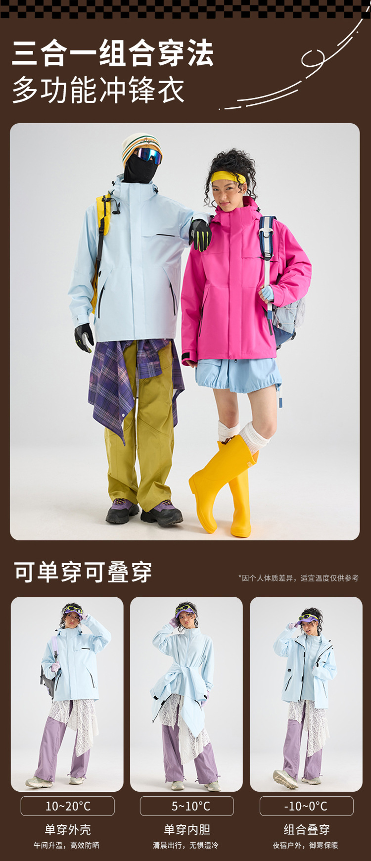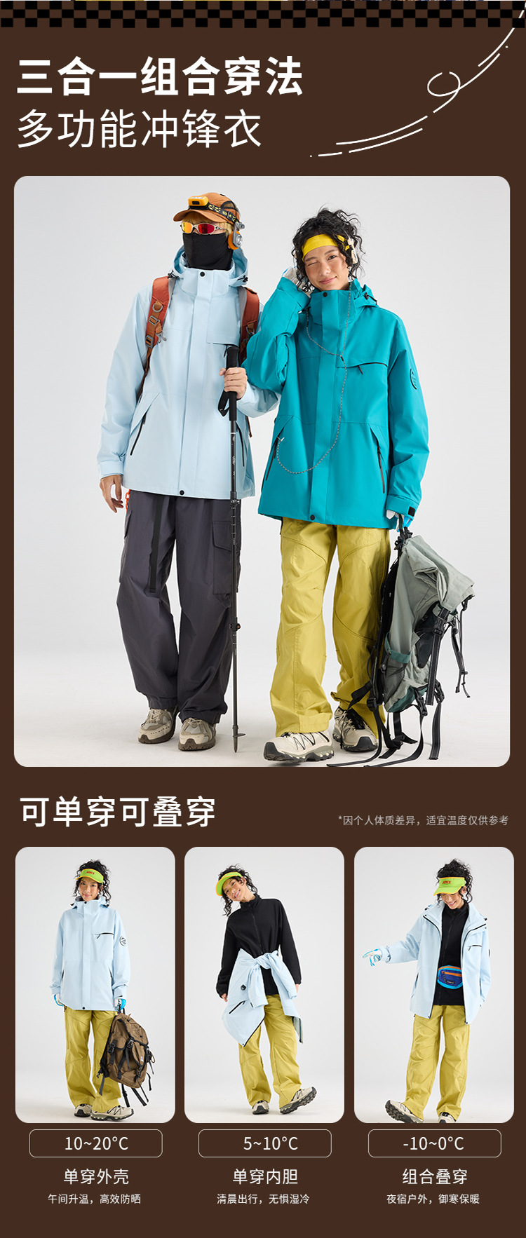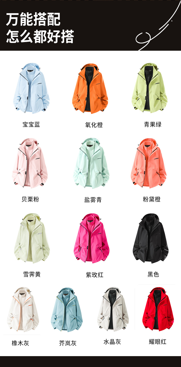 Luotuo женская ветрозащитная водонепроницаемая теплая двухсекционная куртка «три в одном» в одном стиле, мужская новая маленькая альпинистская куртка 2025 года