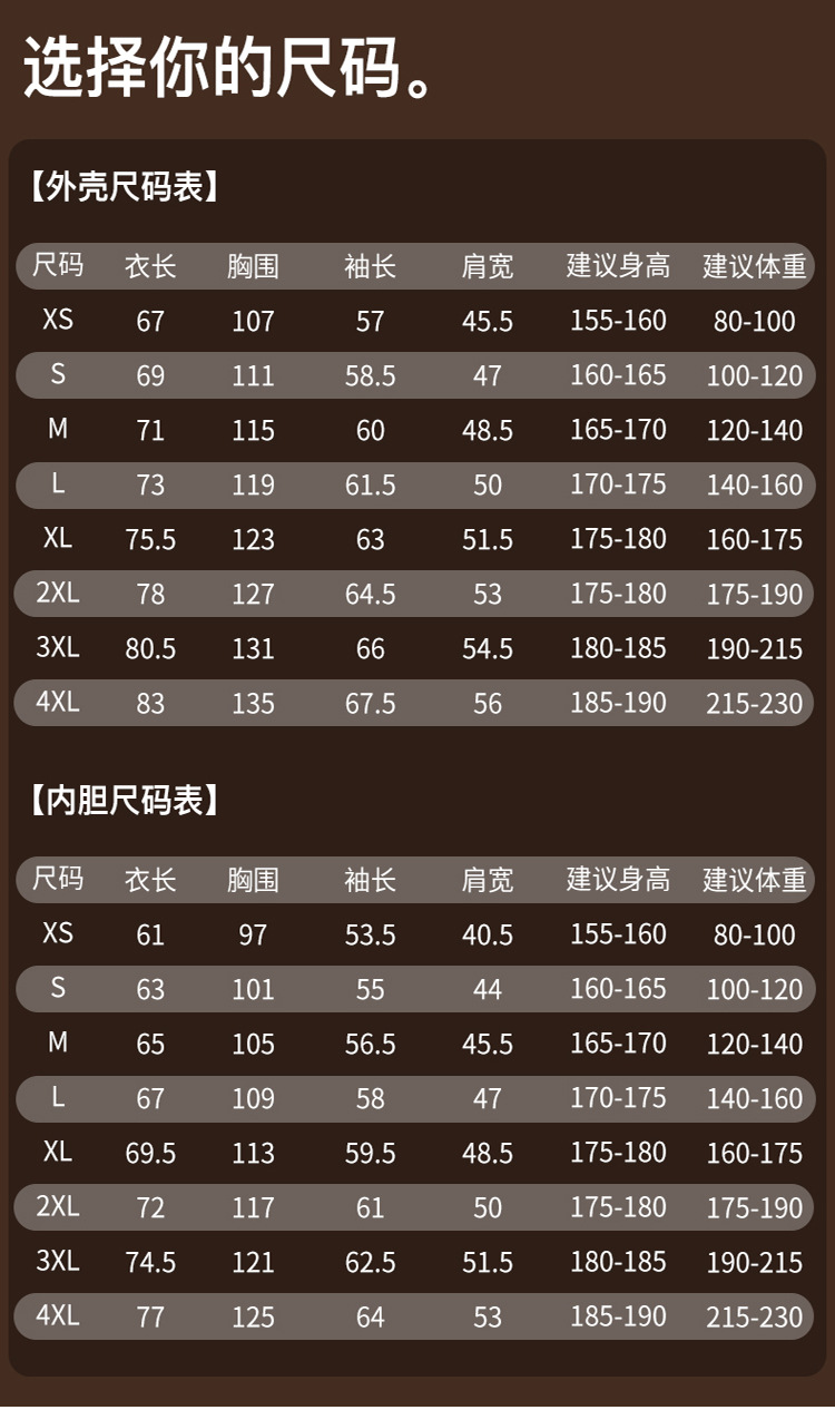 升级款尺码表