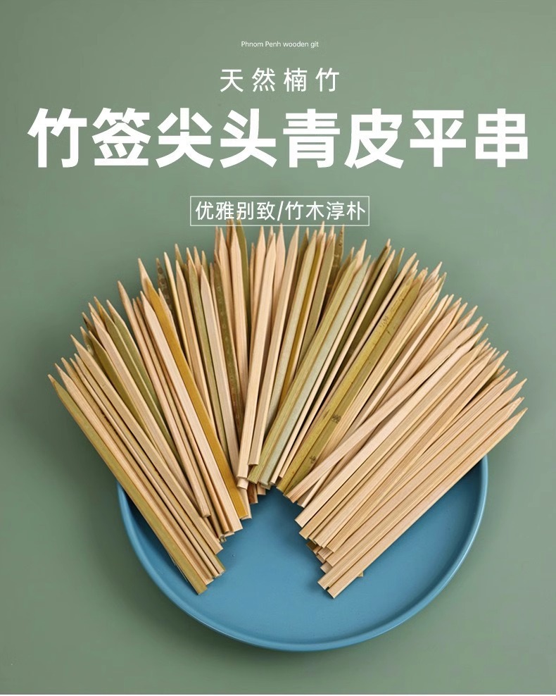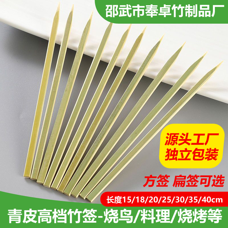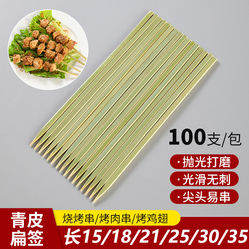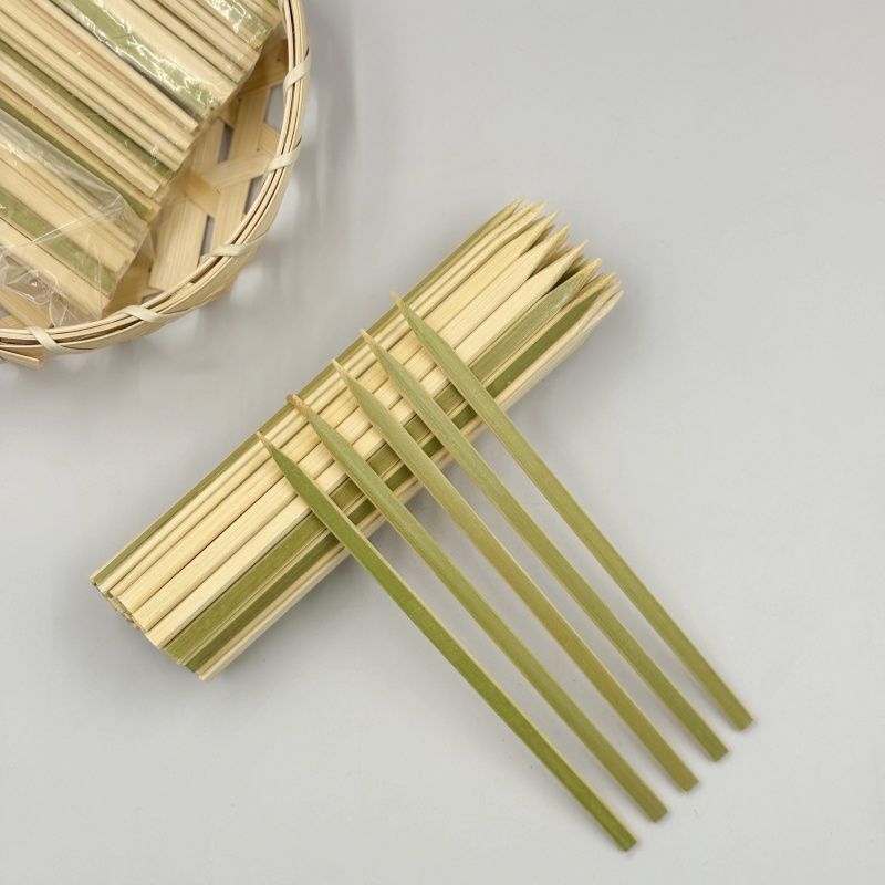 Зеленые бамбуковые шампуры оптом, одноразовые японские плоские шампуры для барбекю, шампуры для птиц, плоские шампуры, доставка через границу