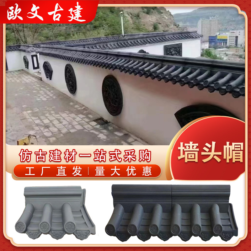 Антикварная встроенная настенная крышка, двусторонняя настенная крышка из цемента для плитки, настенная крышка для двора, настенная крышка в китайском стиле