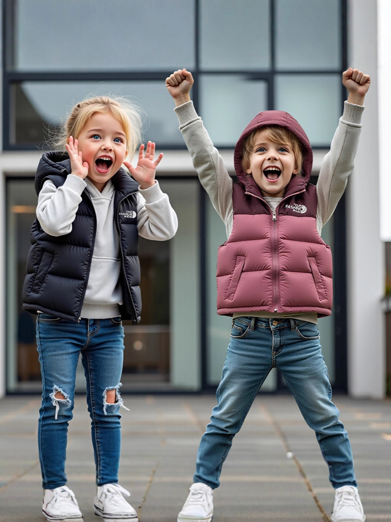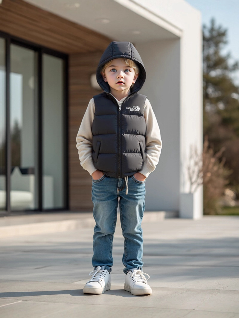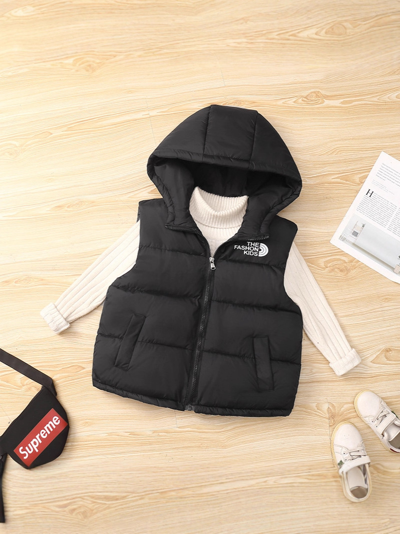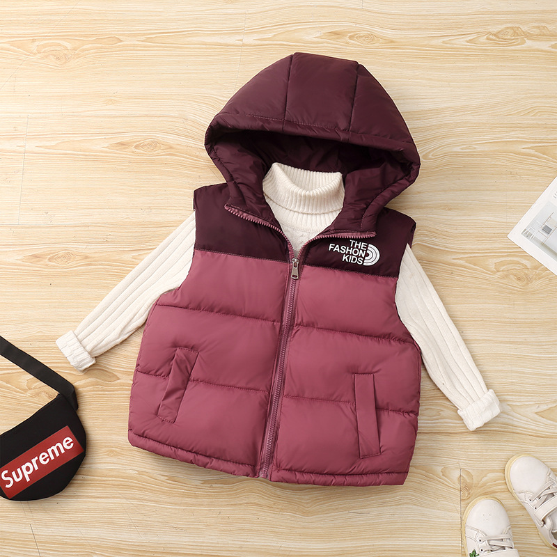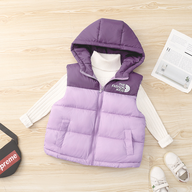 25 осенне-зимних новых детских курток с капюшоном и цветными блоками, хлопковый жилет для мальчиков и девочек, детские жилеты и жилеты среднего и большого размера.