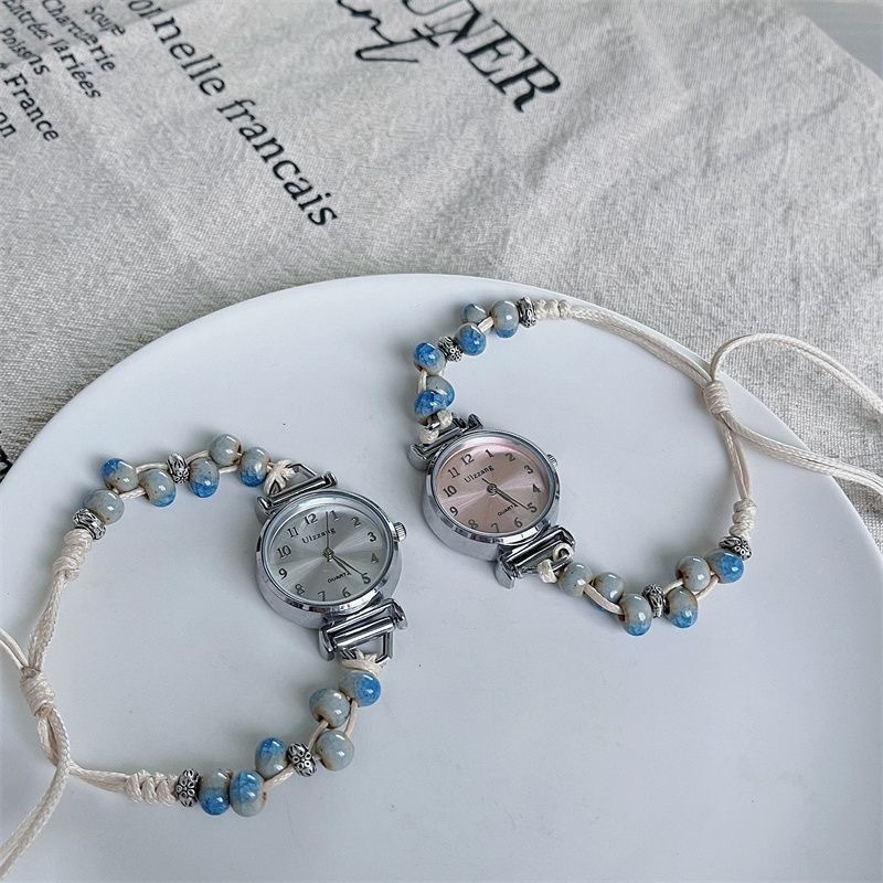 Модные минималистичные керамические часы-браслет для студенток, лесной стиль, свежие и художественные маленькие часы с круглым циферблатом.