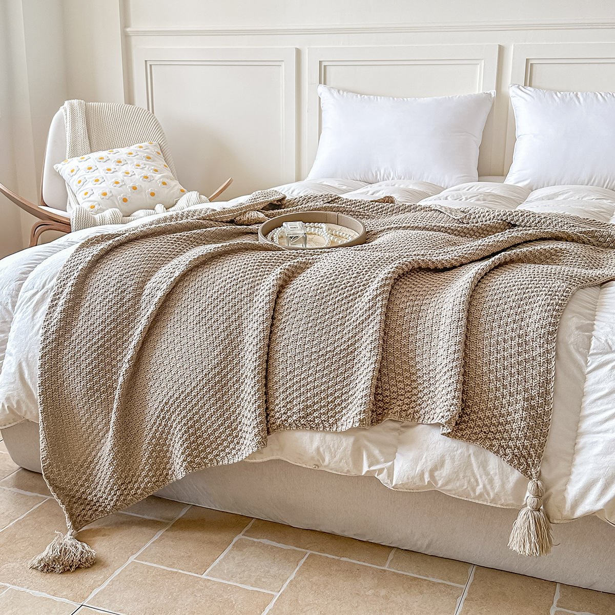 Одеяло HW с ананасом # винно-красный; Одеяло HW с ананасом # хаки