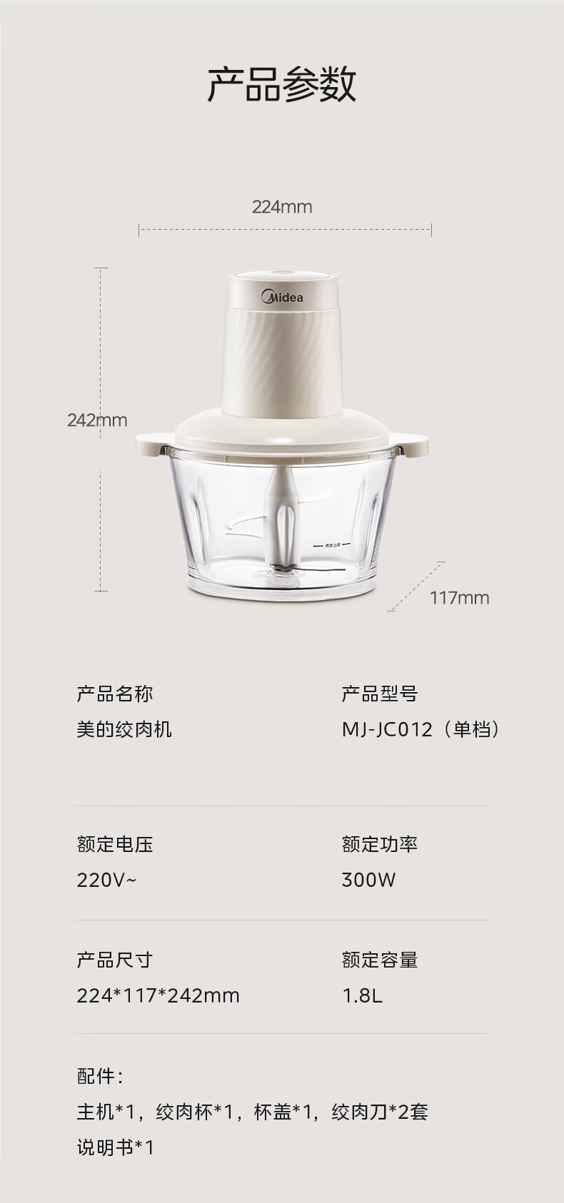 Мясорубка Midea MJ-JC012B, бытовой блендер, многофункциональная мясорубка, овощерезка, машина для фарша