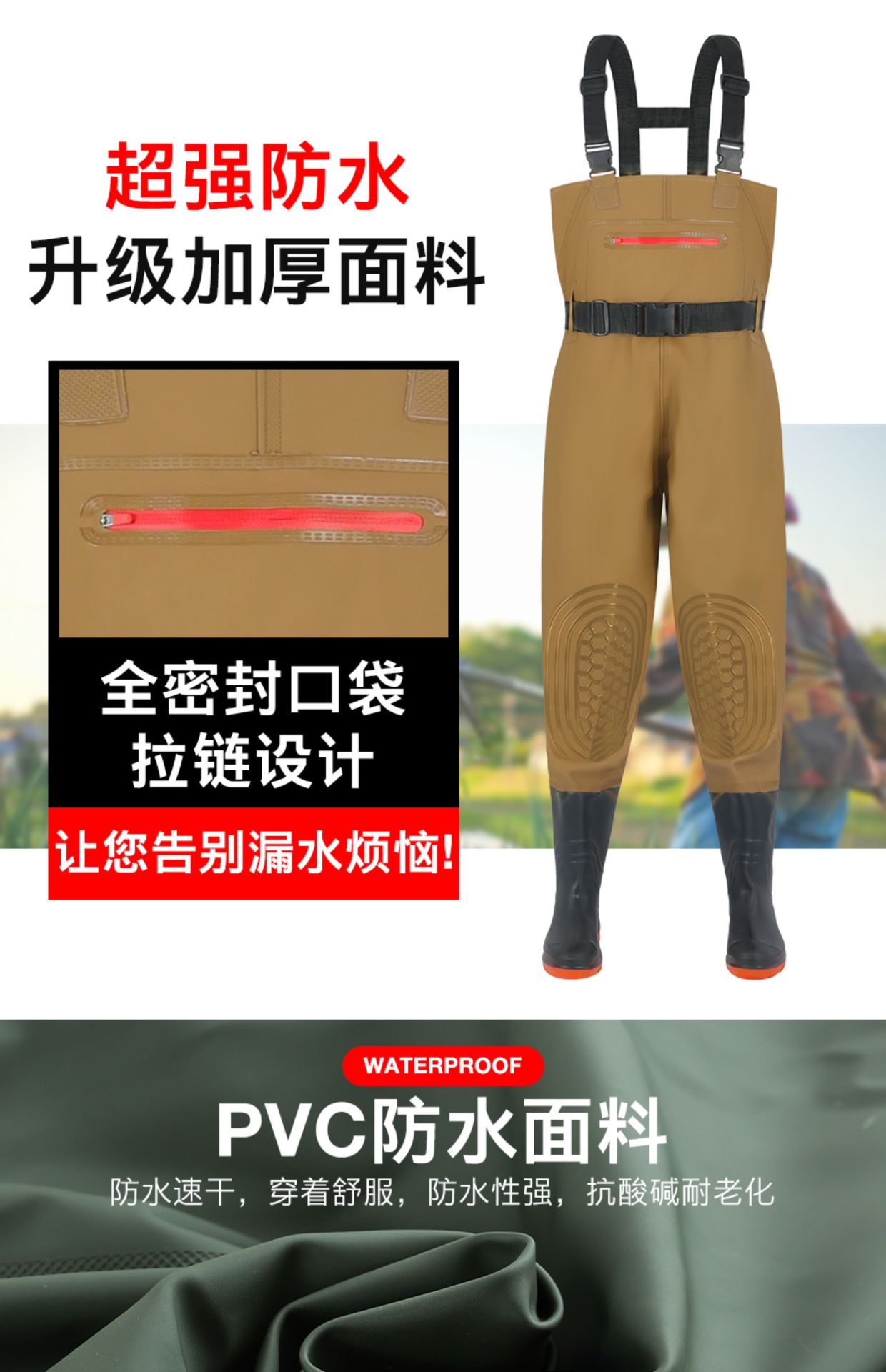 Водонепроницаемые брюки в экспортном стиле, водонепроницаемая одежда до половины тела, дождевые штаны, резиновые сапоги, кожаные сапоги для рыбалки, мужские цельные водные туфли, утолщенные