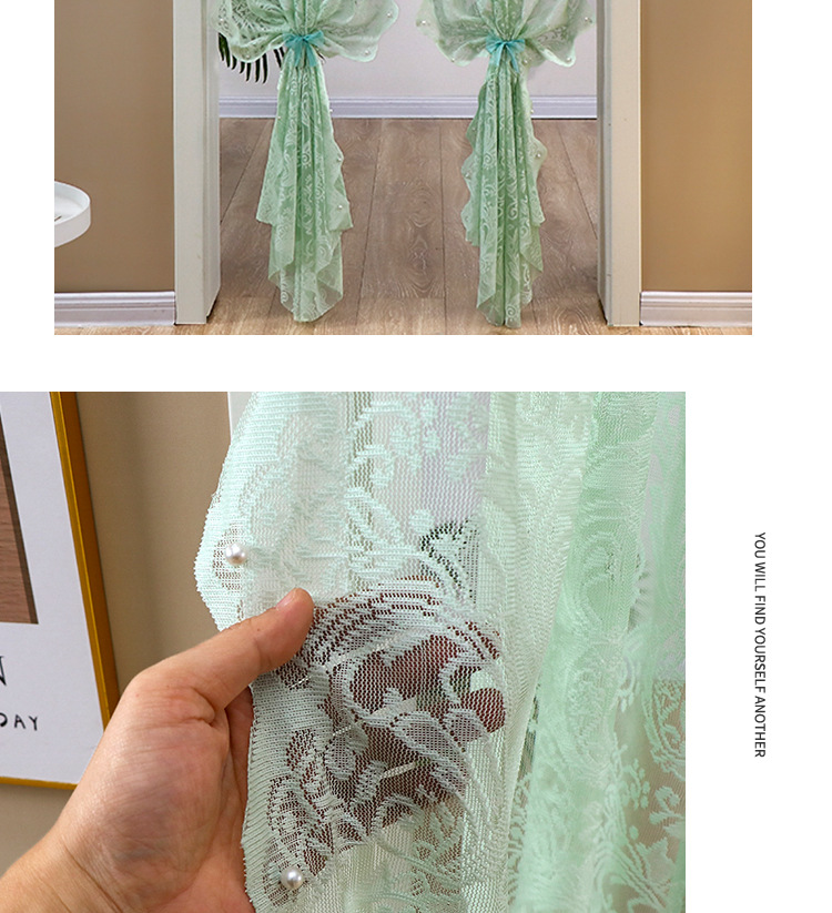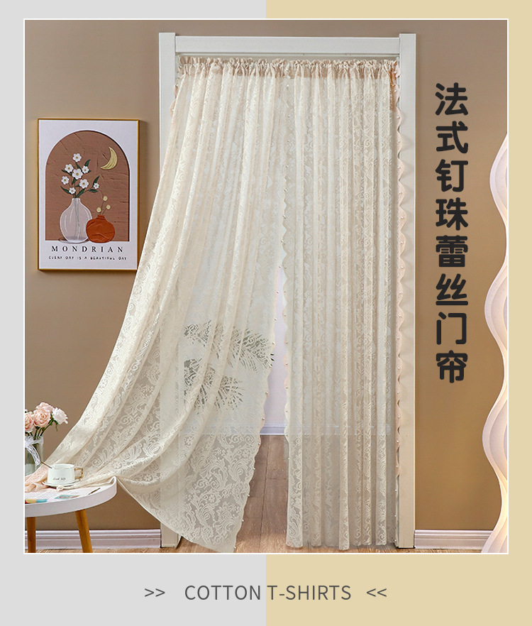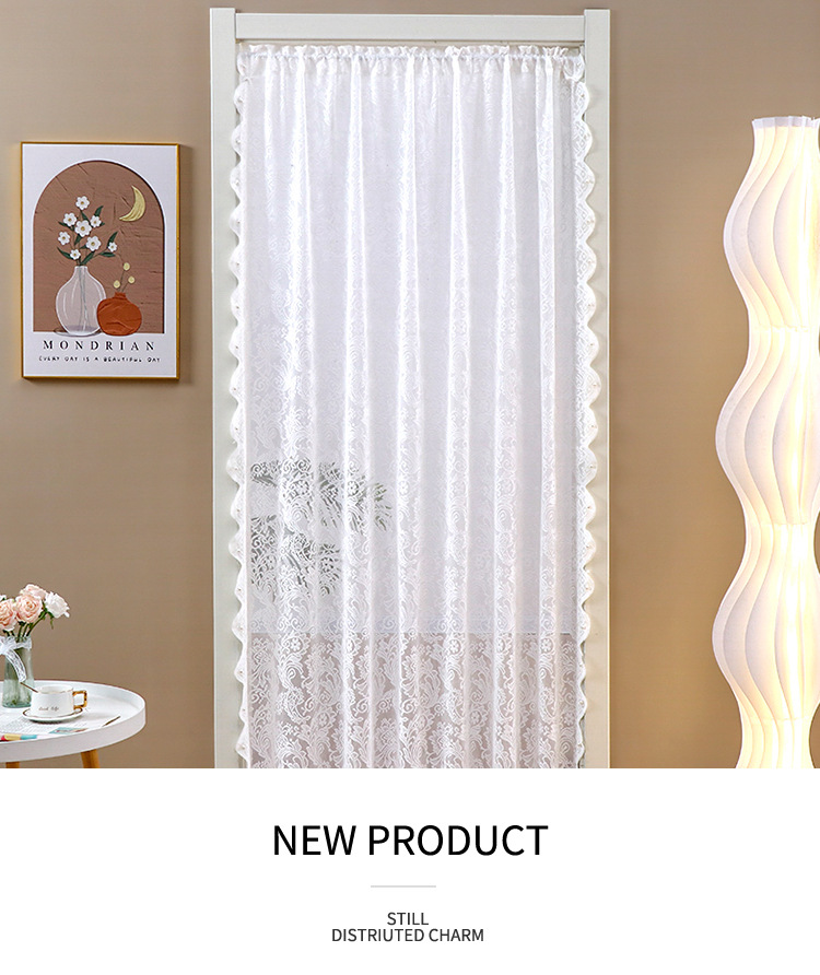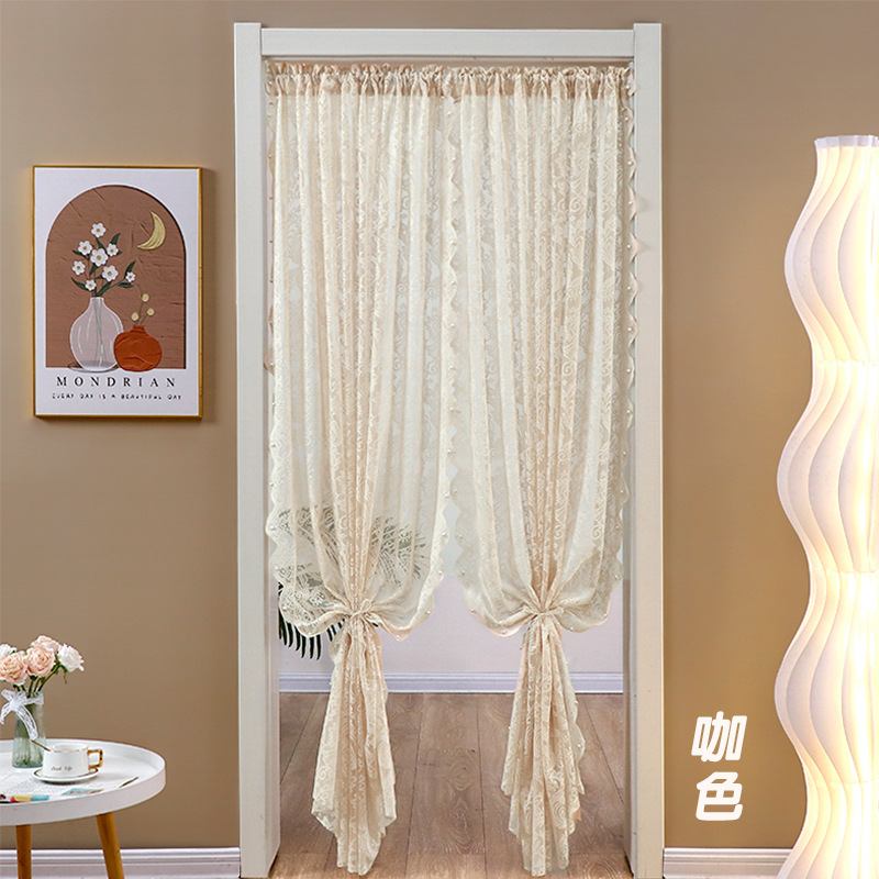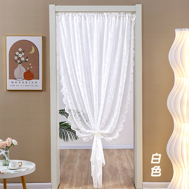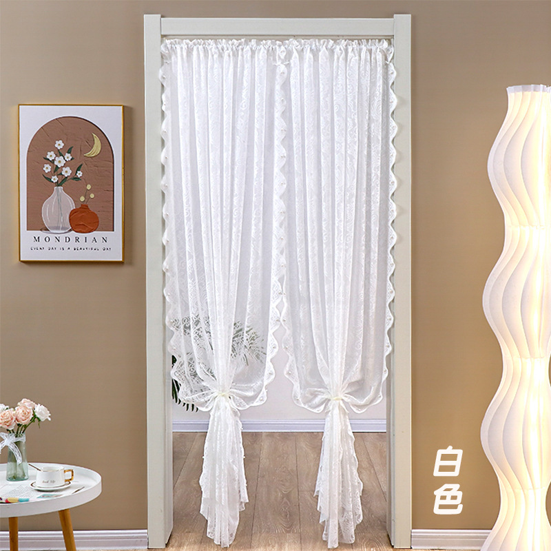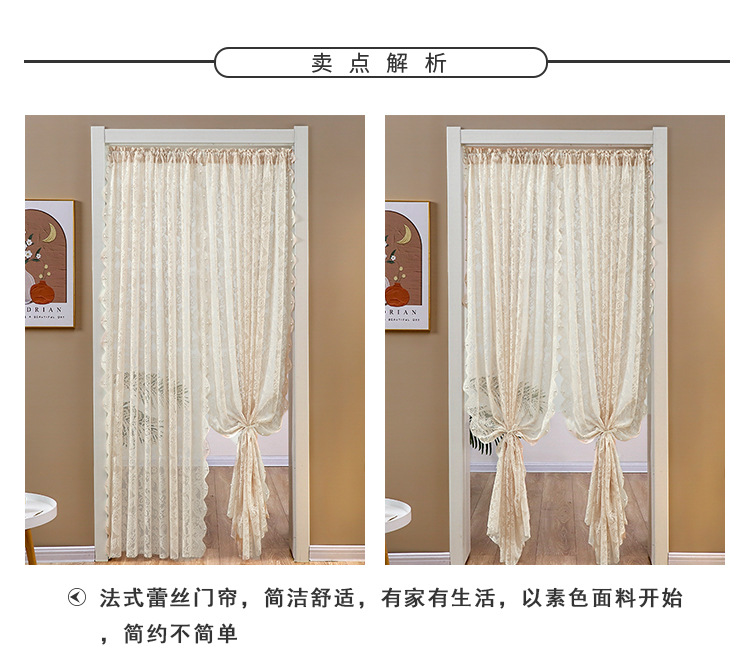 Модная французская кружевная прозрачная дверная занавеска, полузанавеска без установки, телескопическая штанга, москитная перегородка с кружевным дизайном